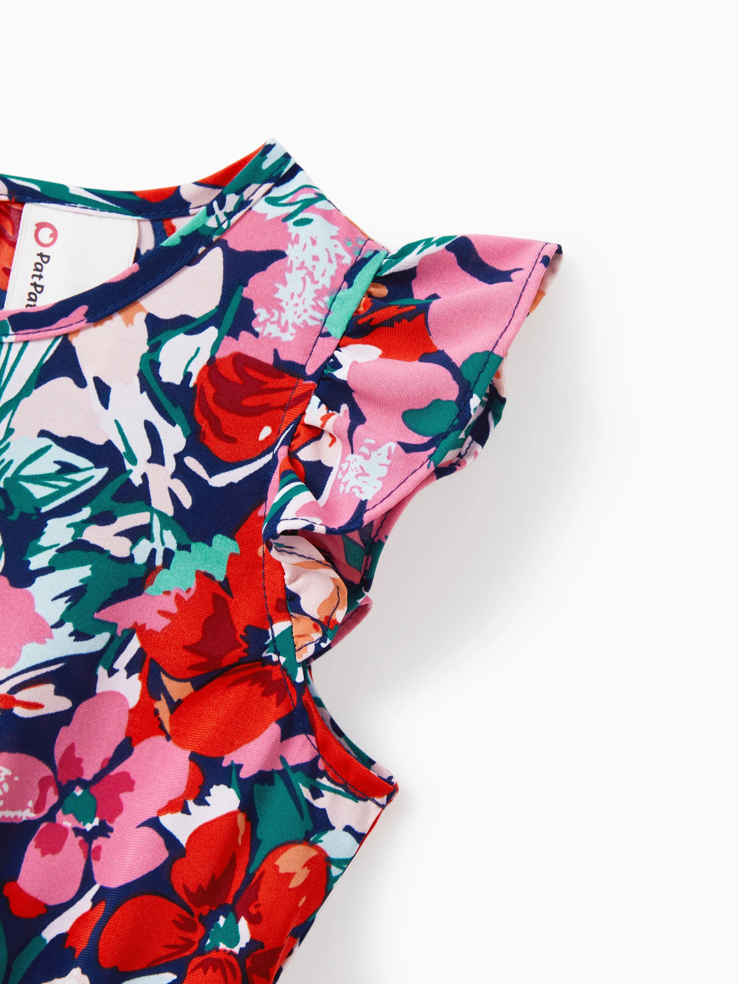 Adorables tenues familiales assorties à imprimé floral pour le printemps et l'été