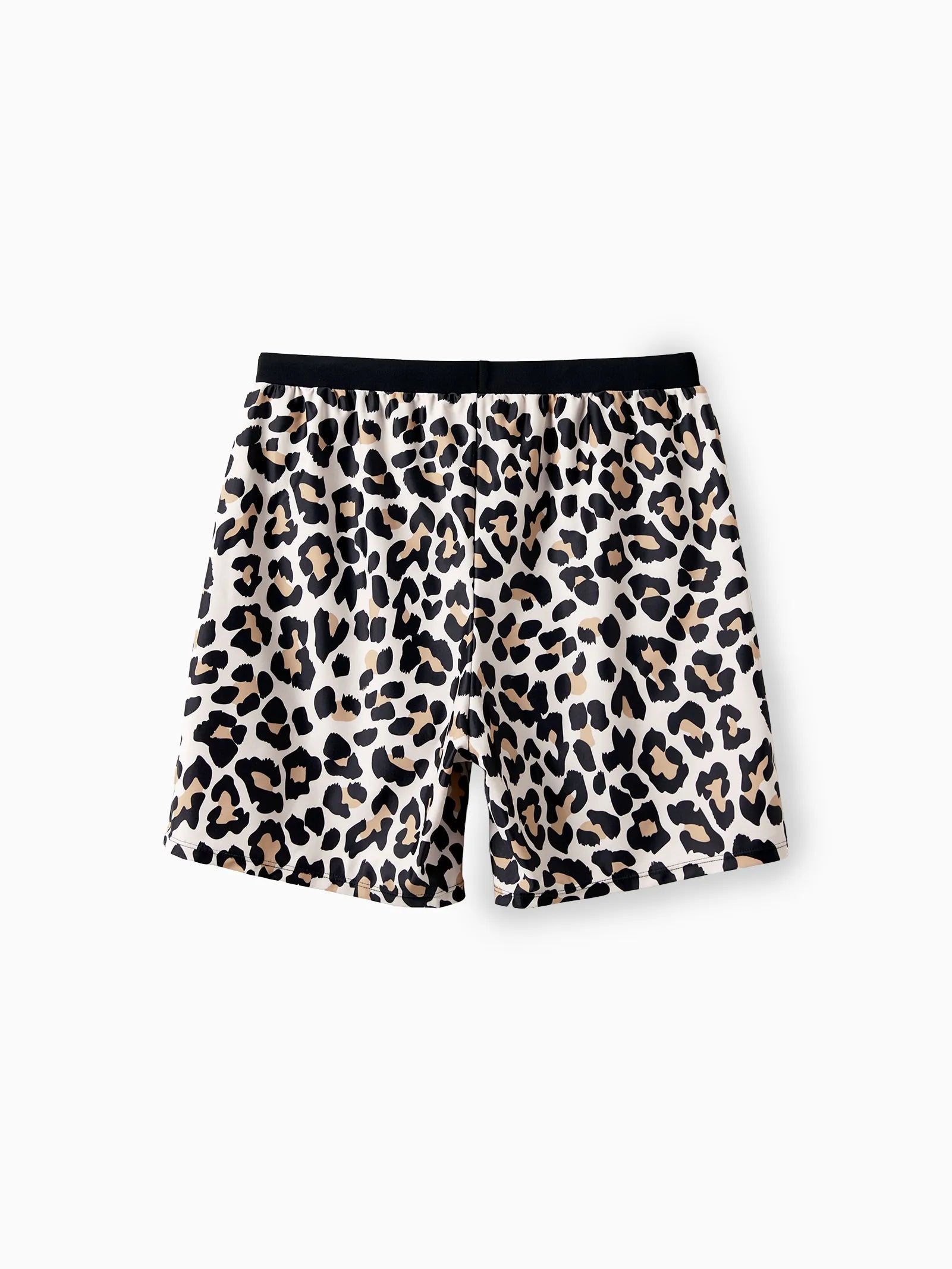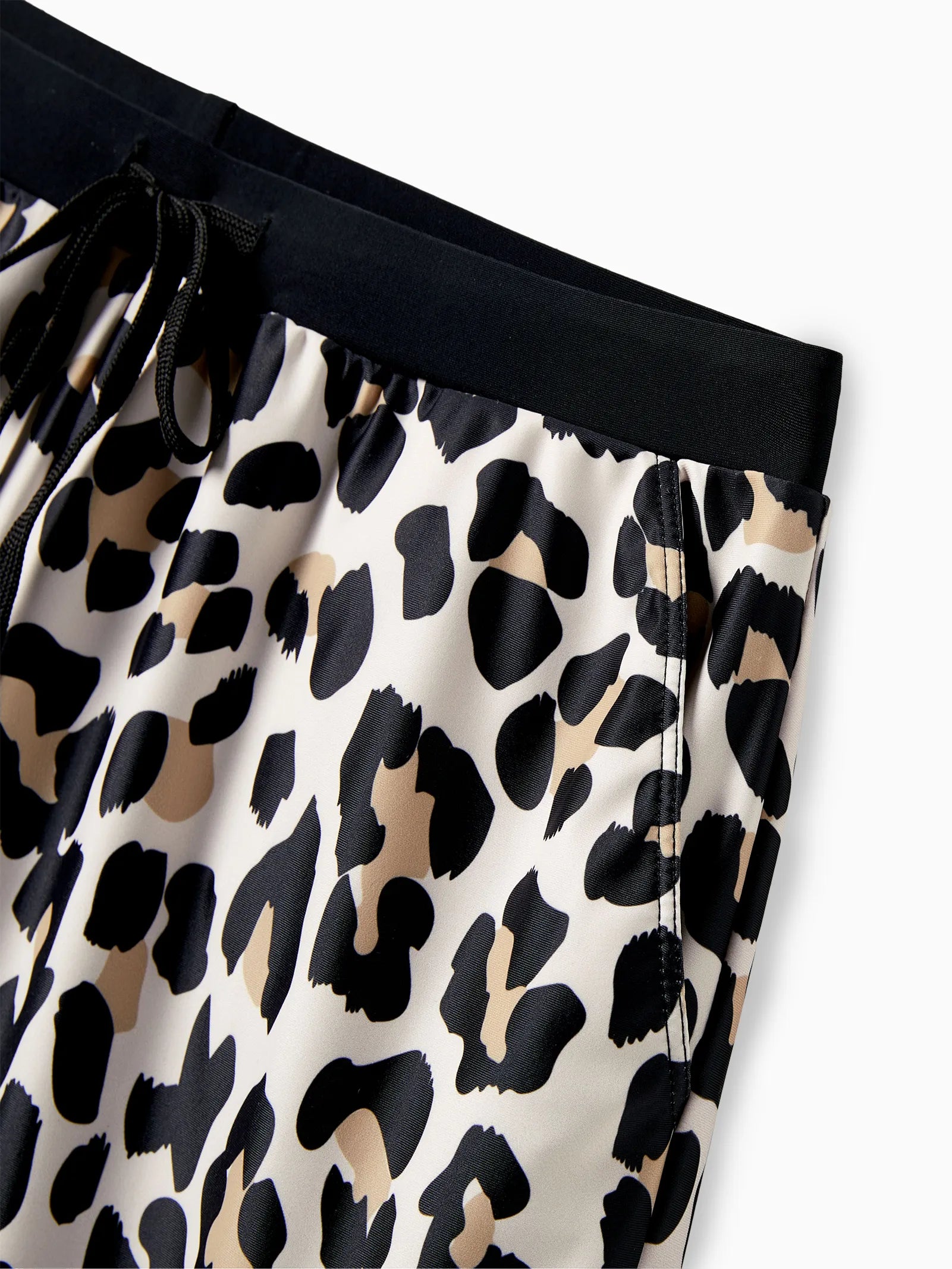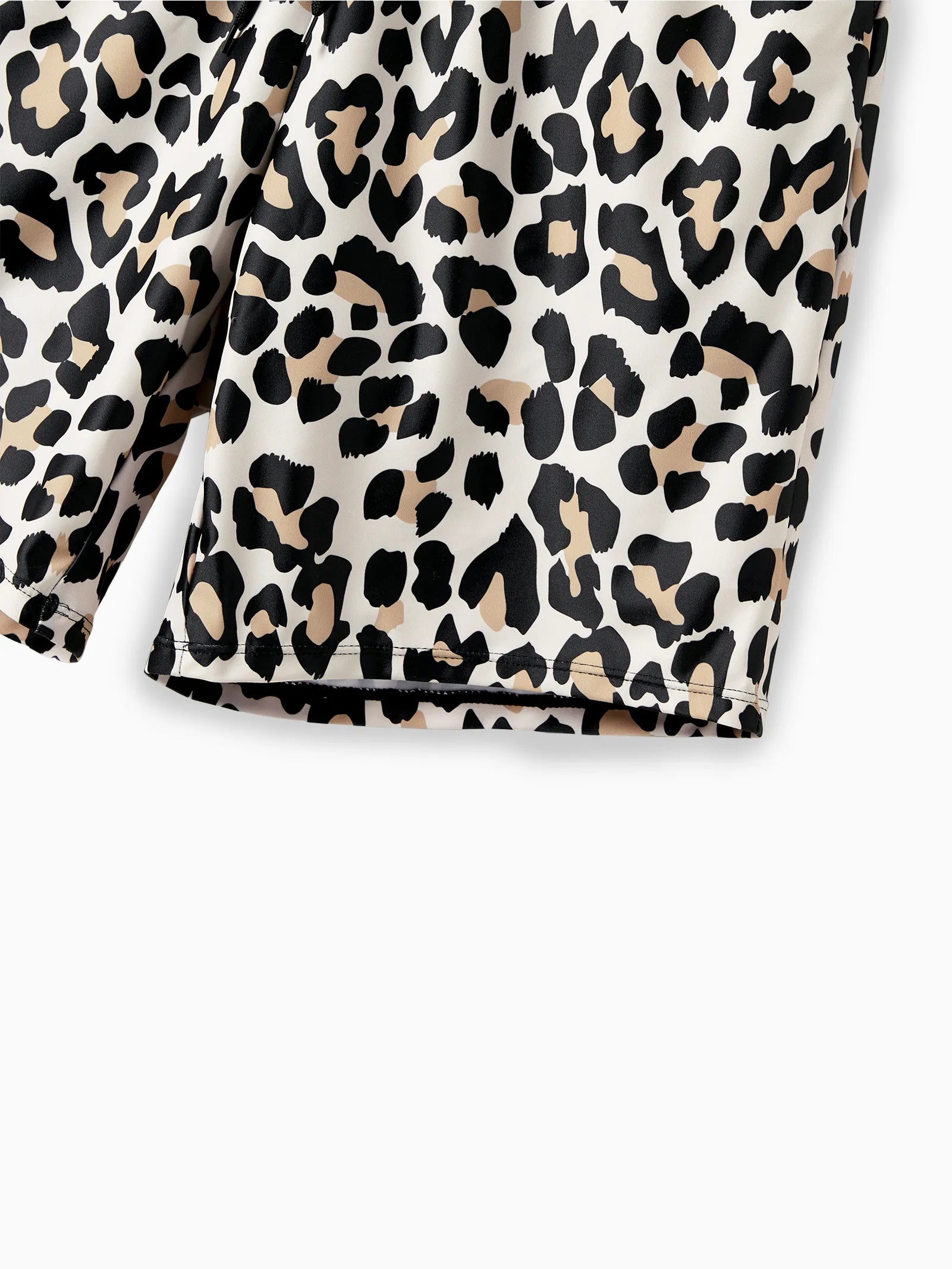 Profitez de l'ambiance de la plage avec cet ensemble de maillot de bain assorti à imprimé léopard pour toute la famille.