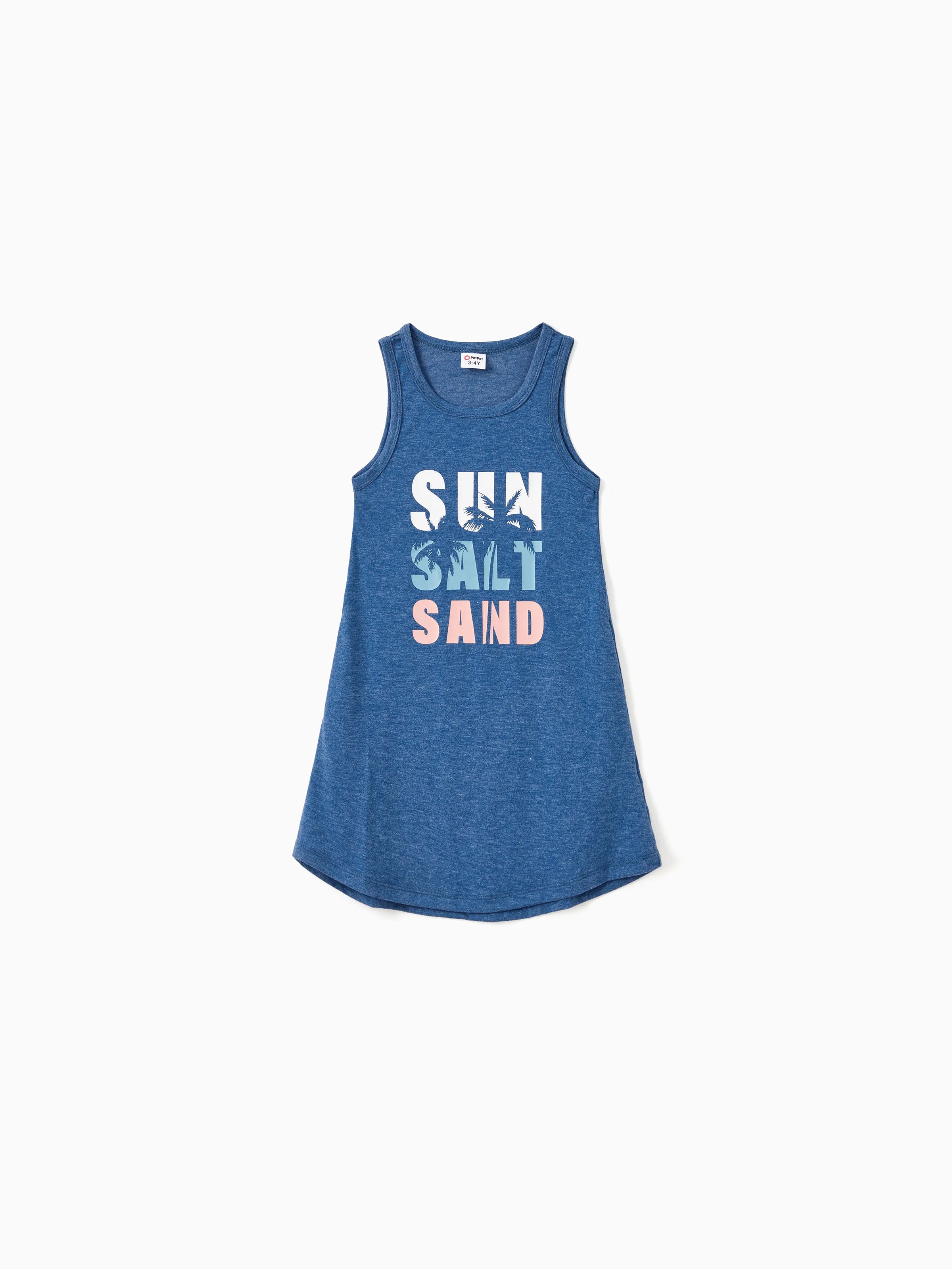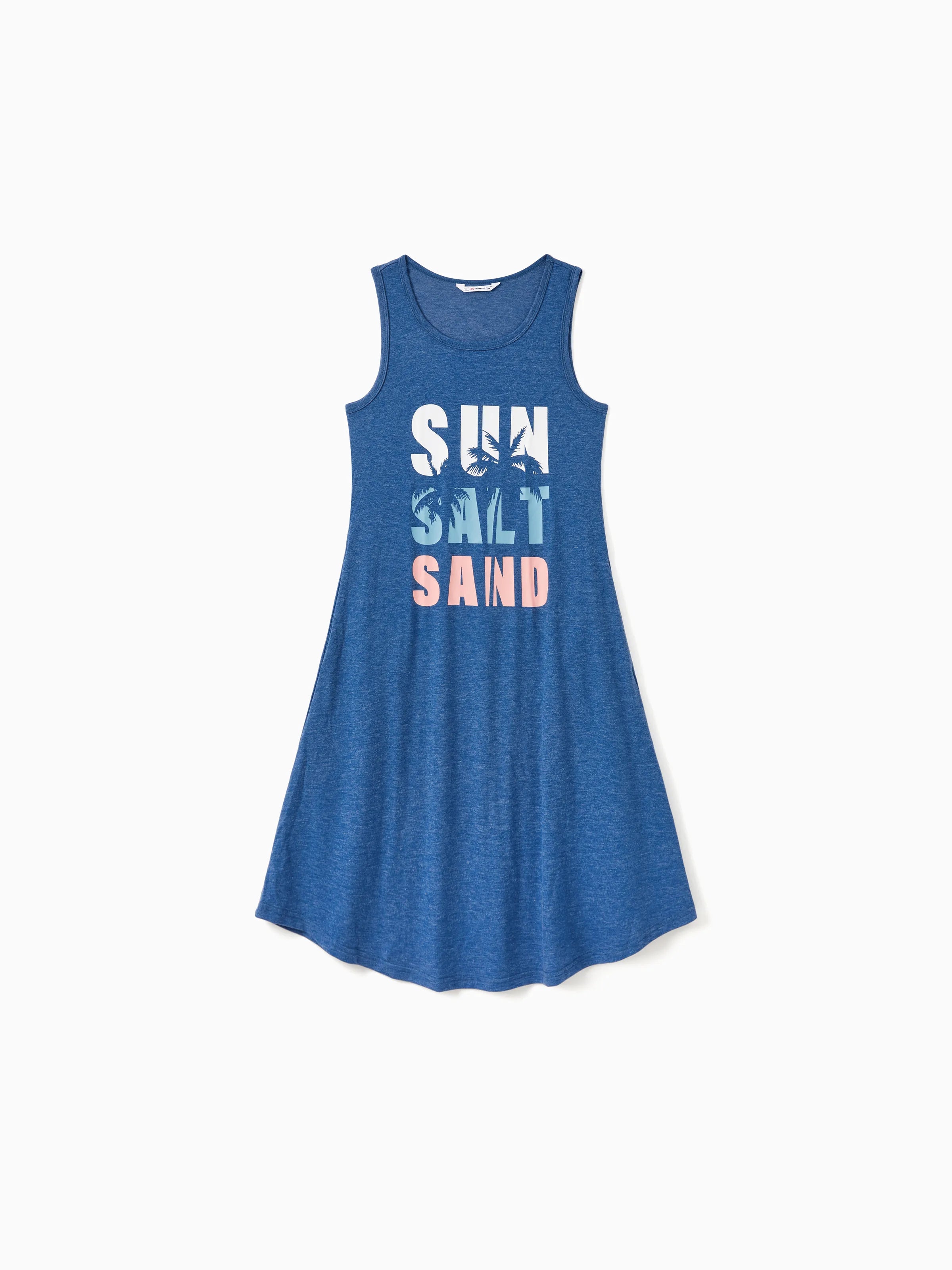 Ensembles familiaux assortis : débardeur bleu ou robe fluide trapèze avec poches