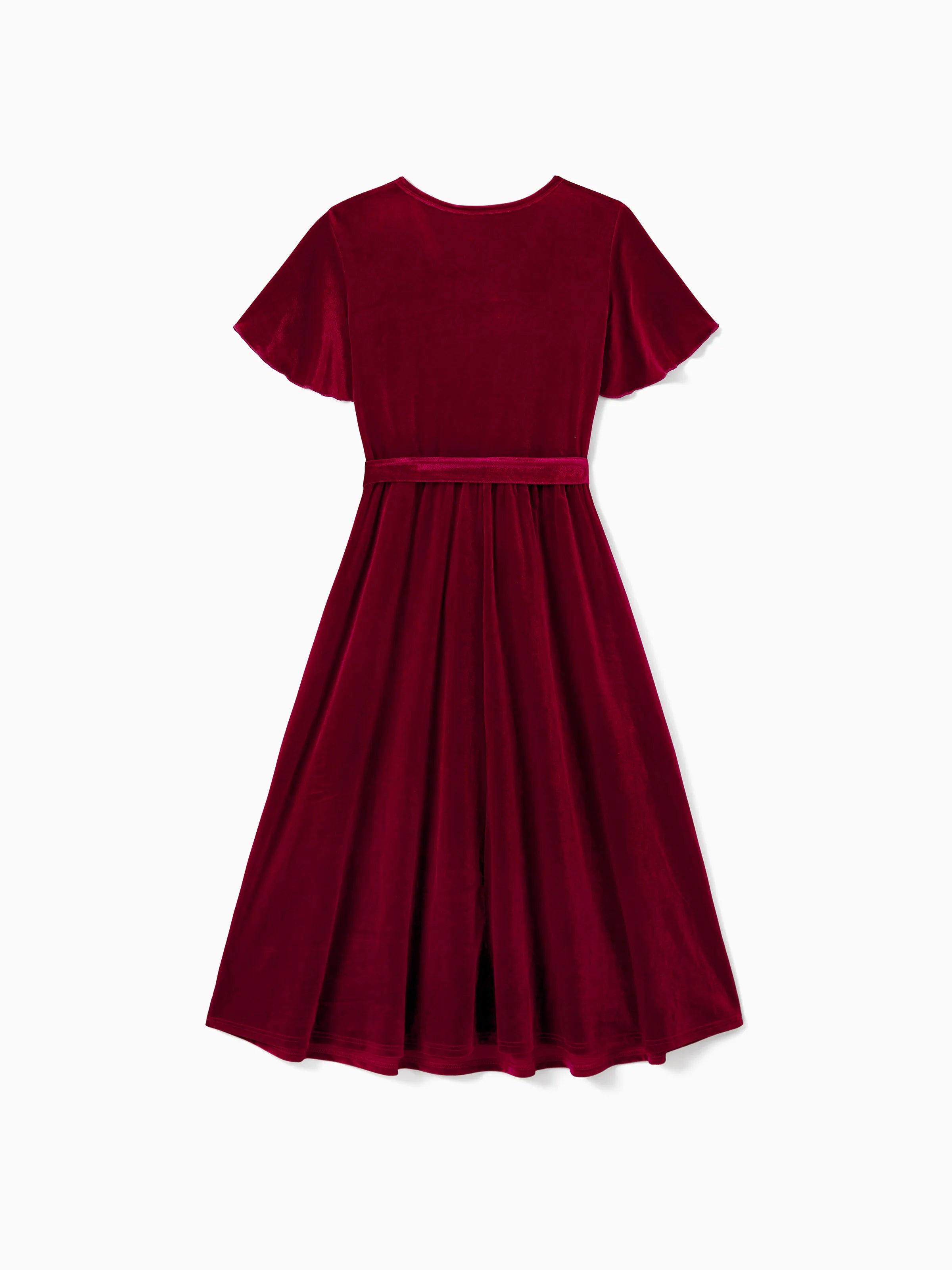 • Robe de maman : col en V, croisé devant sur la poitrine, manches courtes ;