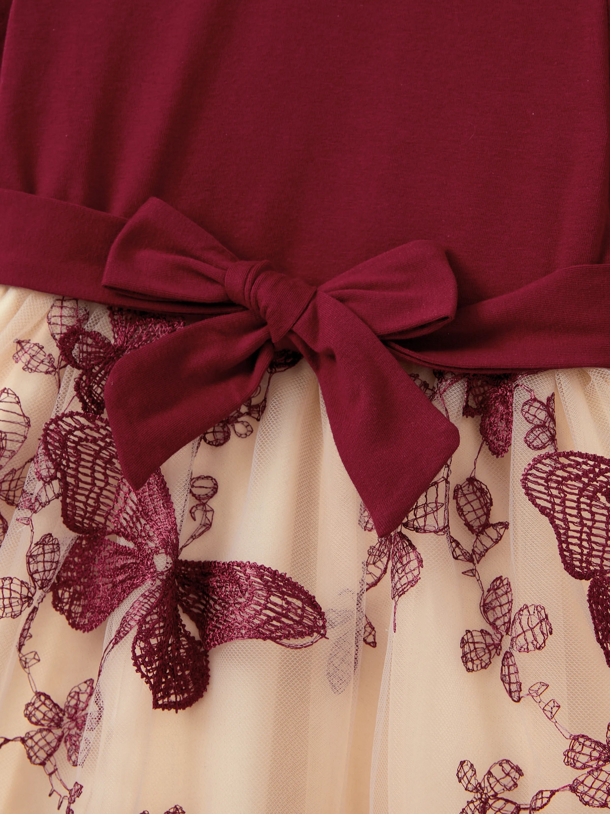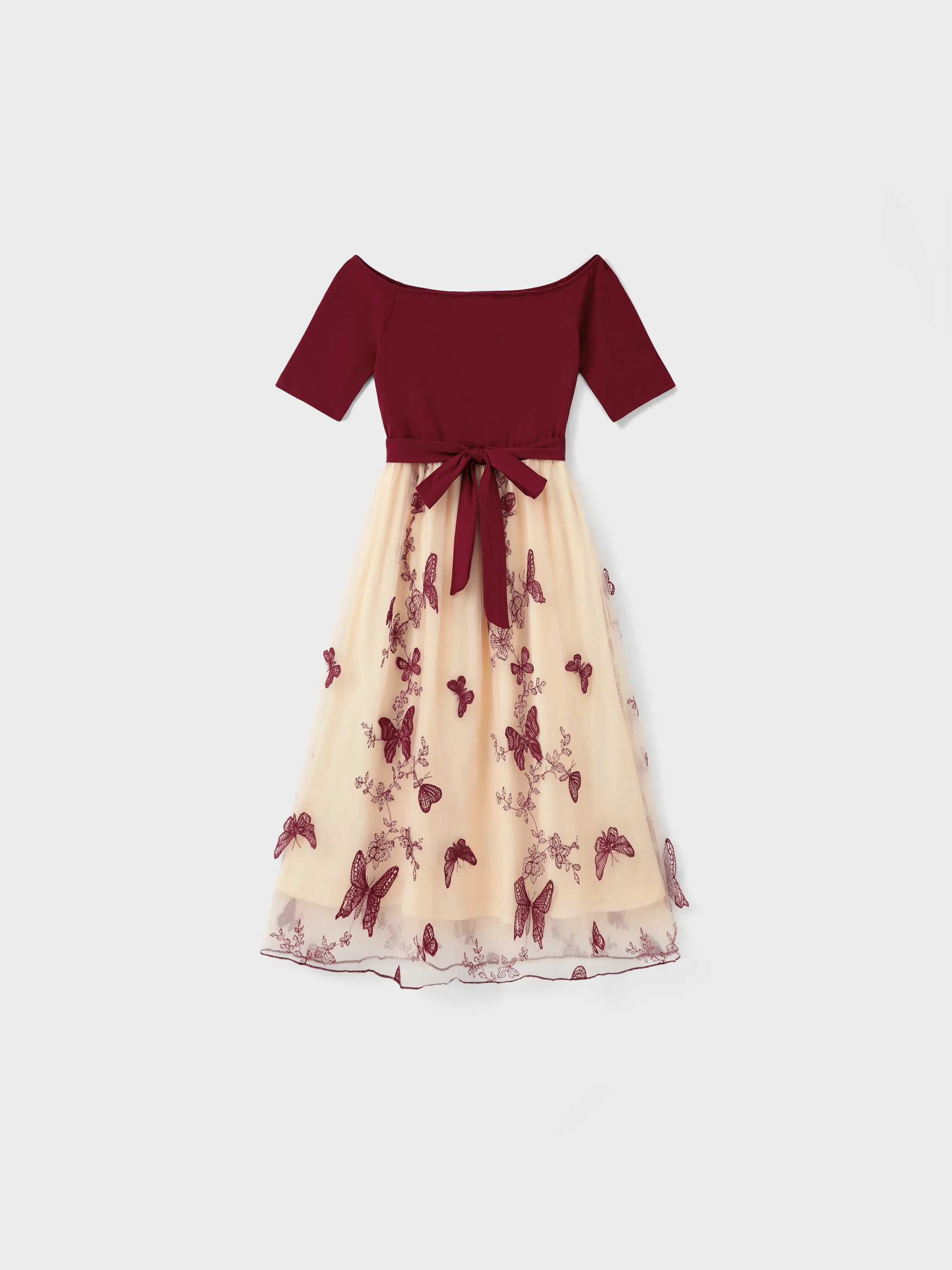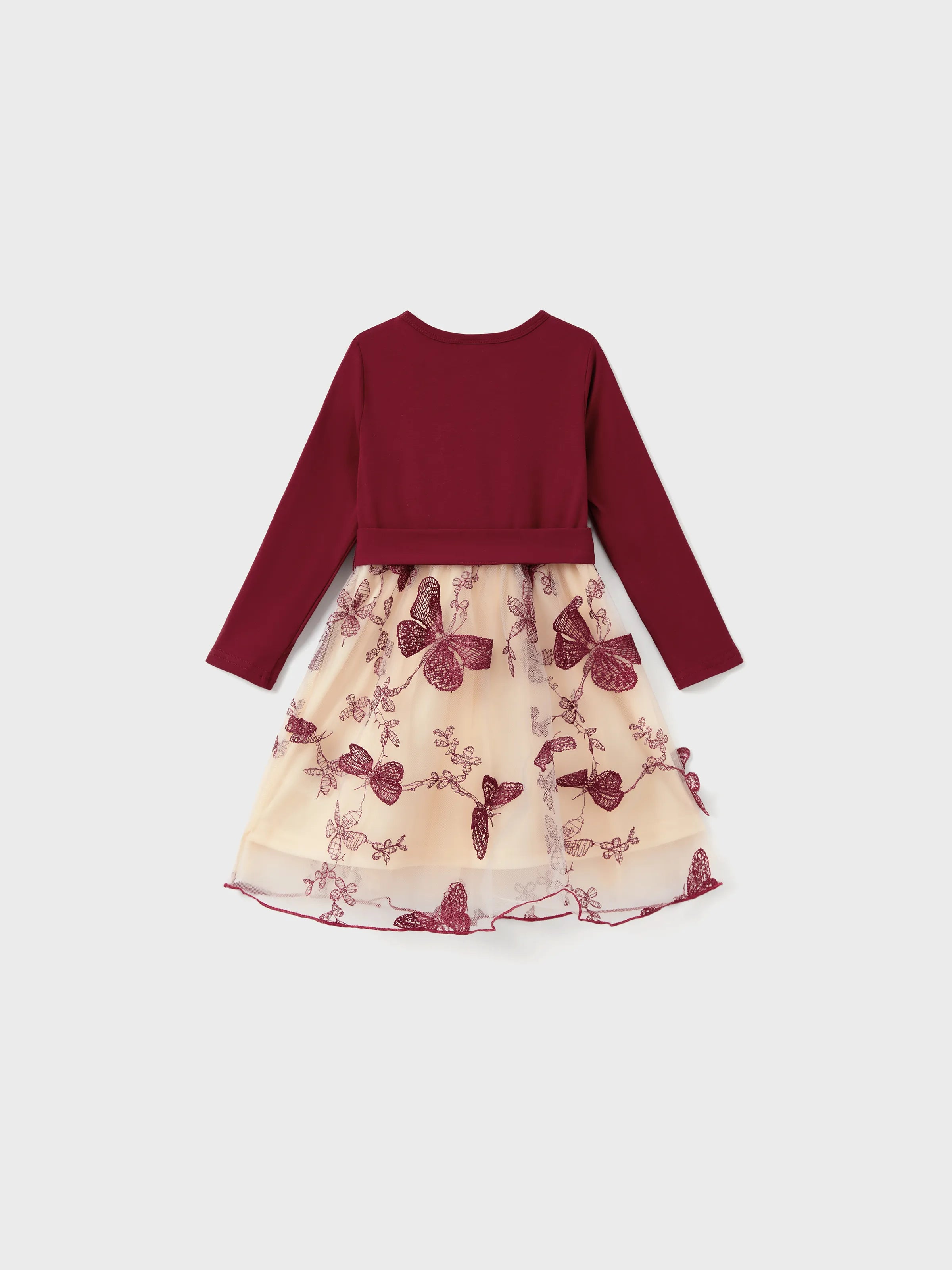 Adoptez un look familial avec cet ensemble rouge assorti composé d'une robe brodée de papillons et d'un sweat-shirt à manches longues. Idéal au quotidien, en automne comme en hiver.