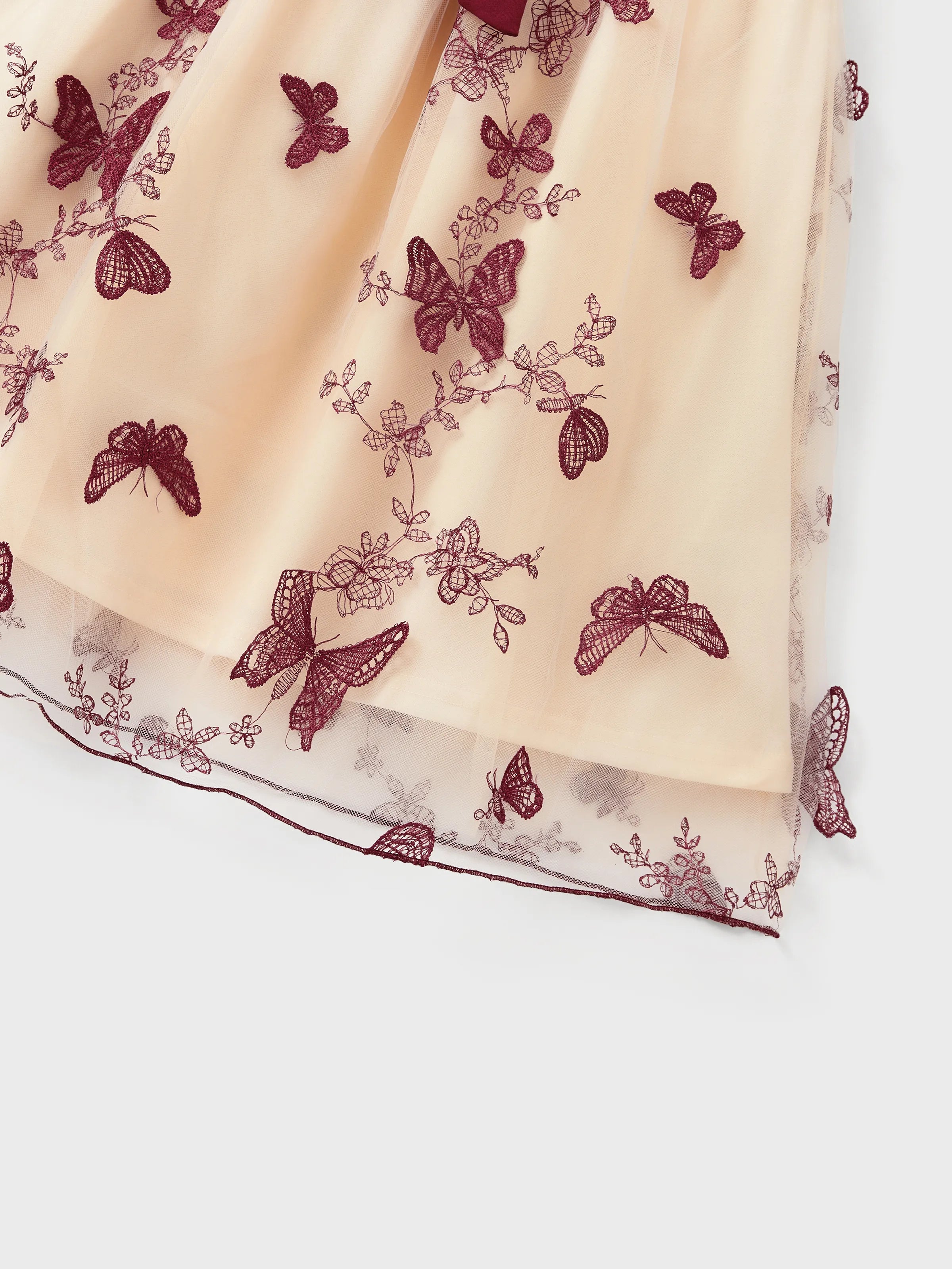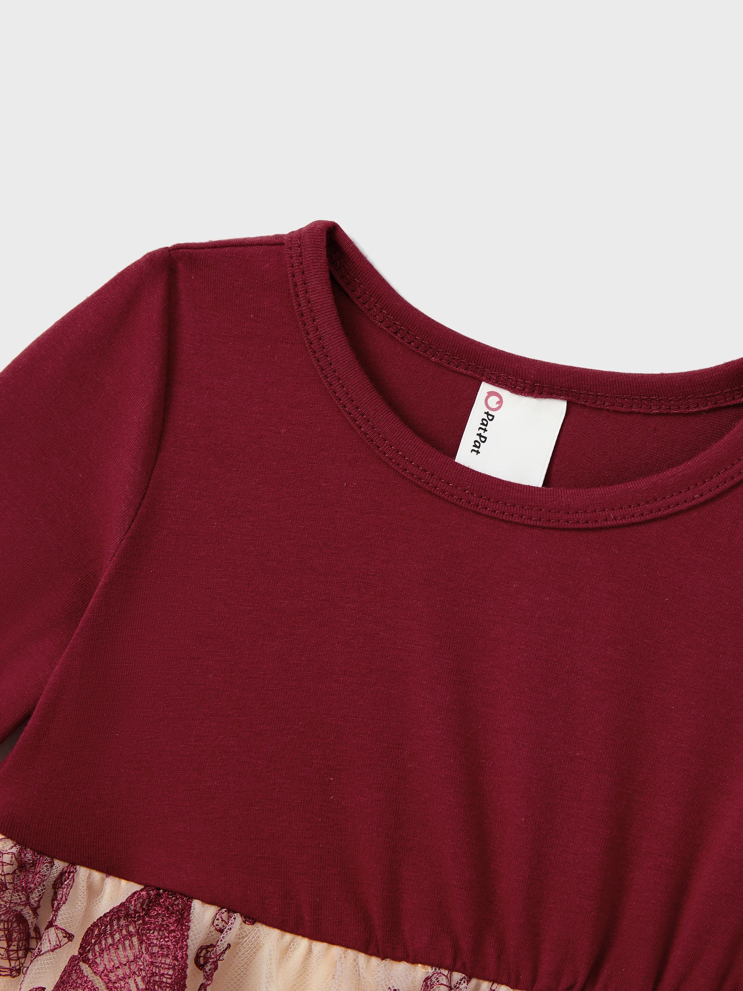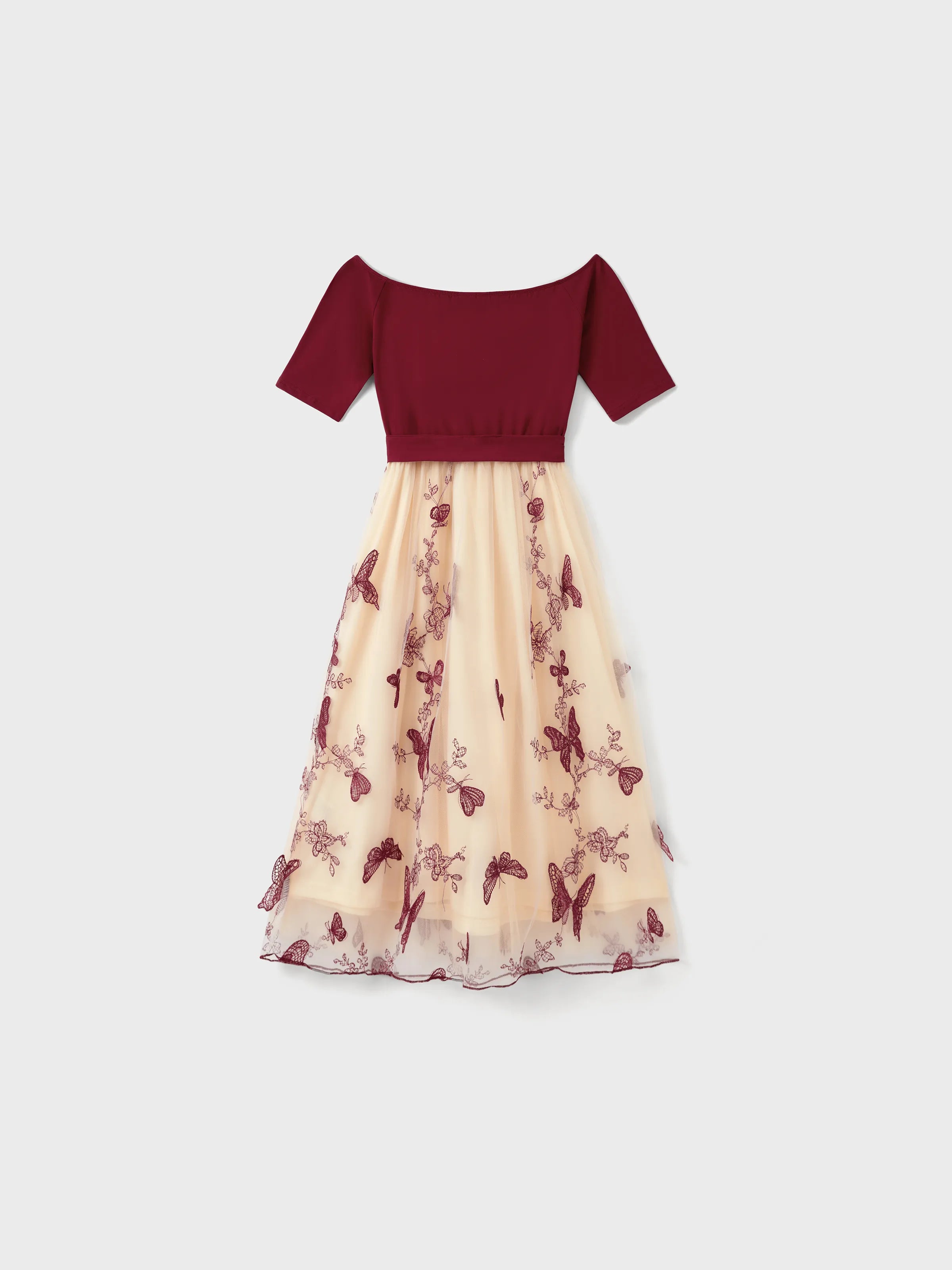 Adoptez un look familial avec cet ensemble rouge assorti composé d'une robe brodée de papillons et d'un sweat-shirt à manches longues. Idéal au quotidien, en automne comme en hiver.
