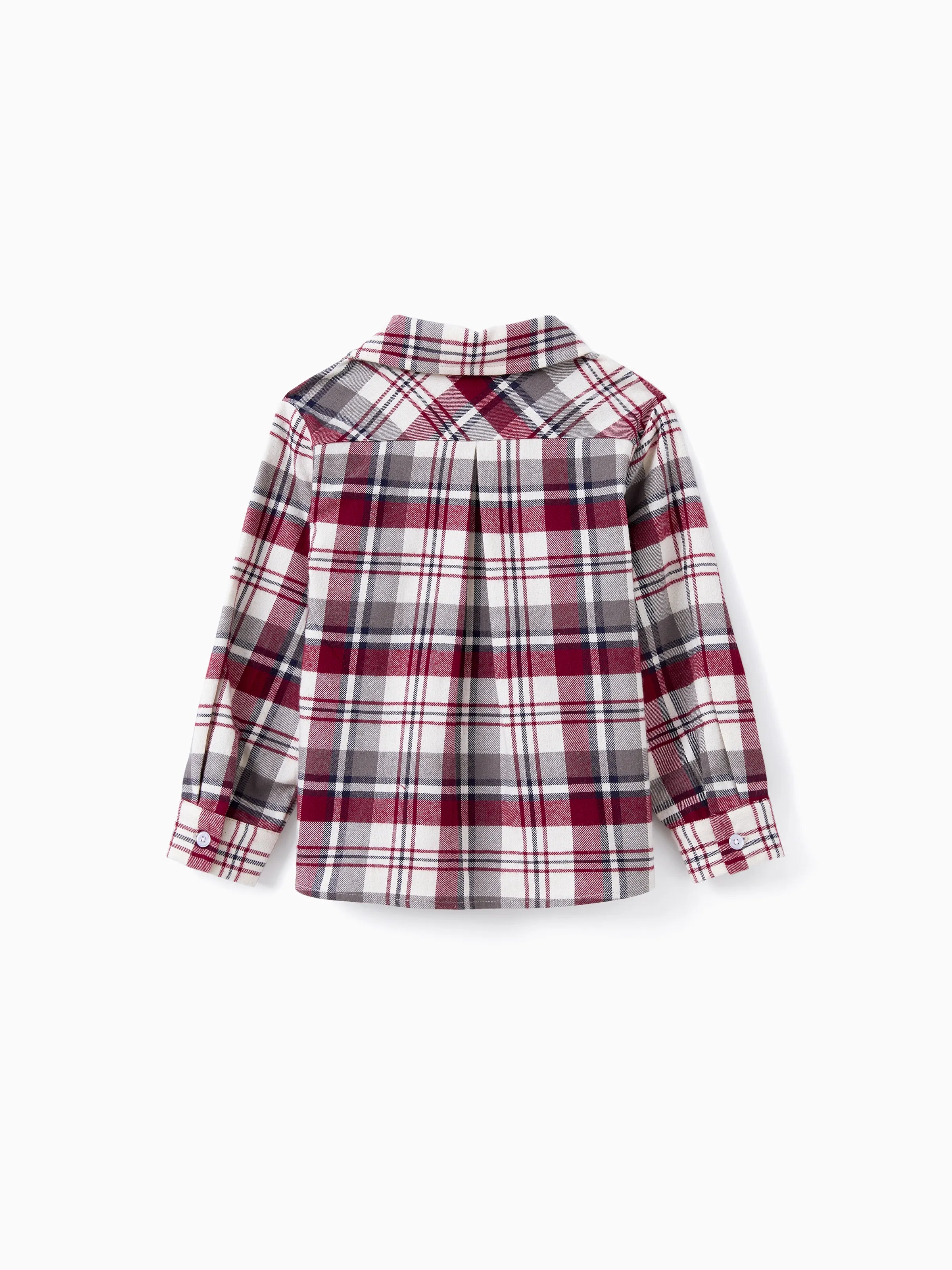 Assortissez vos tenues familiales avec un ensemble rouge vin. Chemises à carreaux à manches longues et robes en dentelle. Parfait pour le quotidien et les voyages.