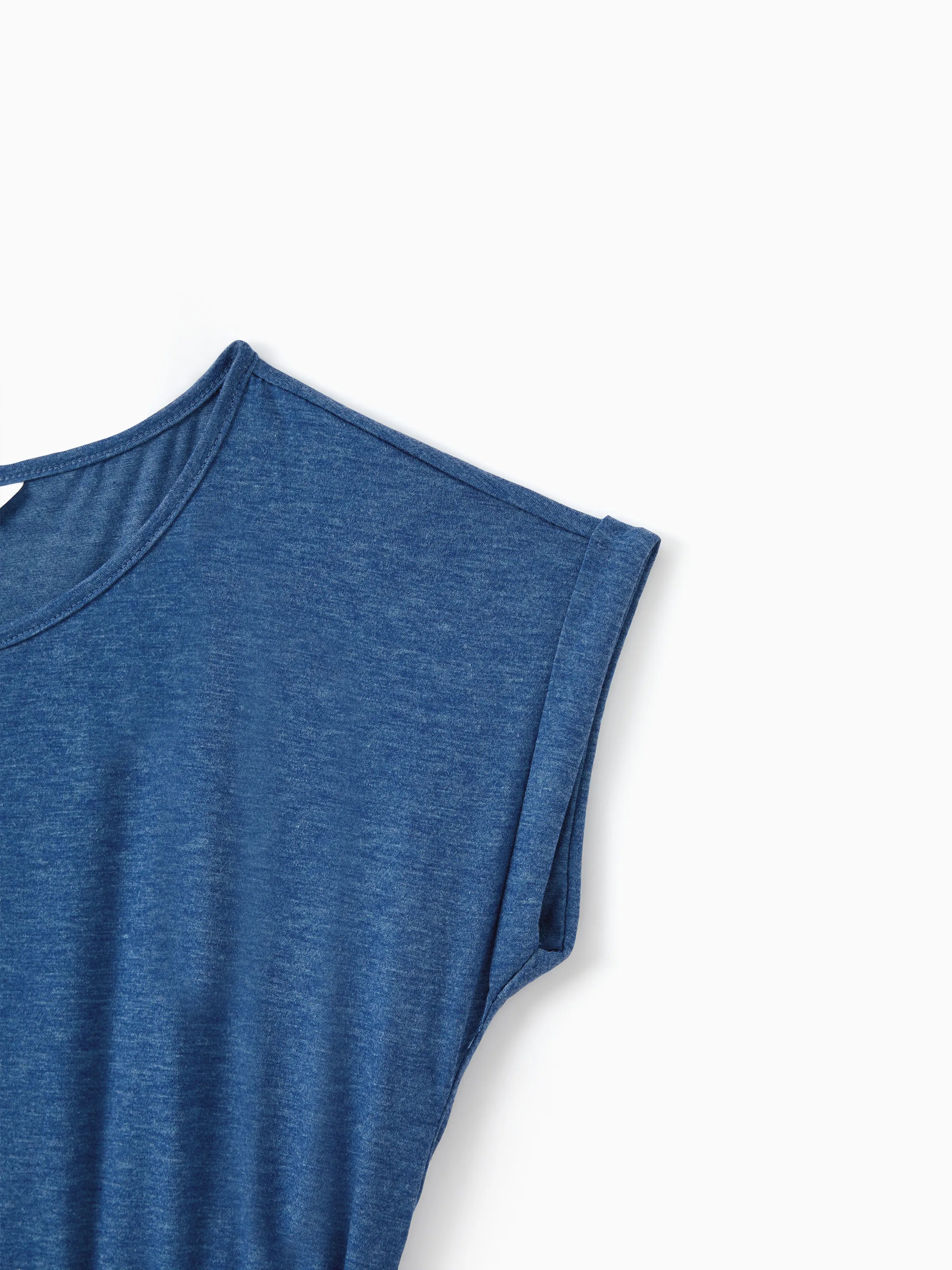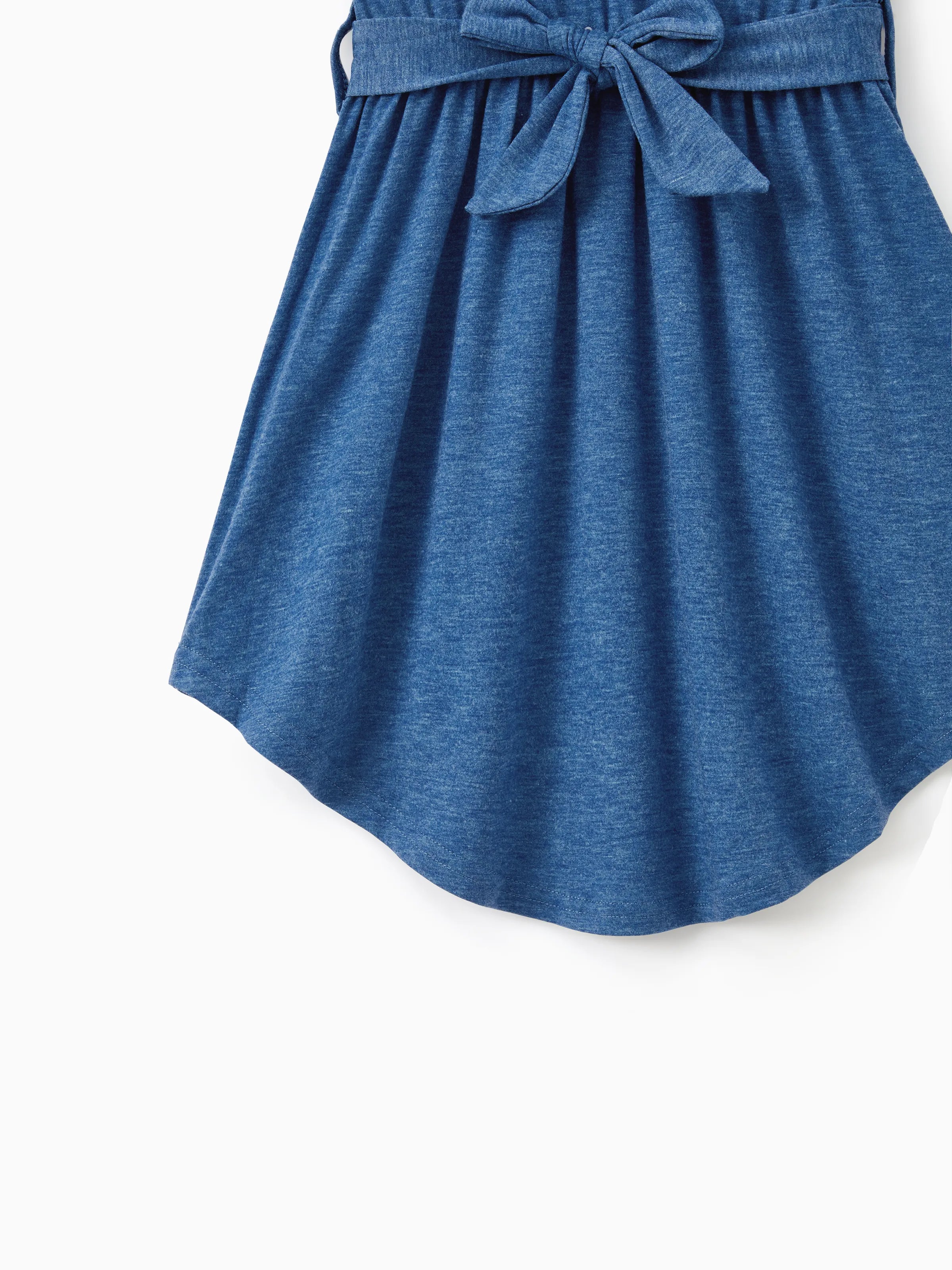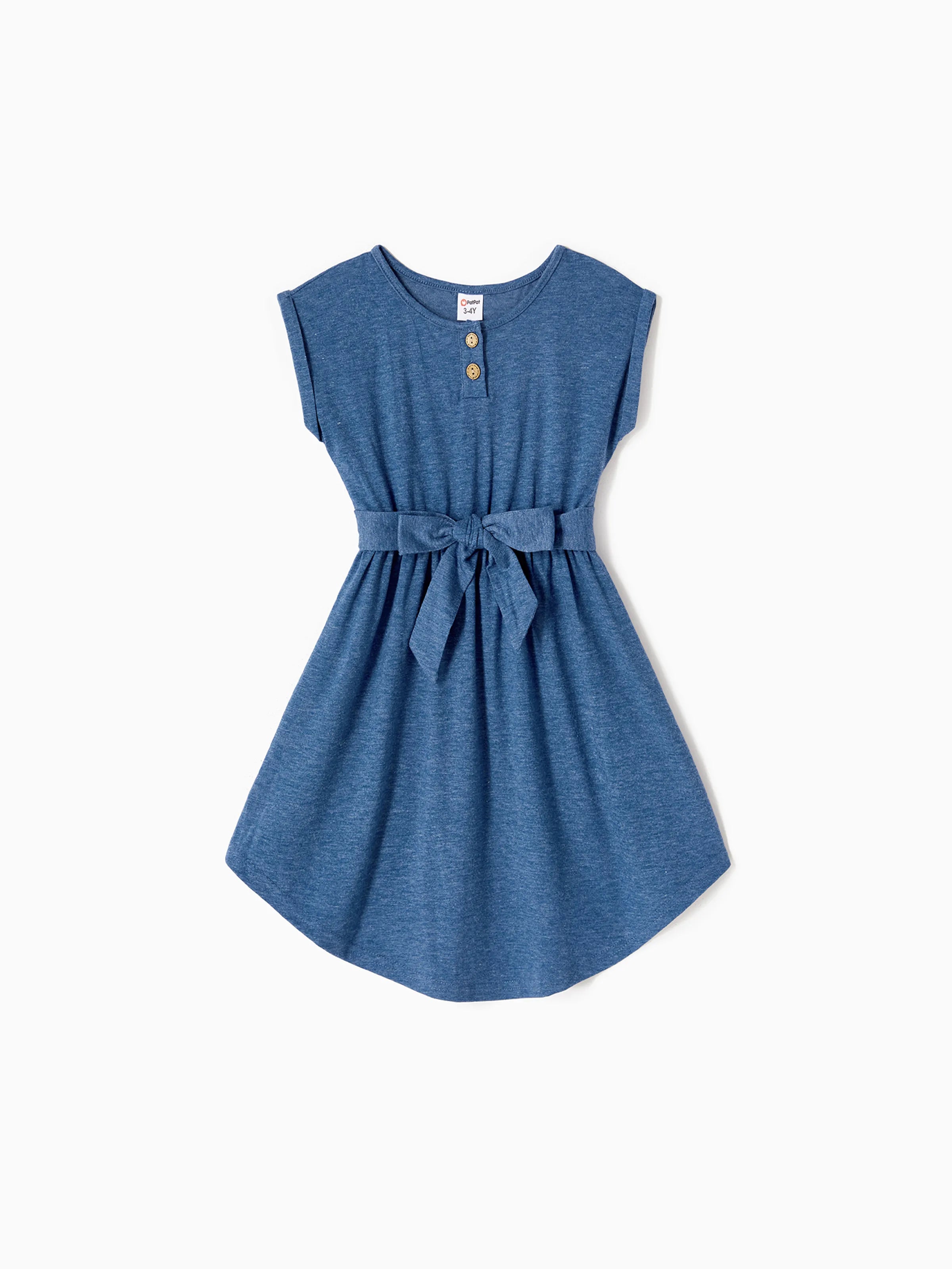 Tenue décontractée et douce assortie pour toute la famille : robes jusqu'au genou, boutons sur le devant, ceinture bleue