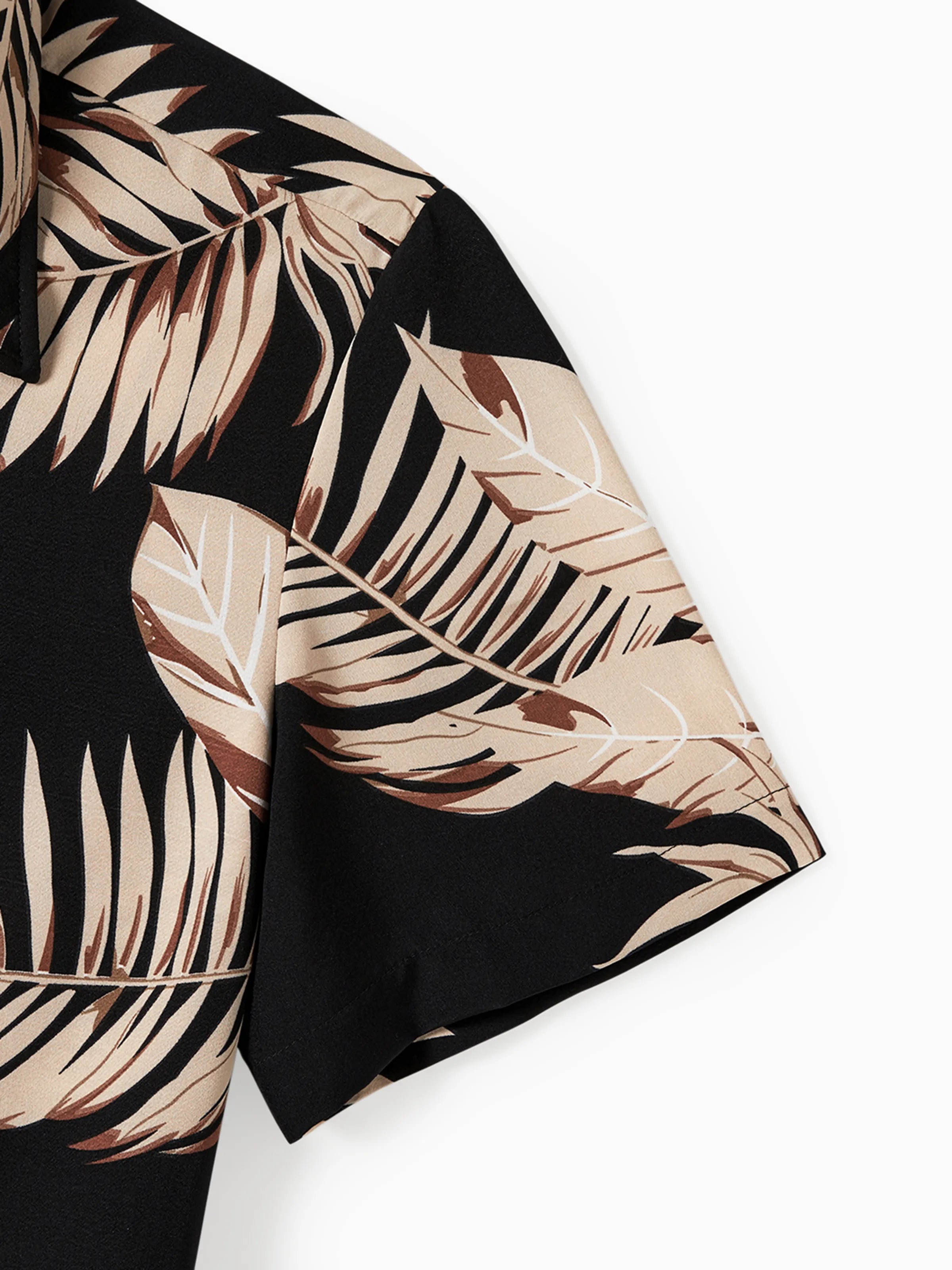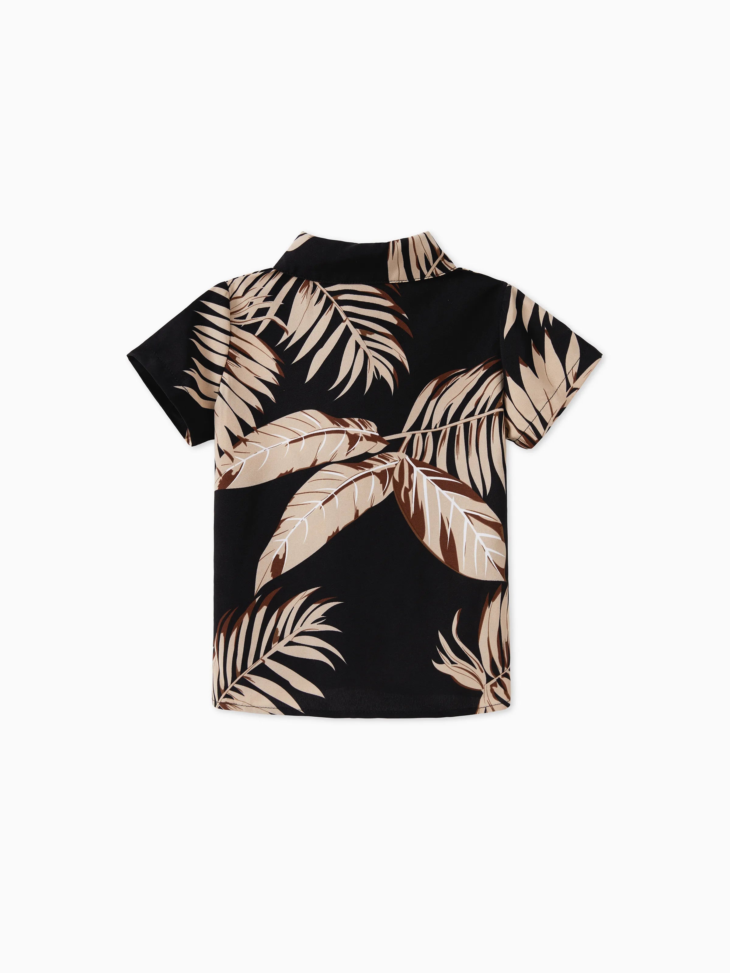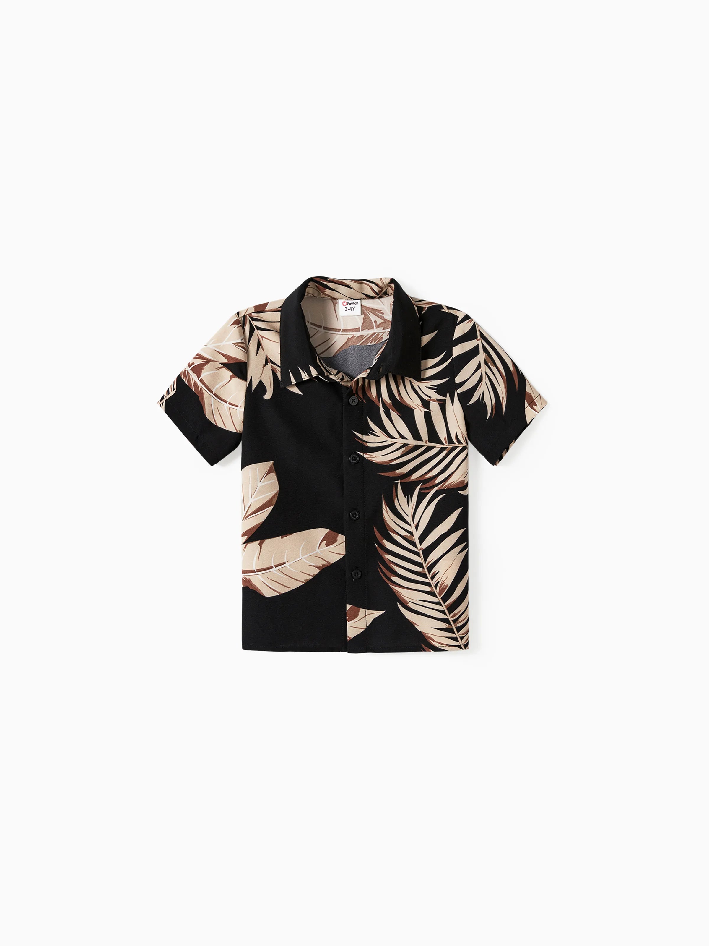 Parfait pour des vacances tropicales en famille, cet ensemble assorti présente un motif de feuilles minimaliste d'inspiration hawaïenne et comprend une robe simple à col licou pour les femmes et une chemise boutonnée à manches courtes pour les hommes et les garçons.