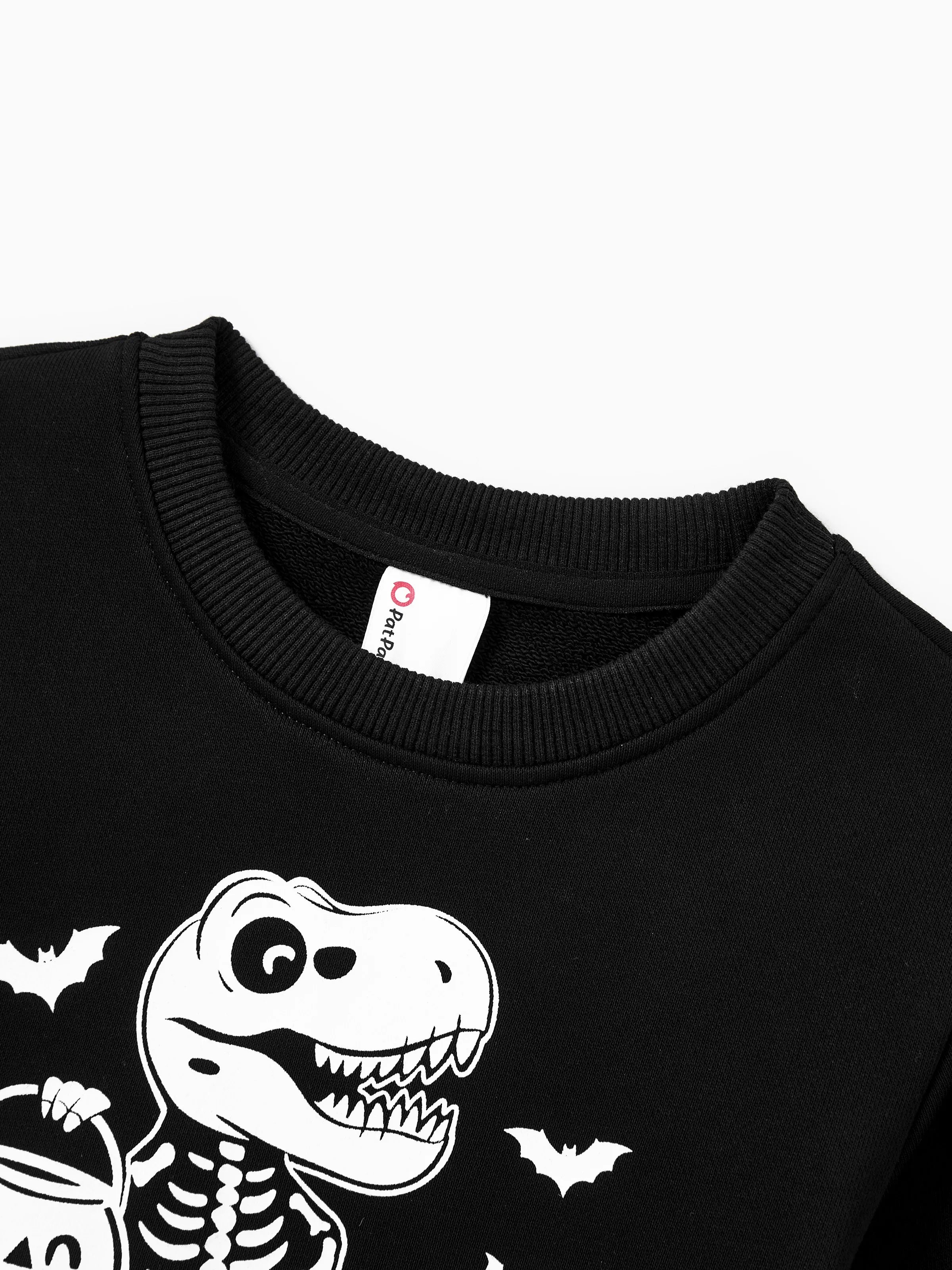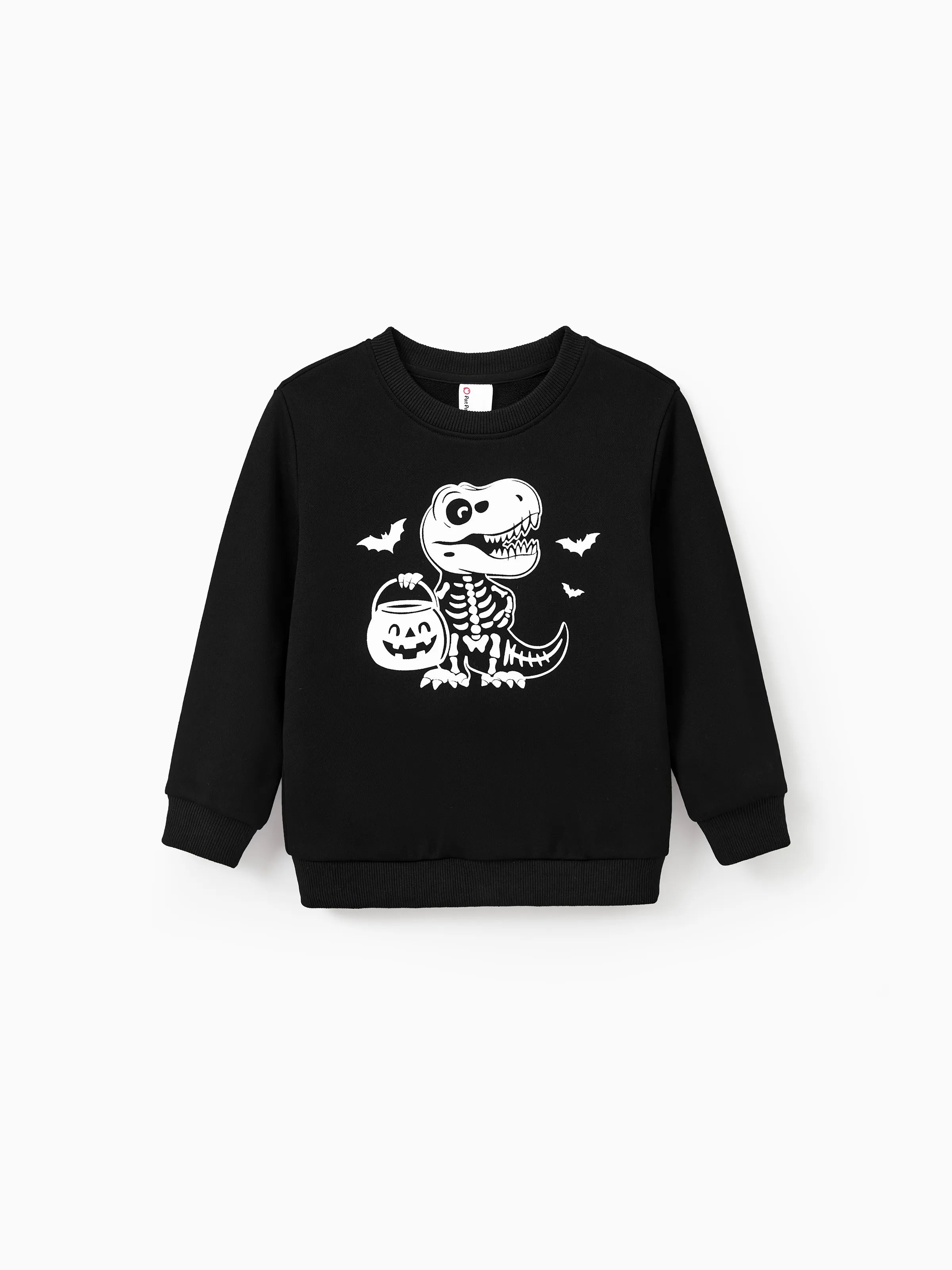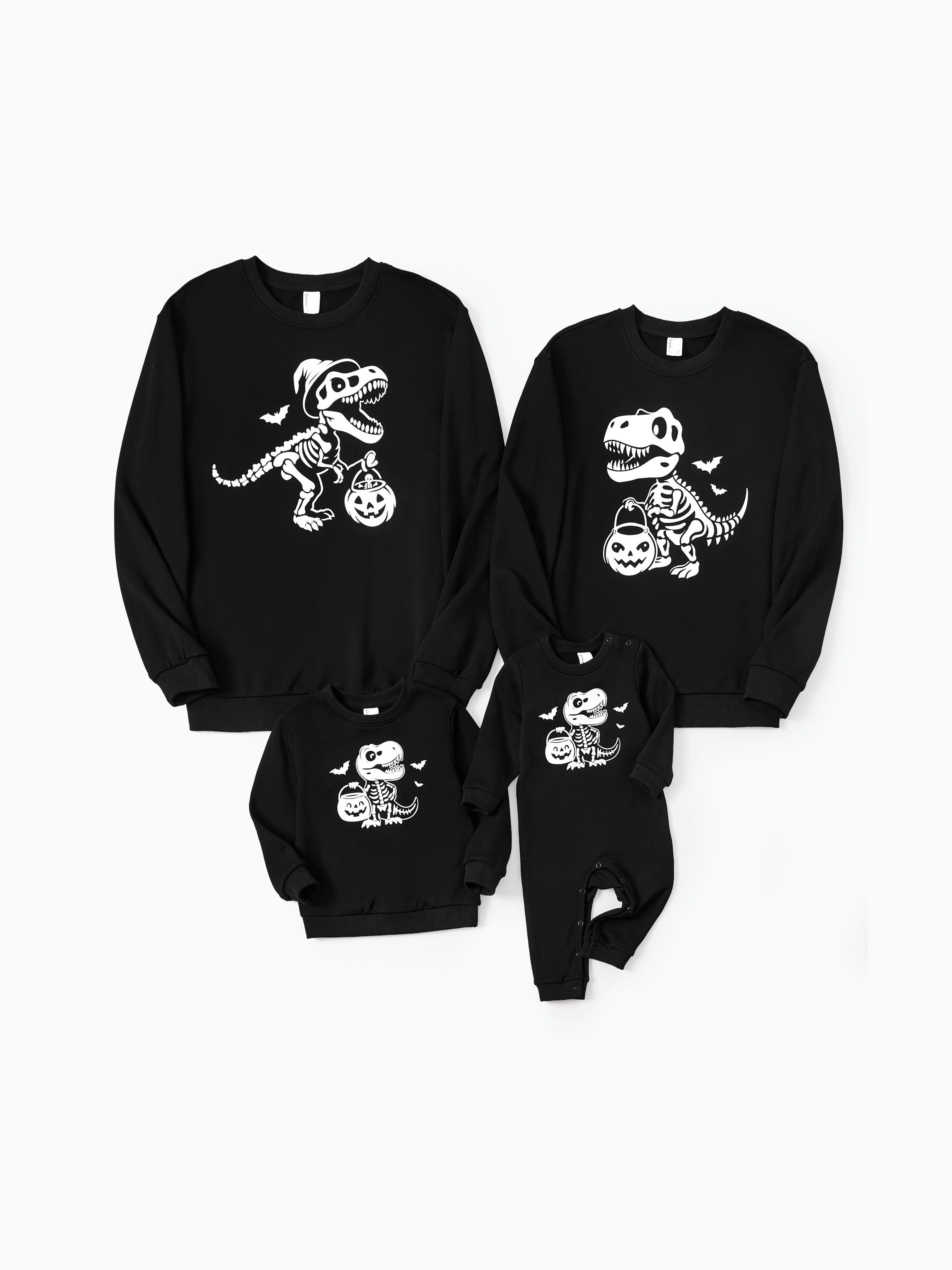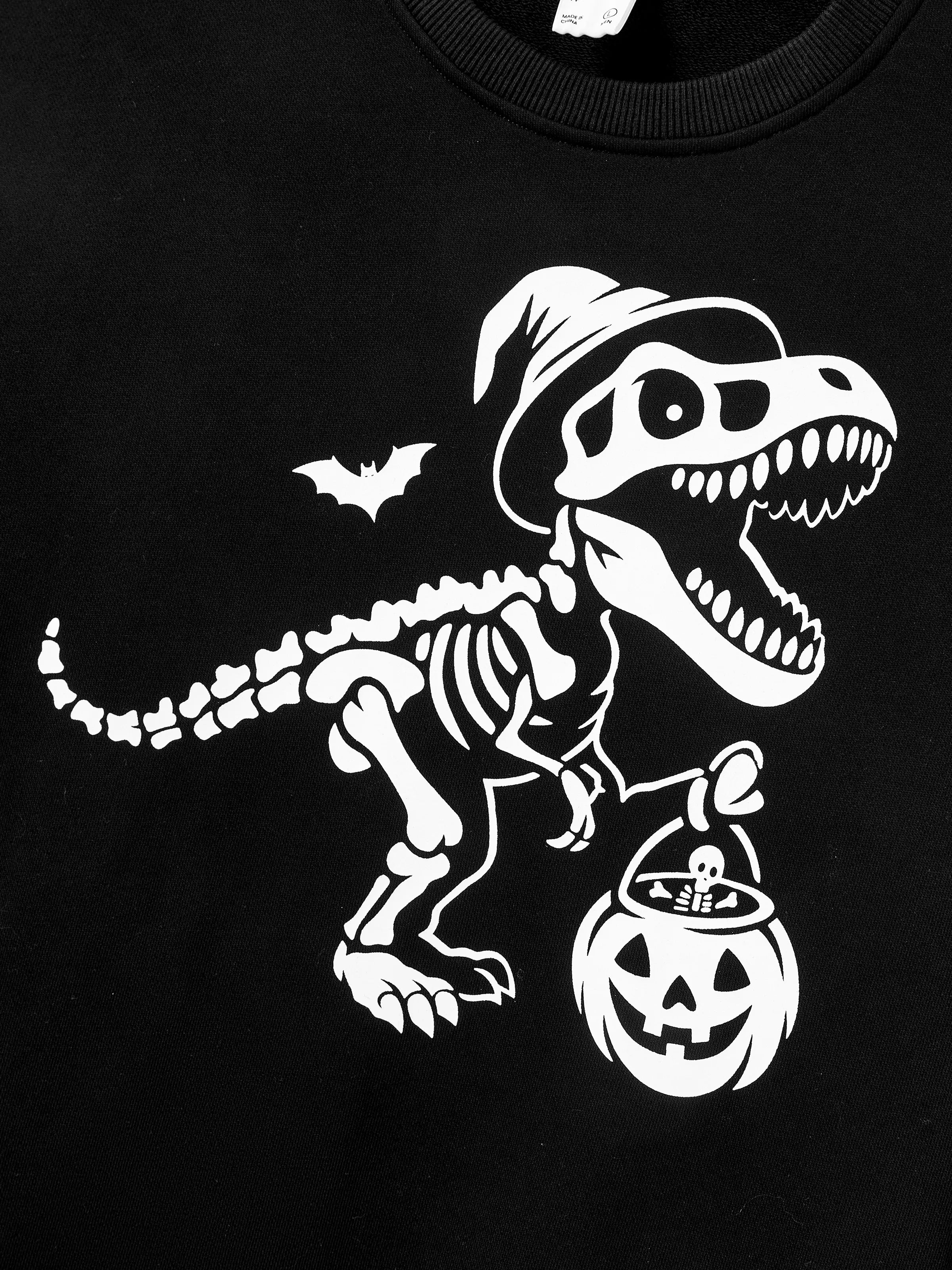 • Un os de dinosaure amusant rencontre une citrouille d'Halloween avec une fonction phosphorescente
