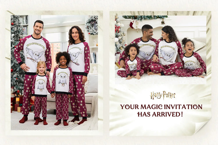 Ensemble pyjama de Noël familial assorti à imprimé Hedwige Harry Potter avec chaussettes de Noël