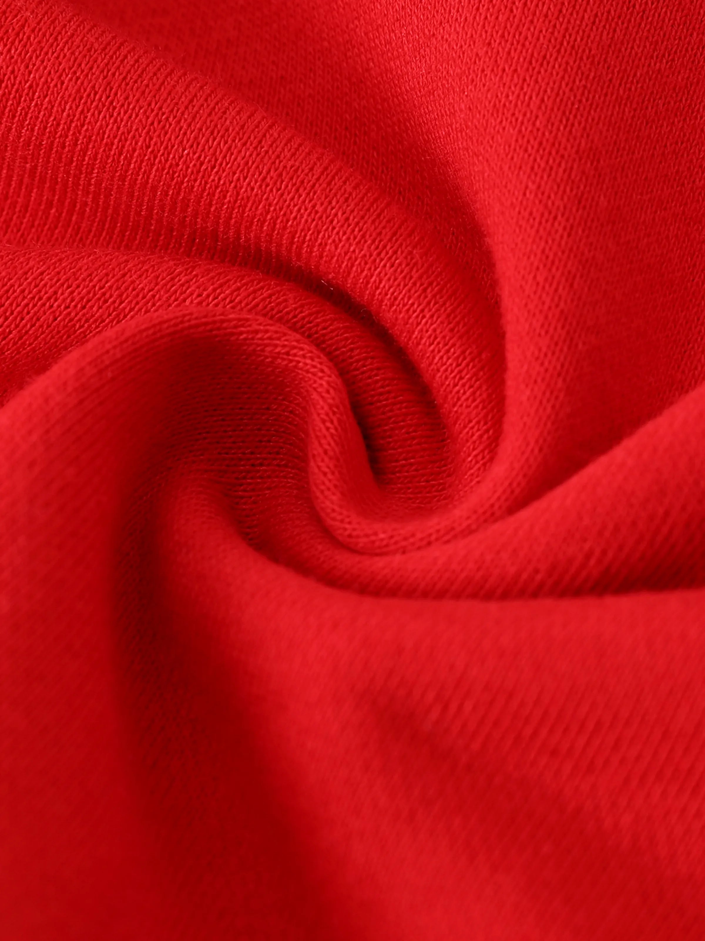 Soft and comfortable fabric blend. Red and black jacket: sleeves - 94% polyester, 6% spandex; body - 54% polyester, 46% cotton; cuffs - 62% polyester, 32% cotton, 6% spandex; hem - 95% cotton, 5% spandex; top - 80% polyester, 20% cotton. Blue and black jacket: sleeves - 94% polyester, 6% spandex; body - 54% polyester, 46% cotton; cuffs - 62% polyester, 32% cotton, 6% spandex; hem - 95% cotton, 5% spandex; top - 80% polyester, 20% cotton.