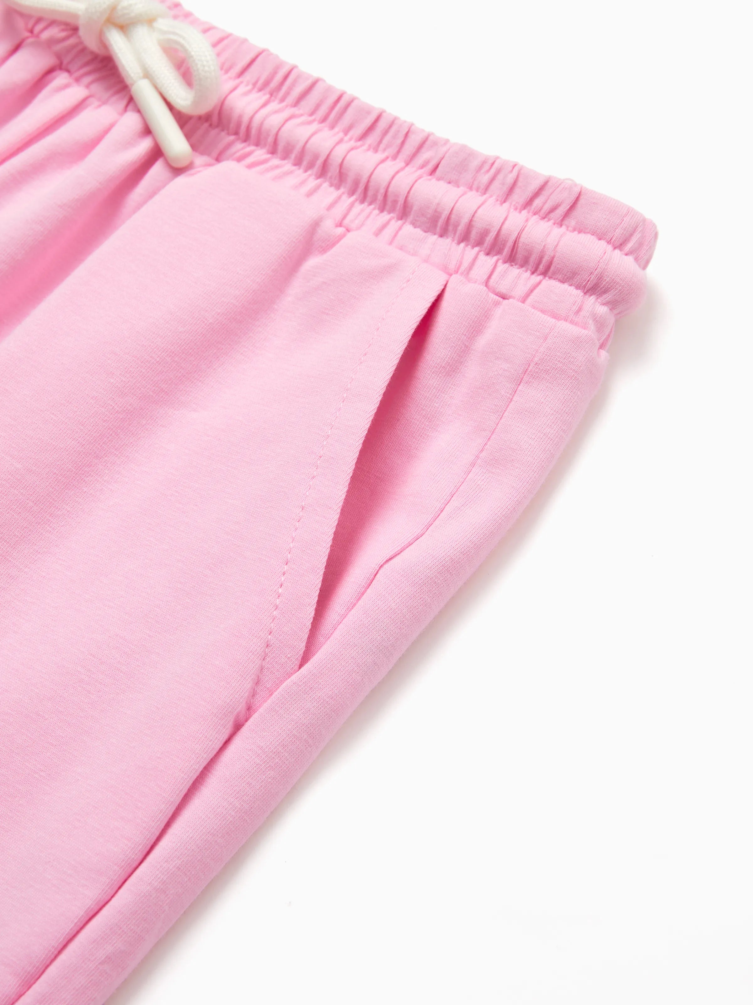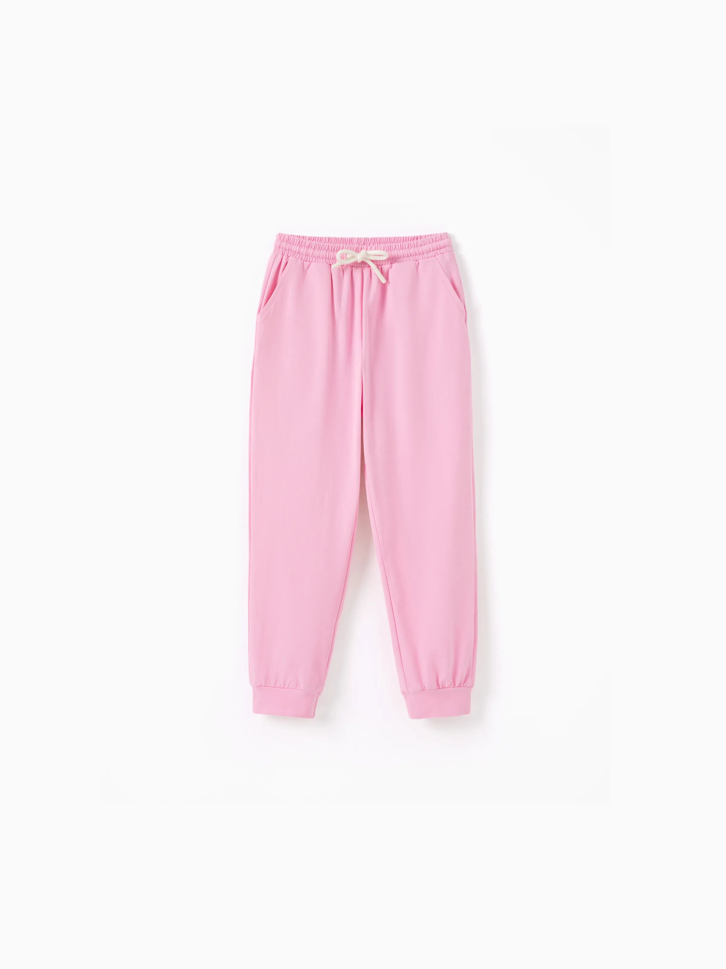 Pantalon décontracté en coton à poches élastiques pour fille, rose