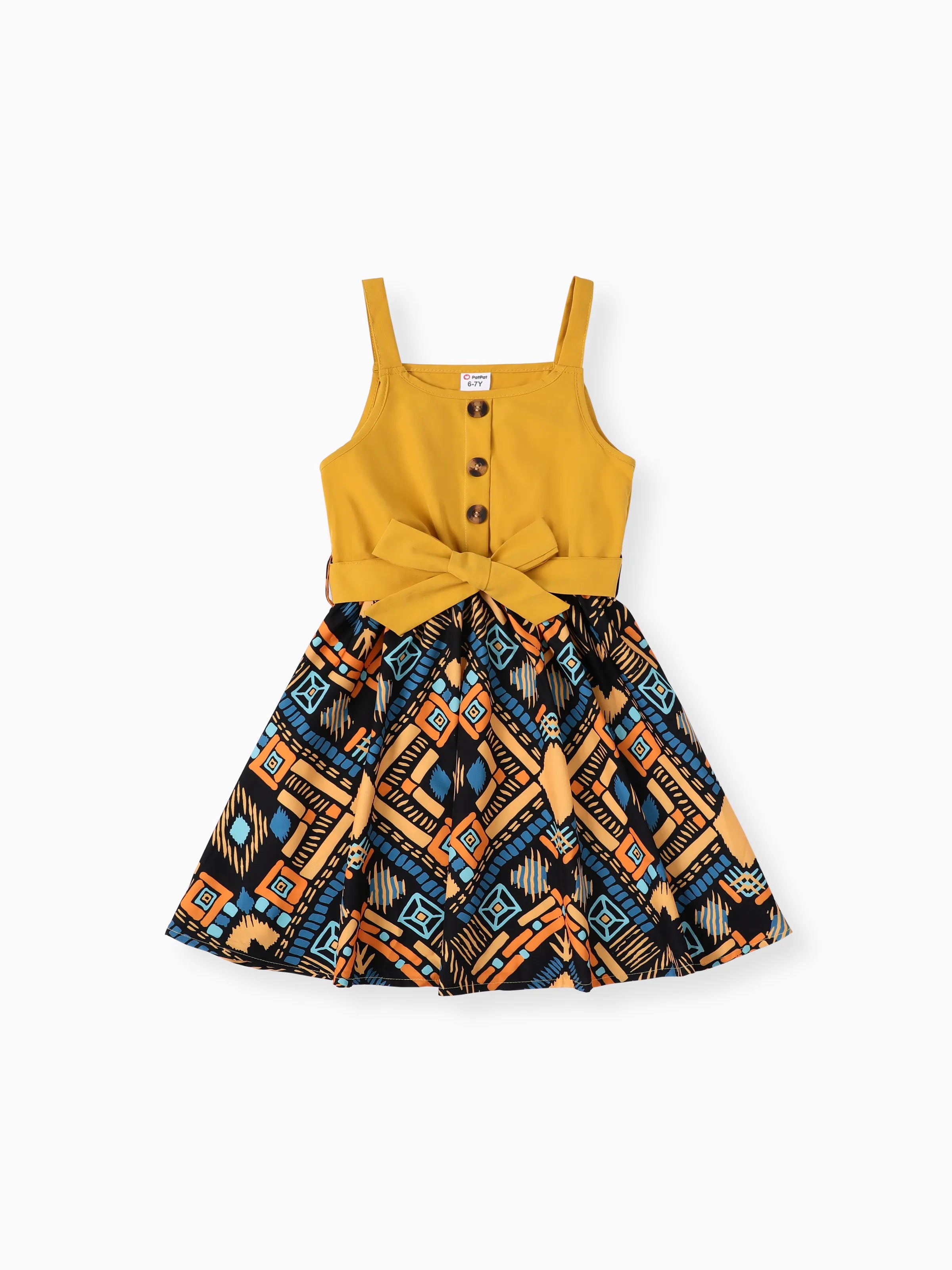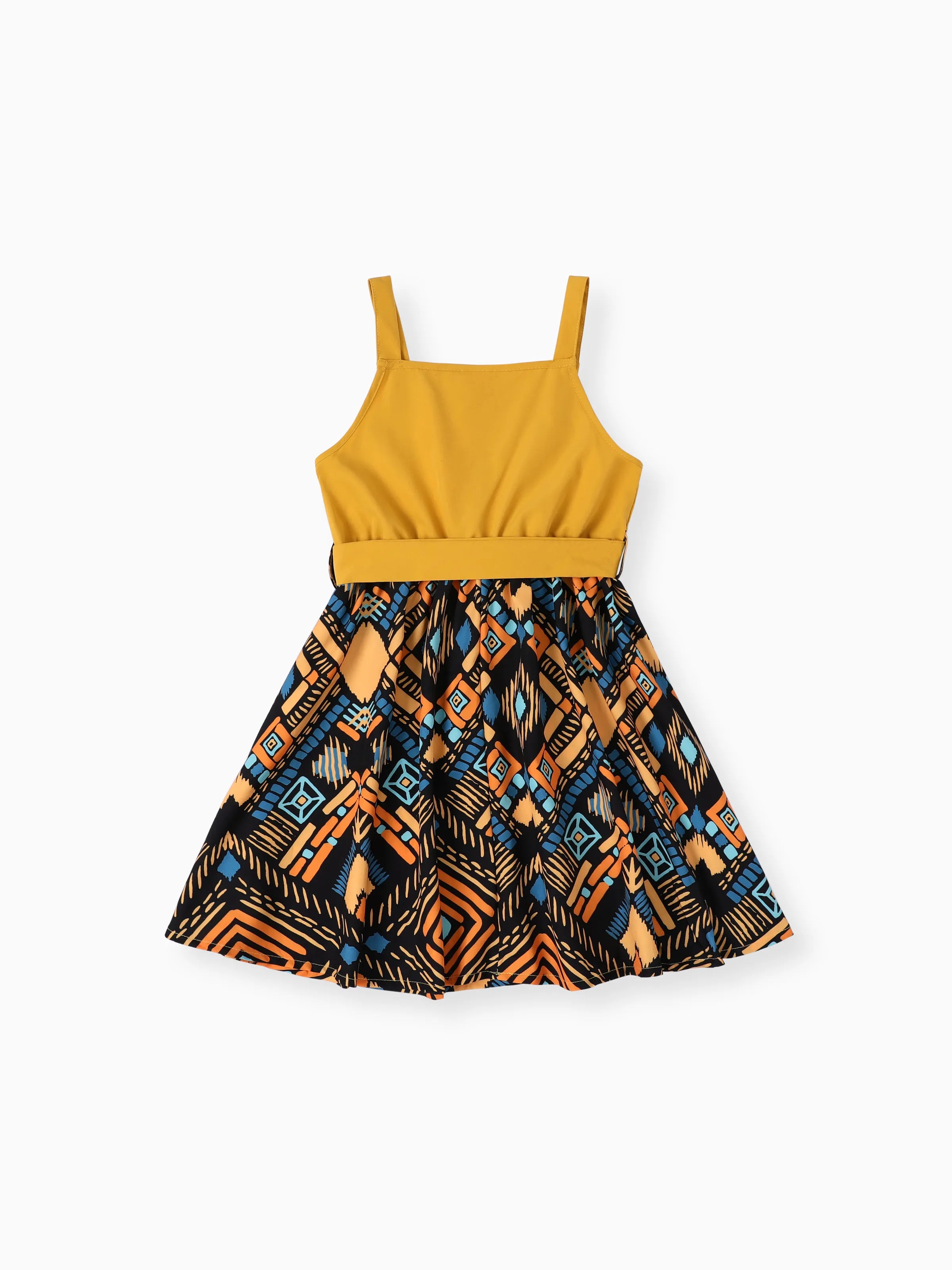 Robe bohème à imprimé ethnique colorblock jaune pour fille