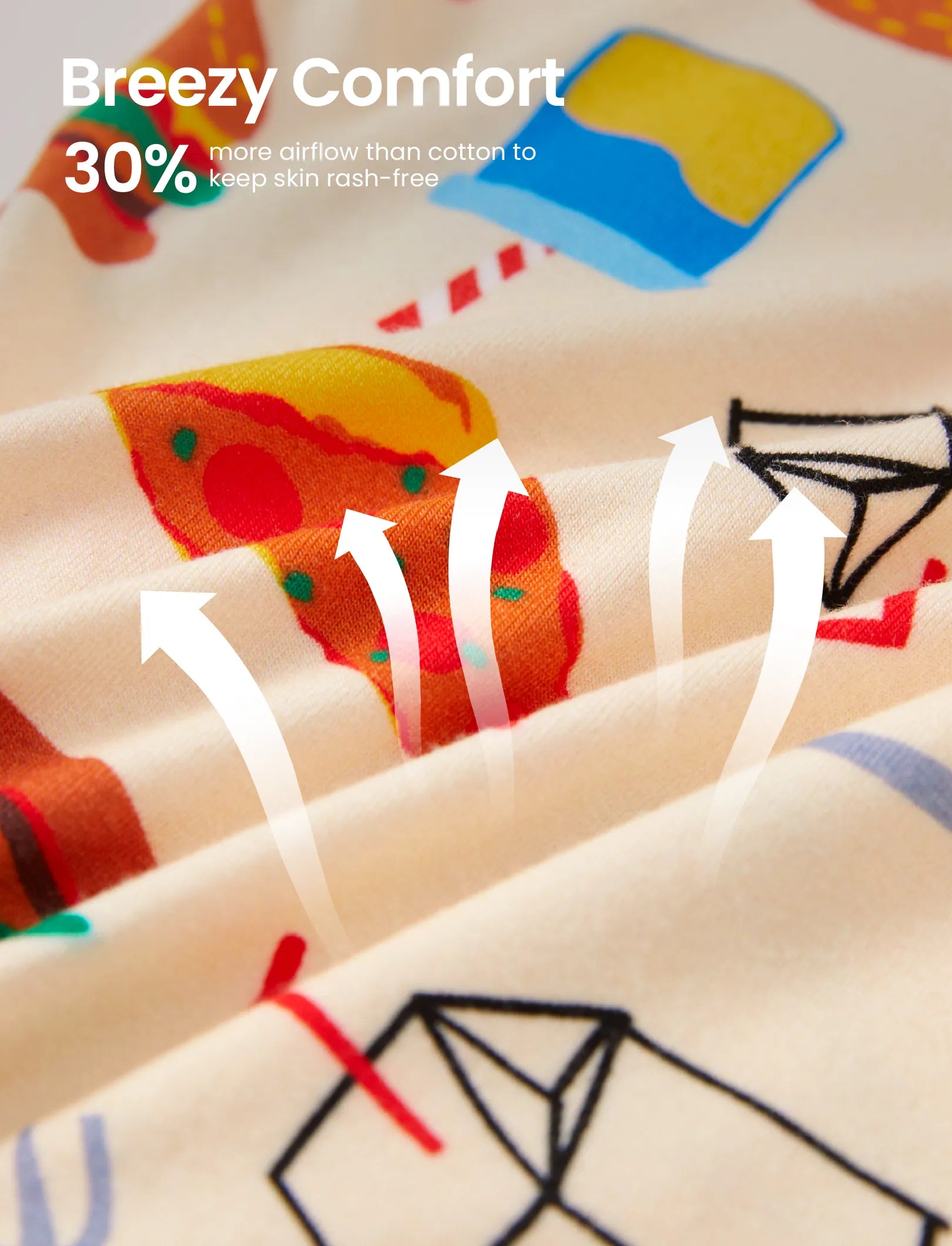 • Respirant et évacuant l'humidité • Fermeture éclair à double sens pour un changement de couche facile • Doux, sans couture et sans irritation • Sans étiquette pour un confort toute la journée • Sûr et sans produits chimiques.