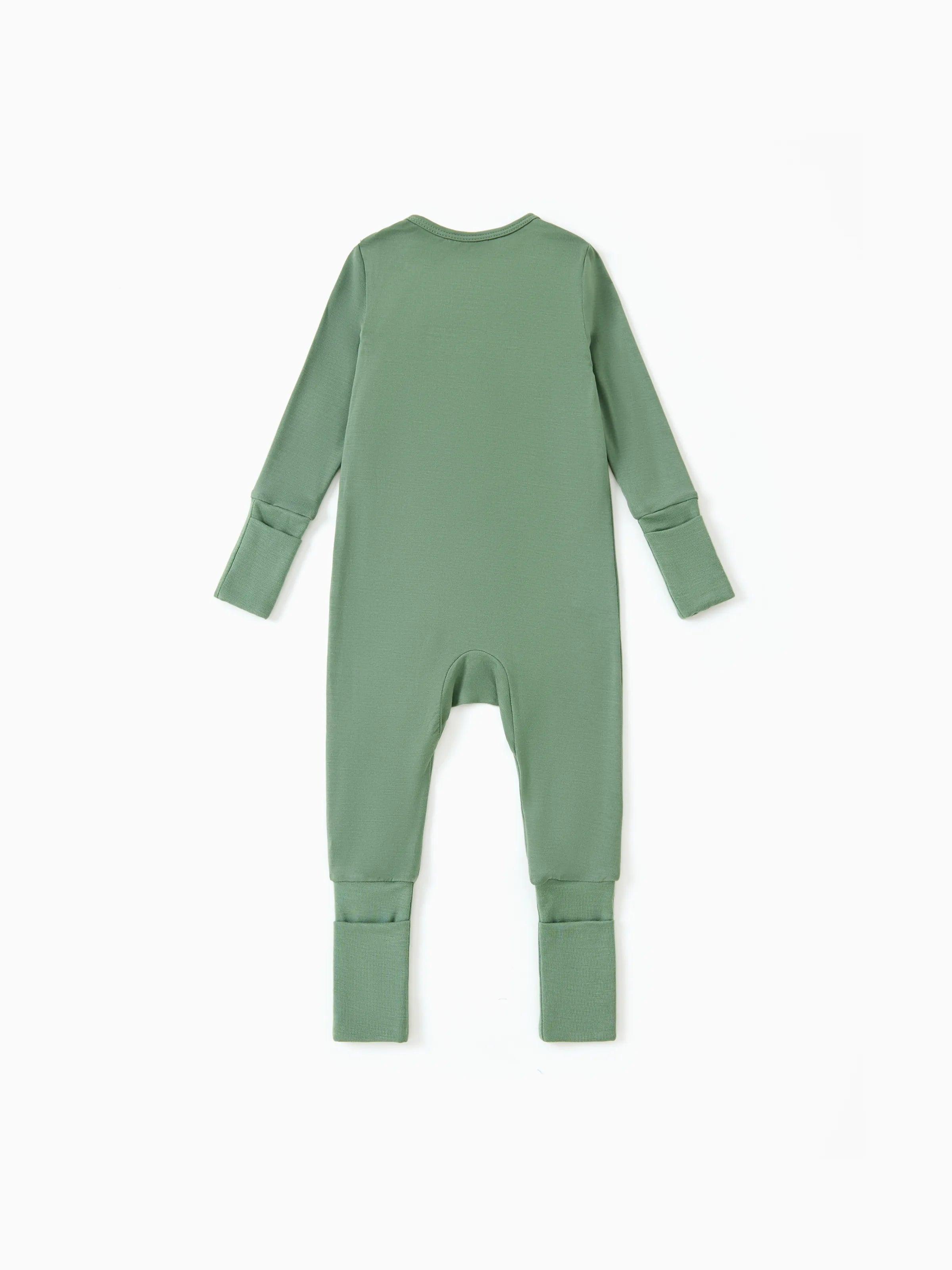 Pyjama en bambou pour bébé/fille, imprimé enfantin (ajusté), vert foncé