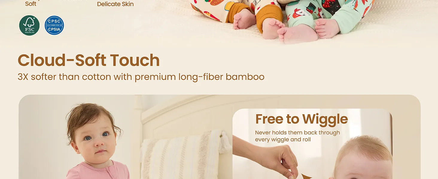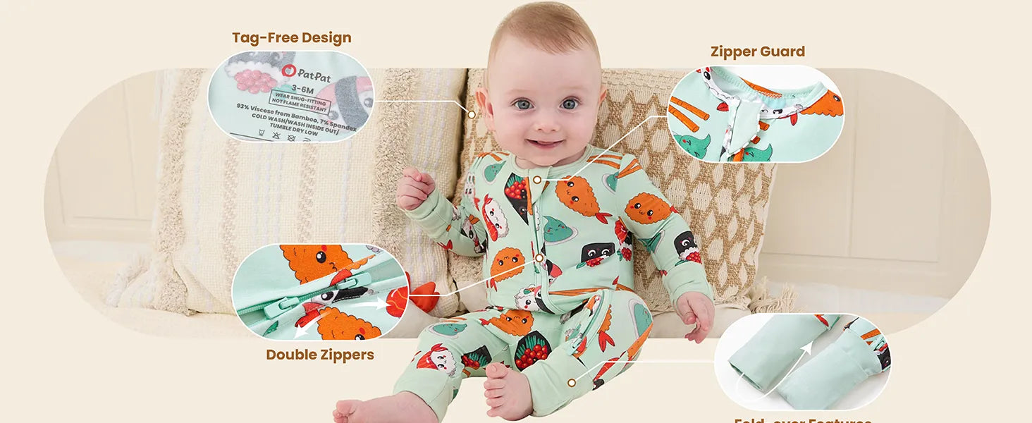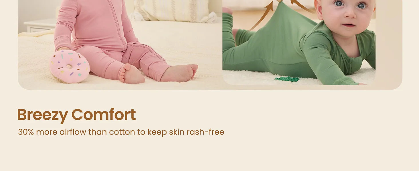 • Respirant et évacuant l'humidité • Fermeture éclair à double sens pour un changement de couche facile • Doux, sans couture et sans irritation • Sans étiquette pour un confort toute la journée • Sûr et sans produits chimiques.