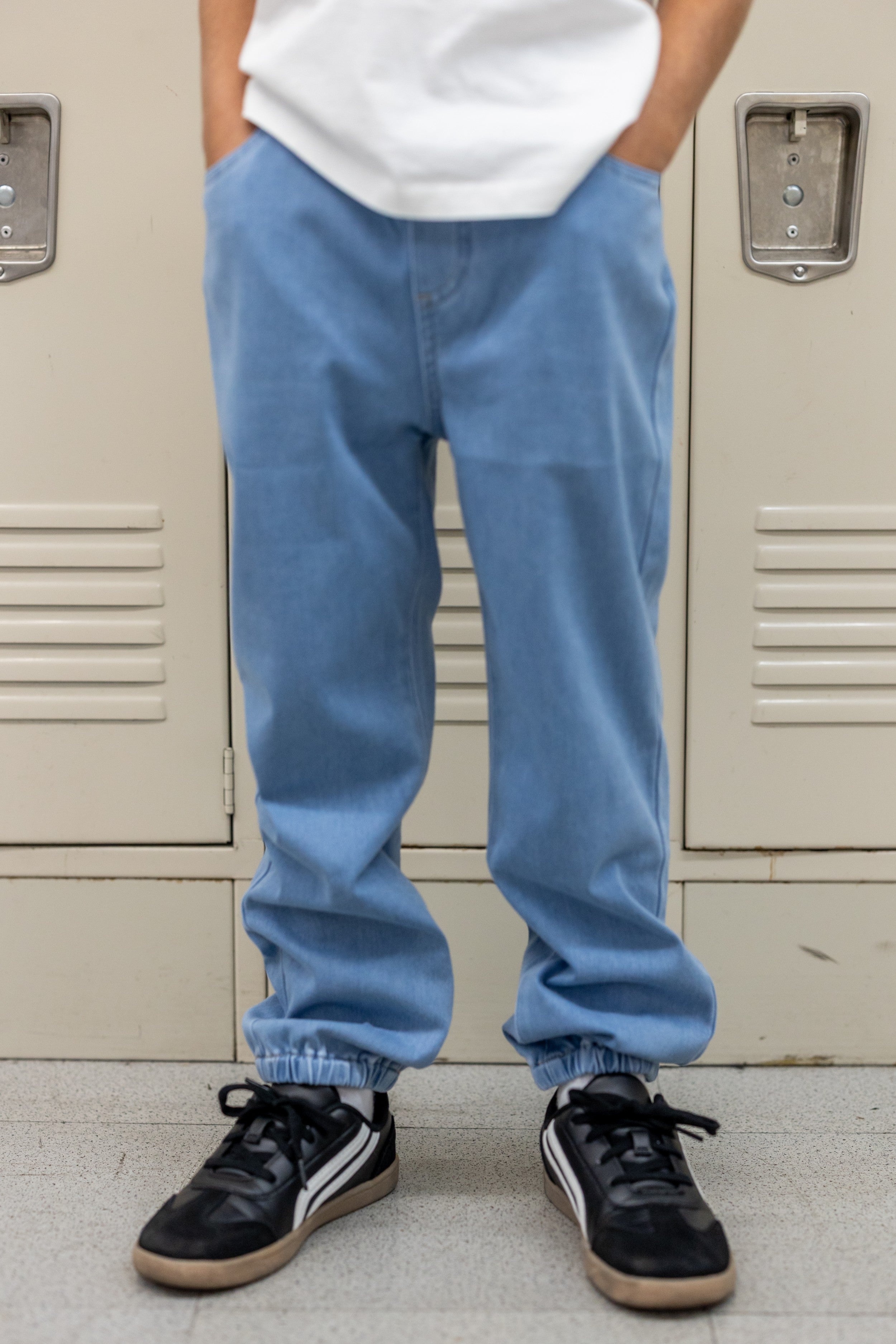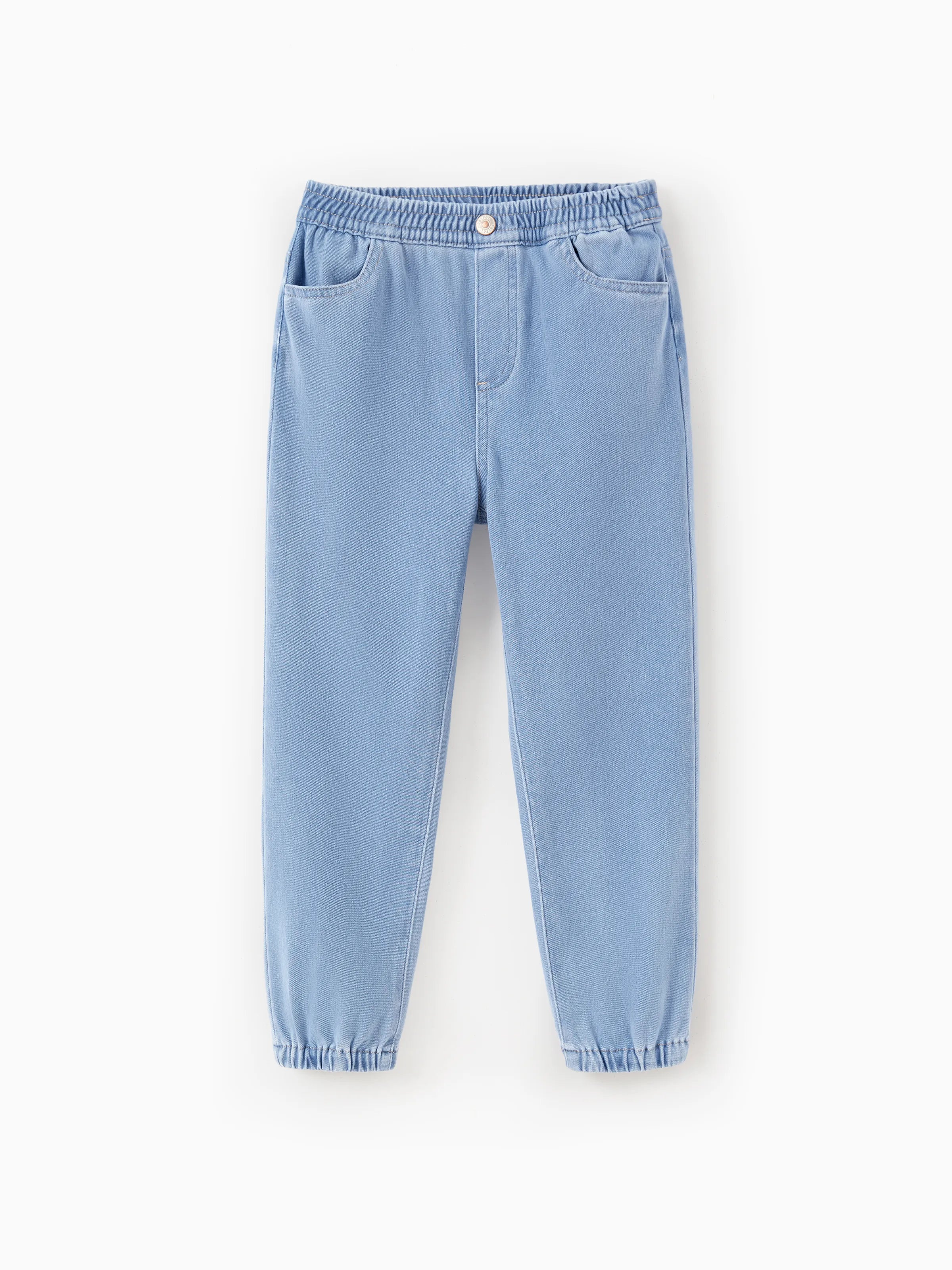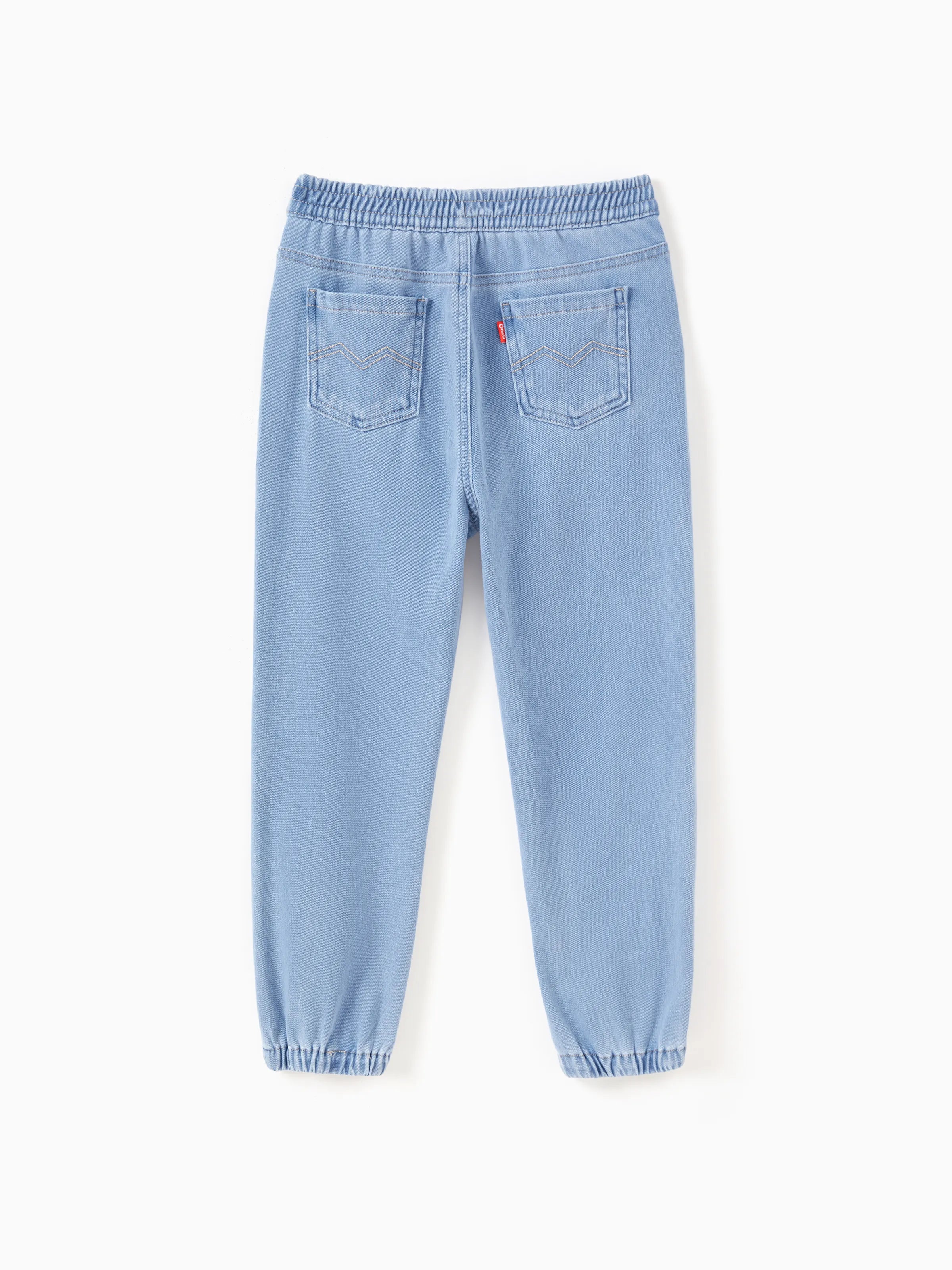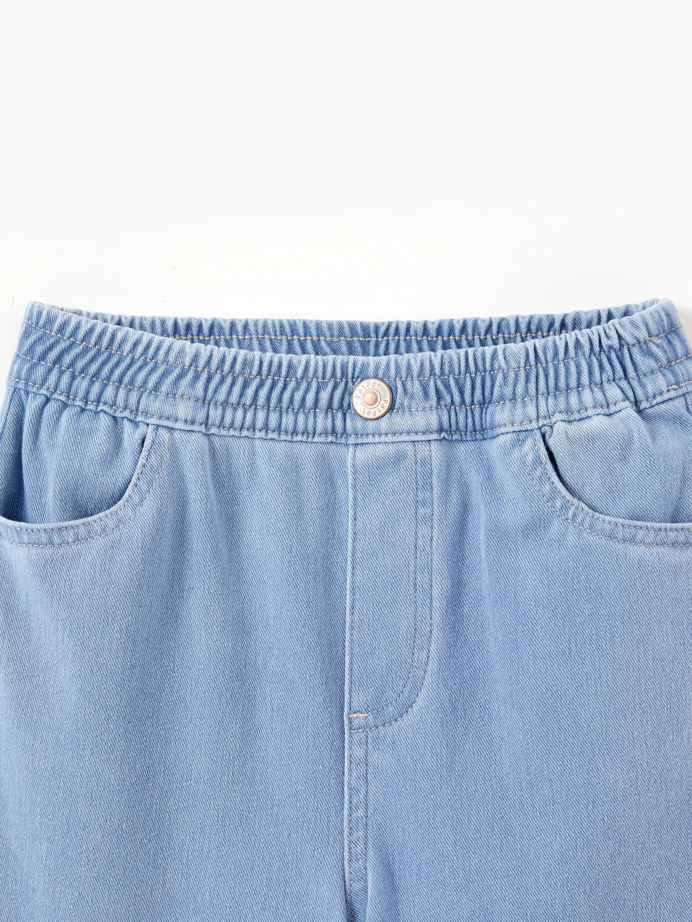 Pantalon en jean pour enfant, taille élastique, doux, extensible, confortable, avec poches, bleu clair