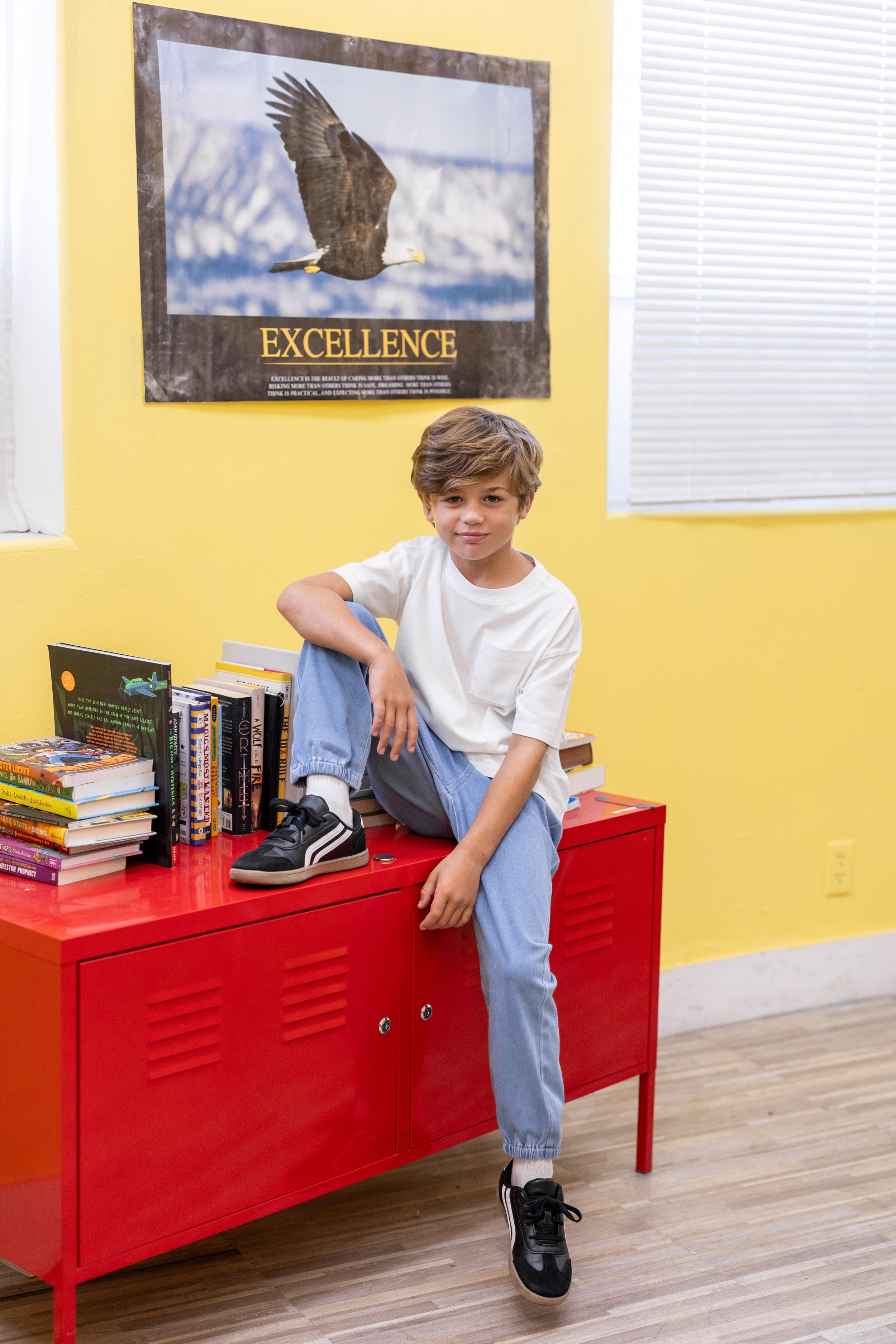 Jean enfant confortable et souple alliant style et liberté de mouvement.