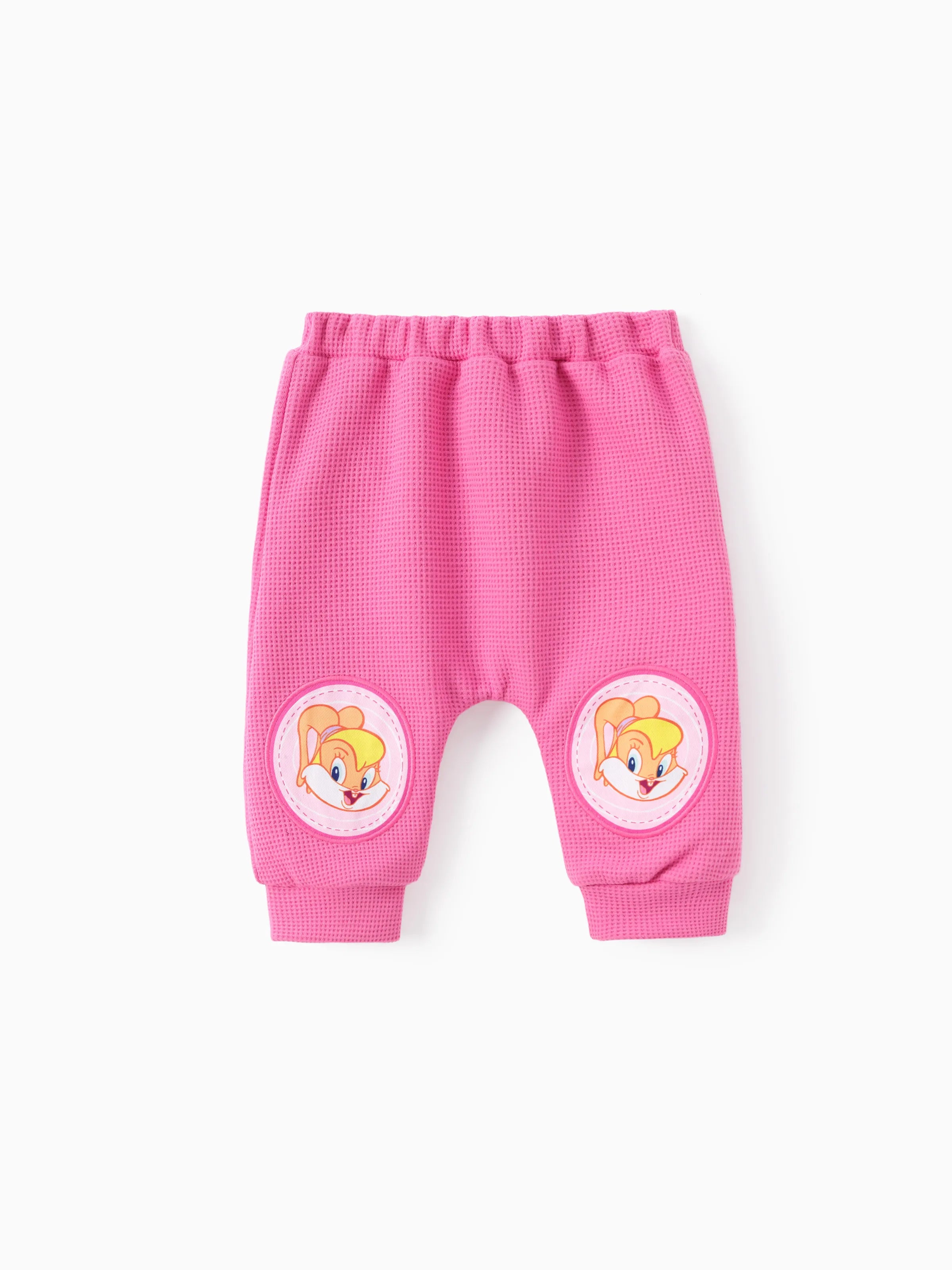Ensemble 2 pièces haut à manches longues et pantalon en tricot brodé pour bébé fille, motif Looney Tunes, rose
