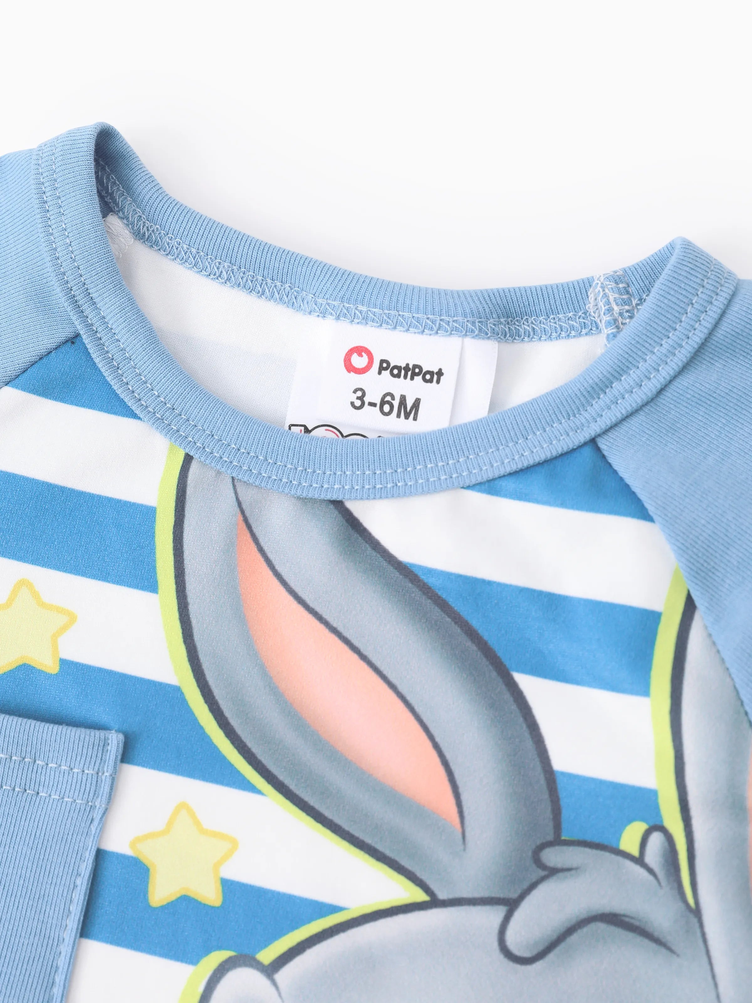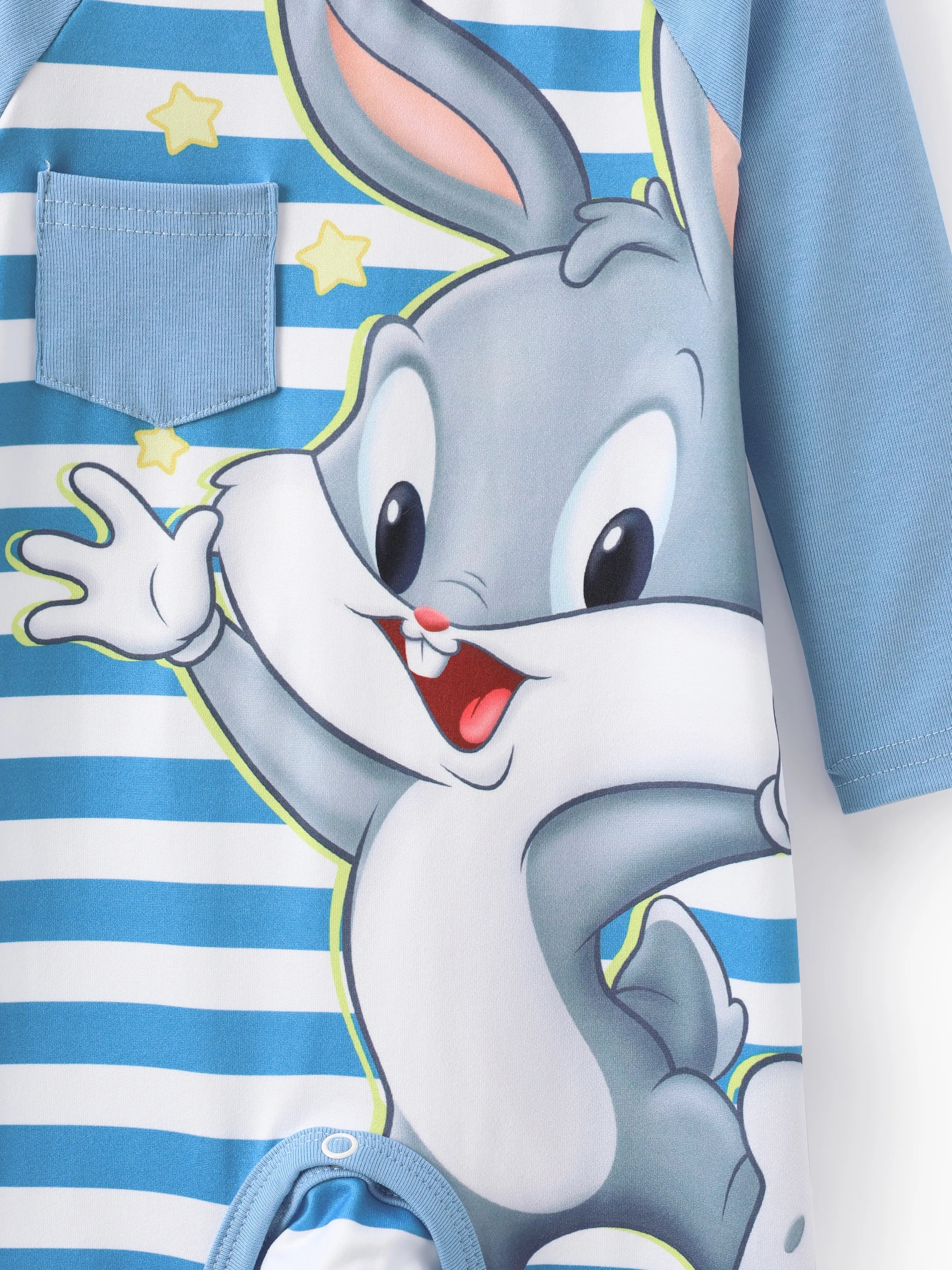 Combinaison rayée à manches longues pour bébé fille/garçon Looney Tunes, 1 pièce, bleu ciel