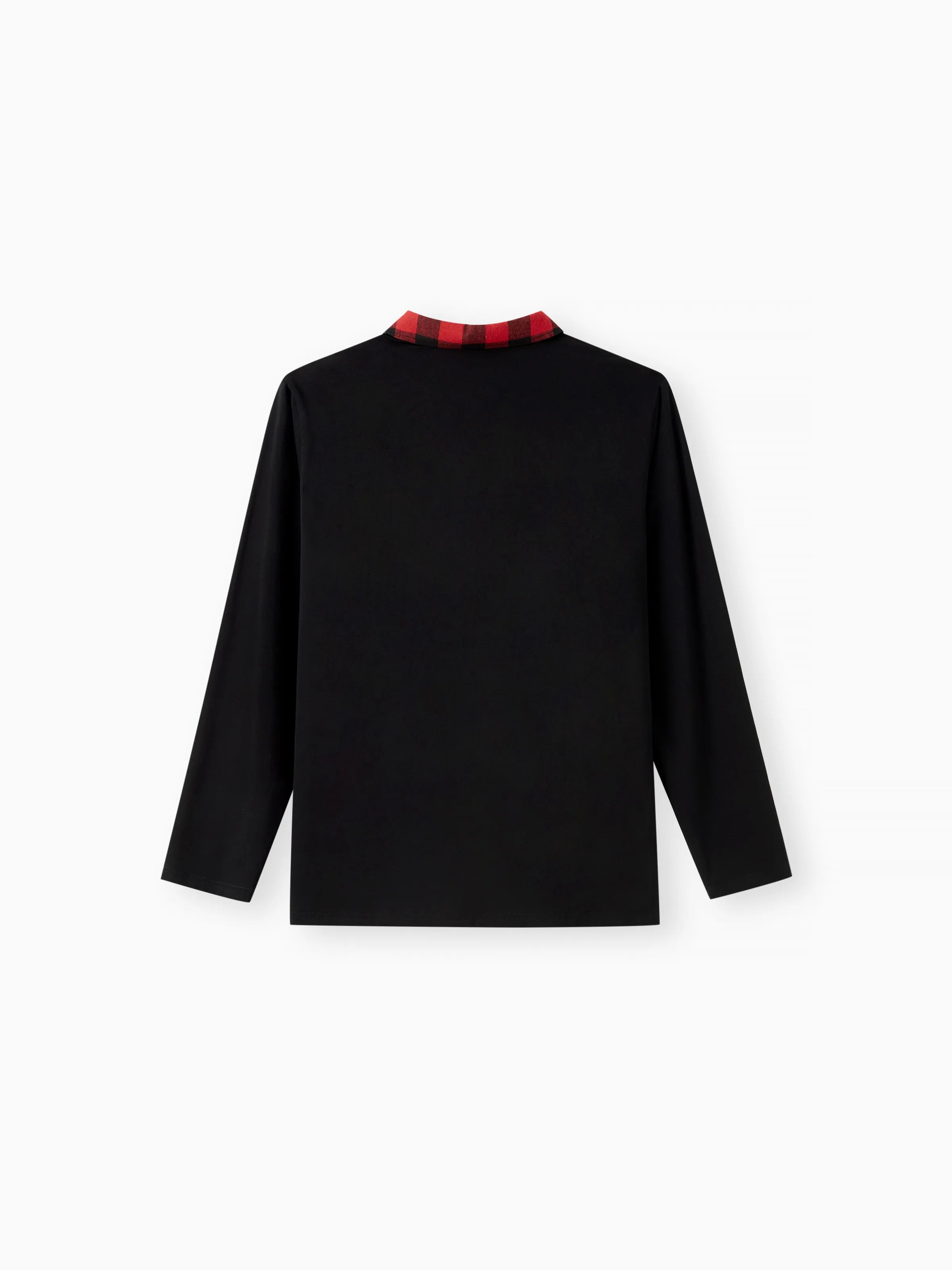Tenue familiale rouge et noire confortable et douce, adaptée à toutes les occasions.