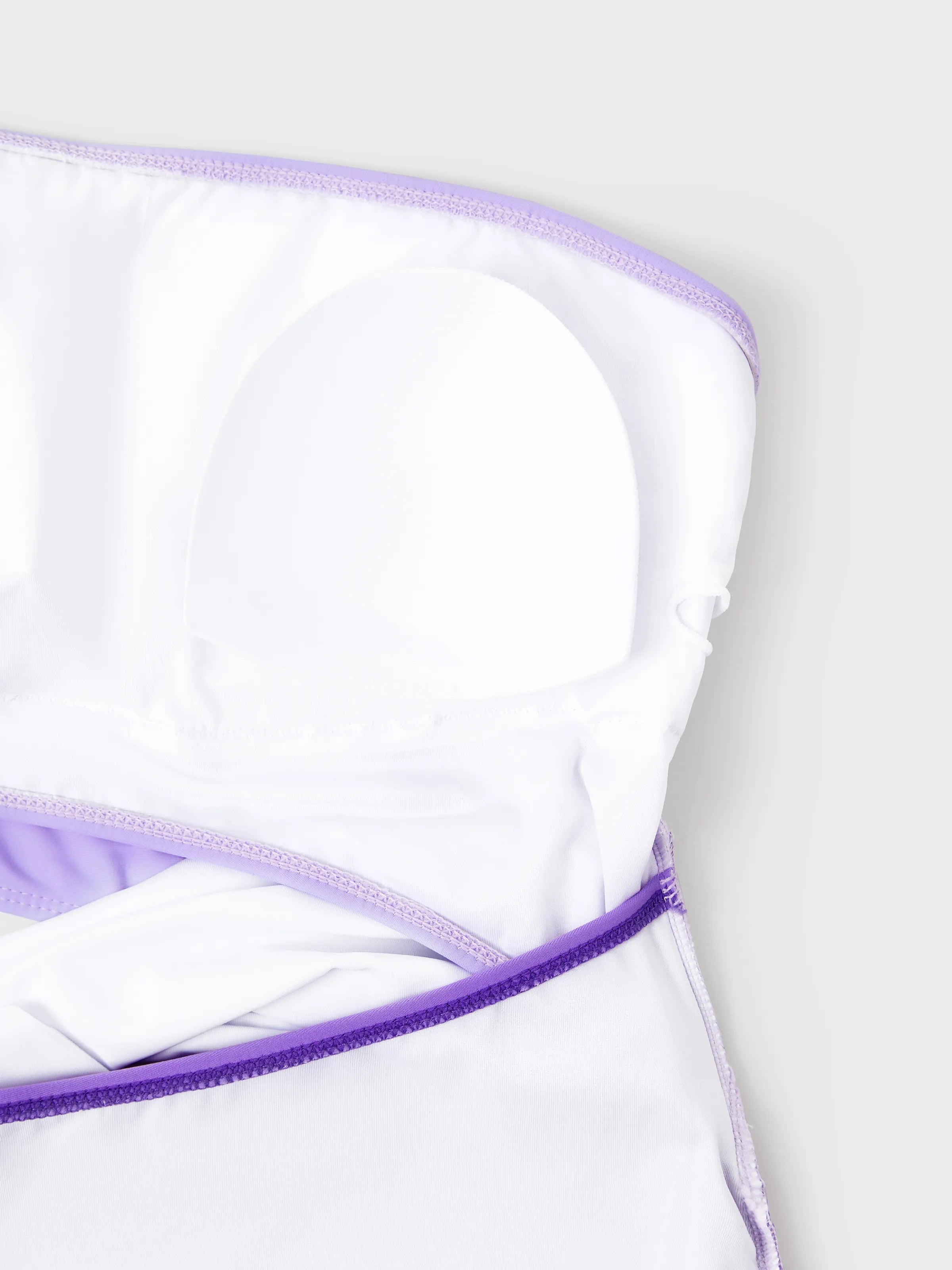• Product features: Matching family swimsuits in white, purple and lavender.