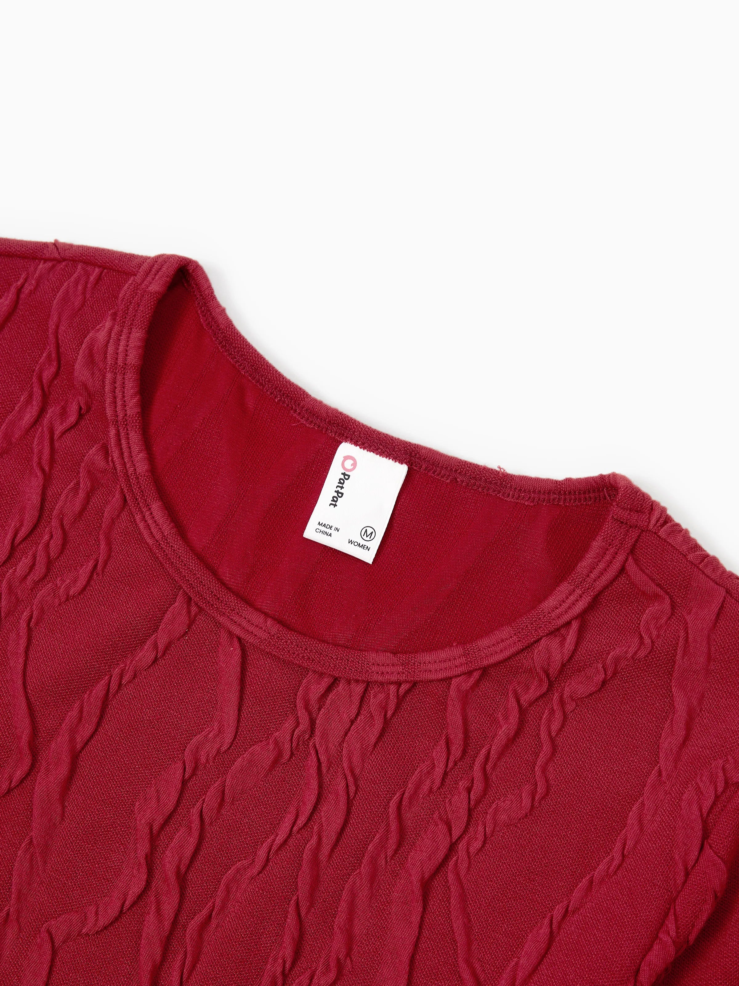 • Tenue familiale rouge assortie, design texturé détaillé, chaleureuse et élégante.