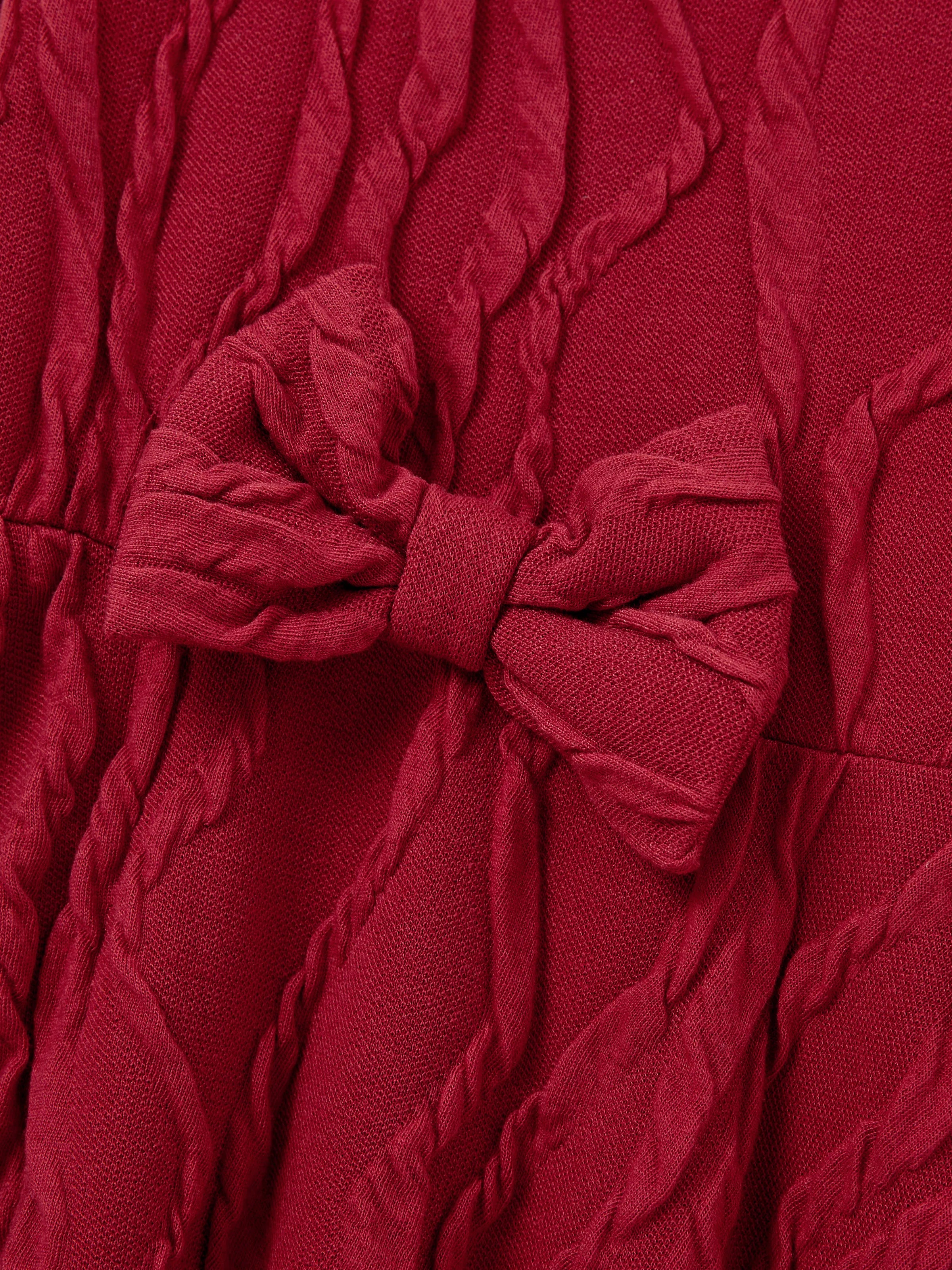 Robe texturée assortie mère-fille avec nœud, tenues familiales assorties à manches longues pour maman et moi, rouge brique