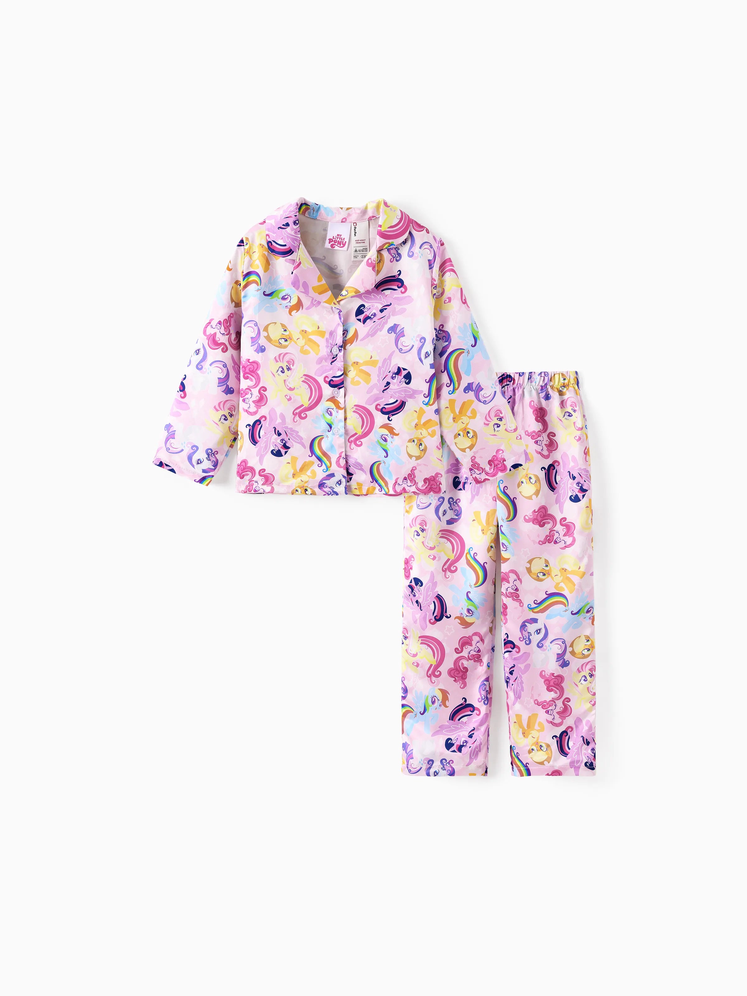 Ensemble pyjama assorti 2 pièces My Little Pony pour toute la famille, résistant aux flammes, col à revers, rose