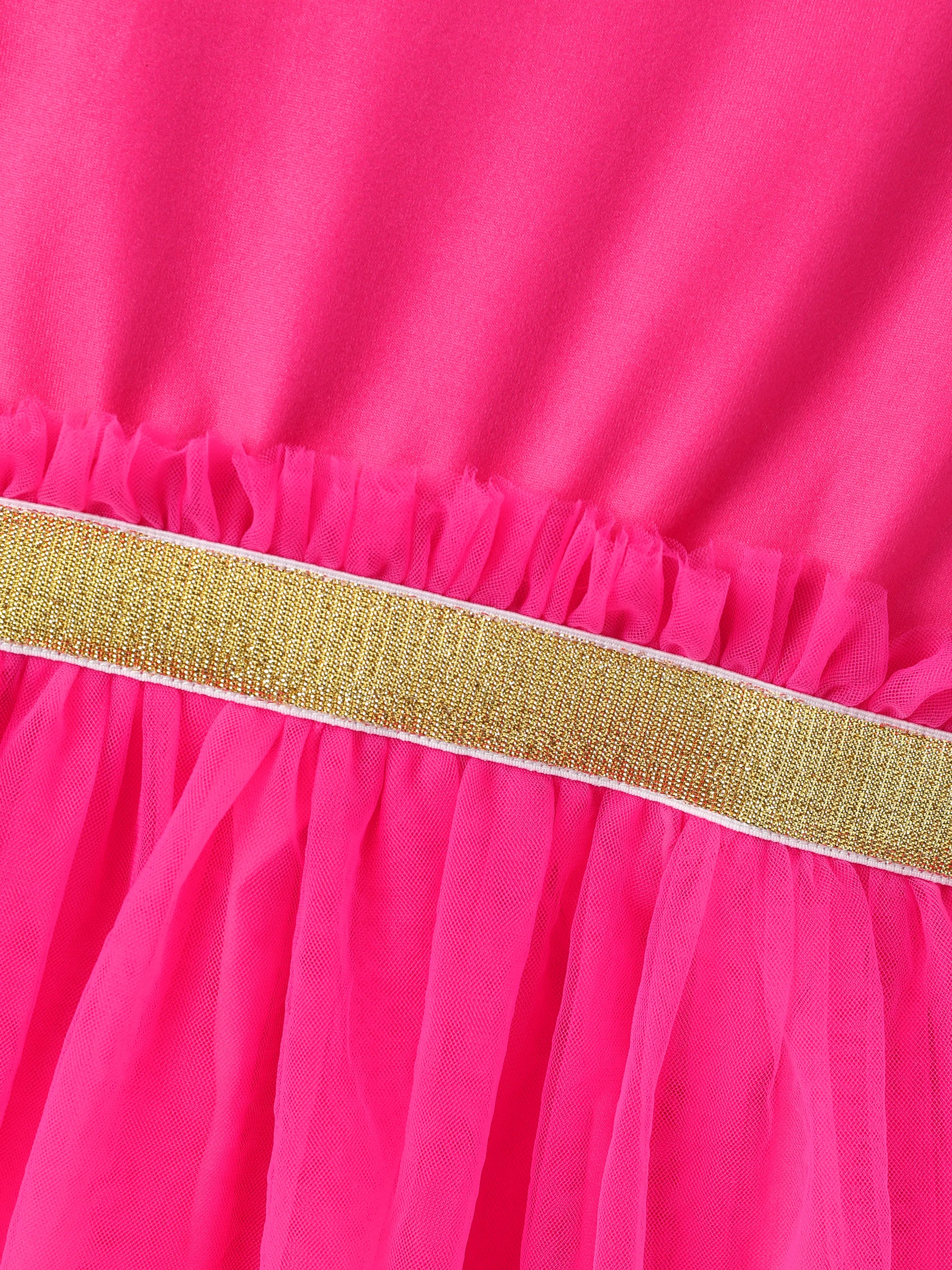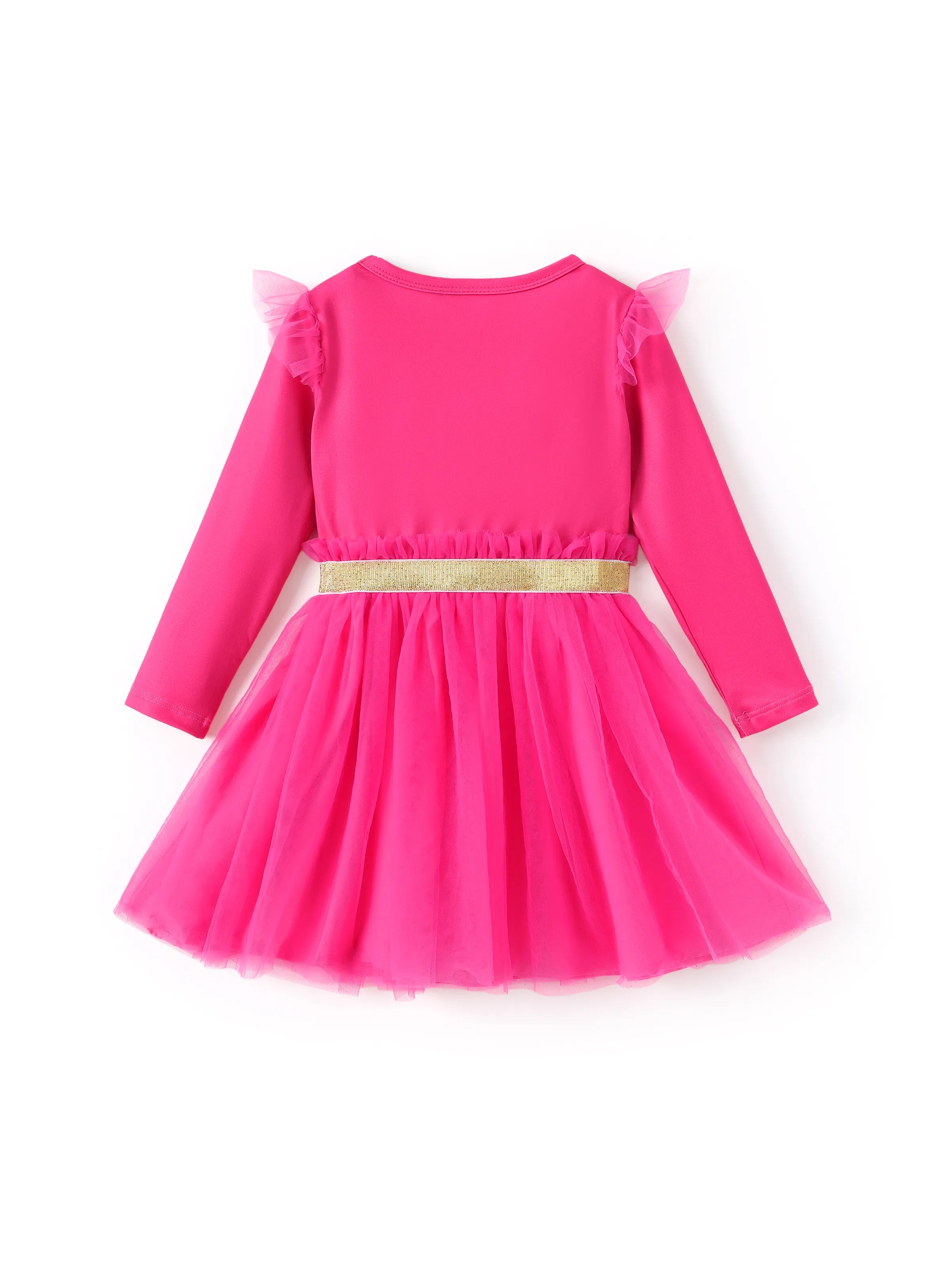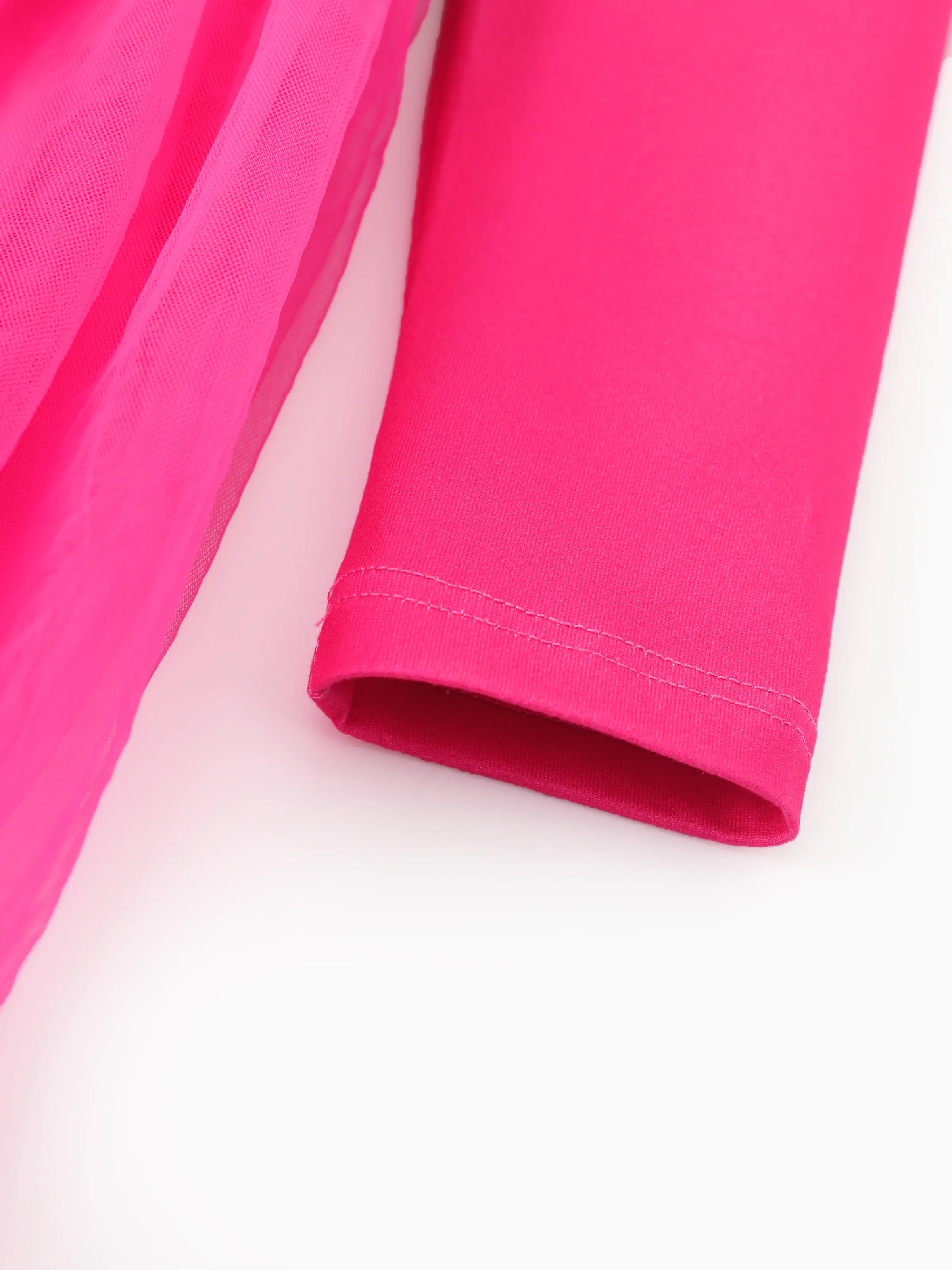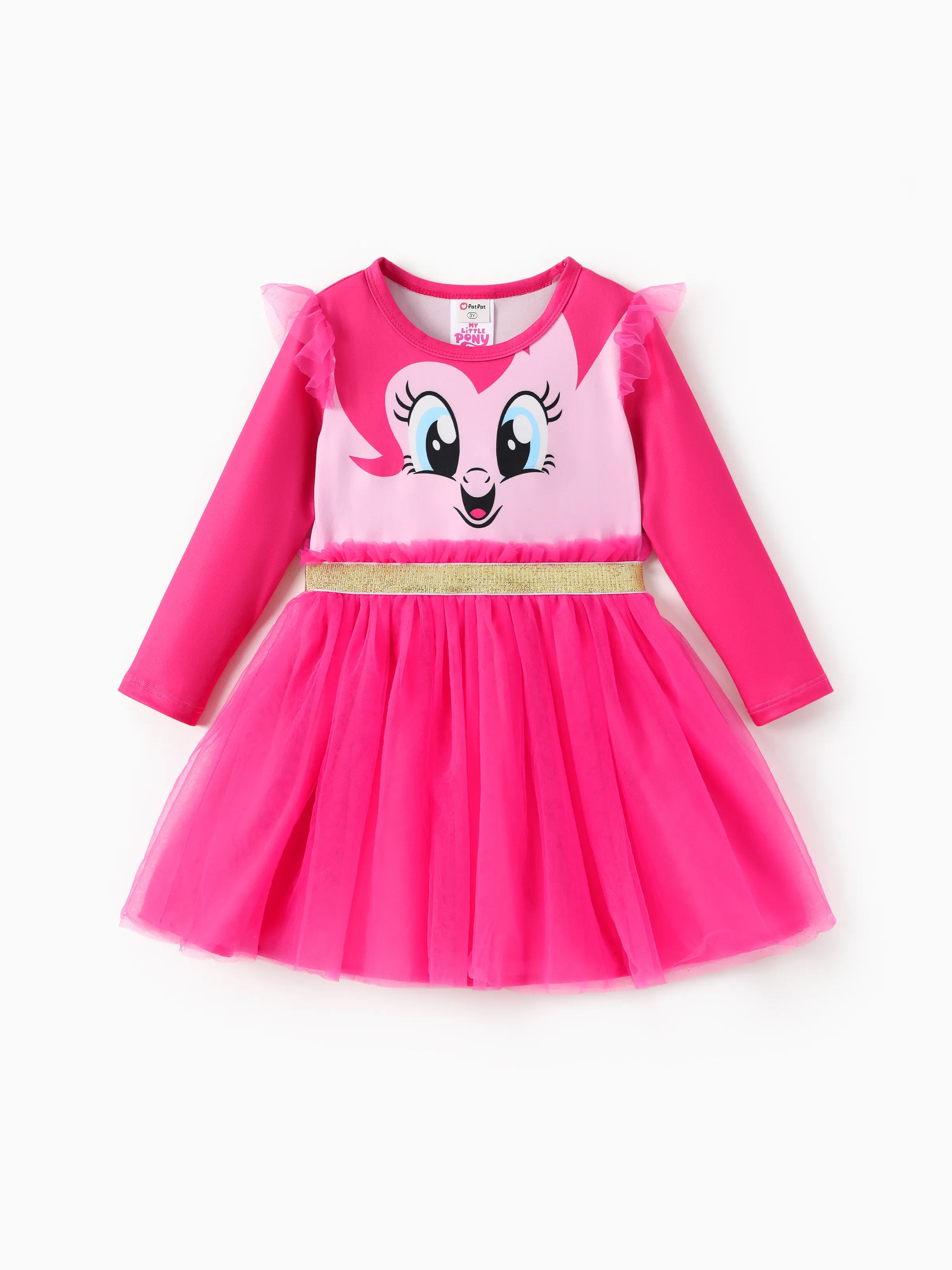 Robe à manches longues en tissu maille à volants Rainbow Dash pour petite fille My Little Pony, rose vif