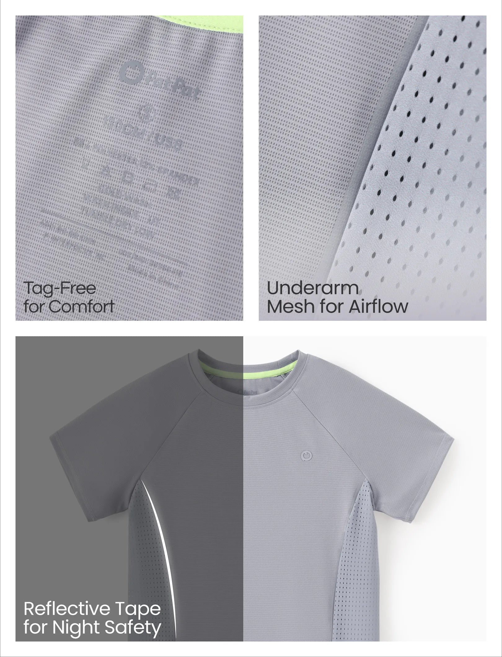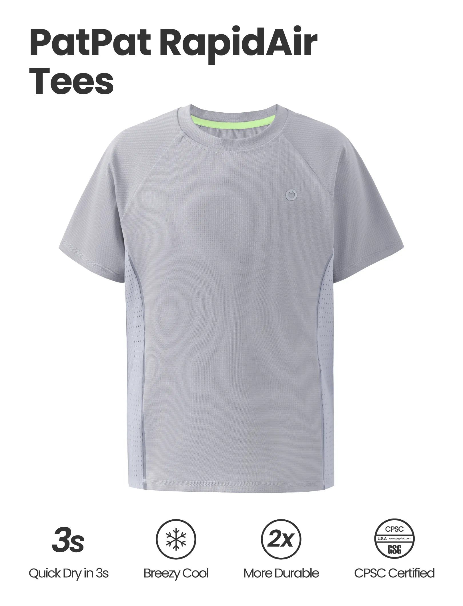 T-shirt de sport PatPat Rapidair Activewear pour enfant, garçon/fille, à séchage rapide et à refroidissement instantané, UPF 100+, anti-éruption cutanée, gris