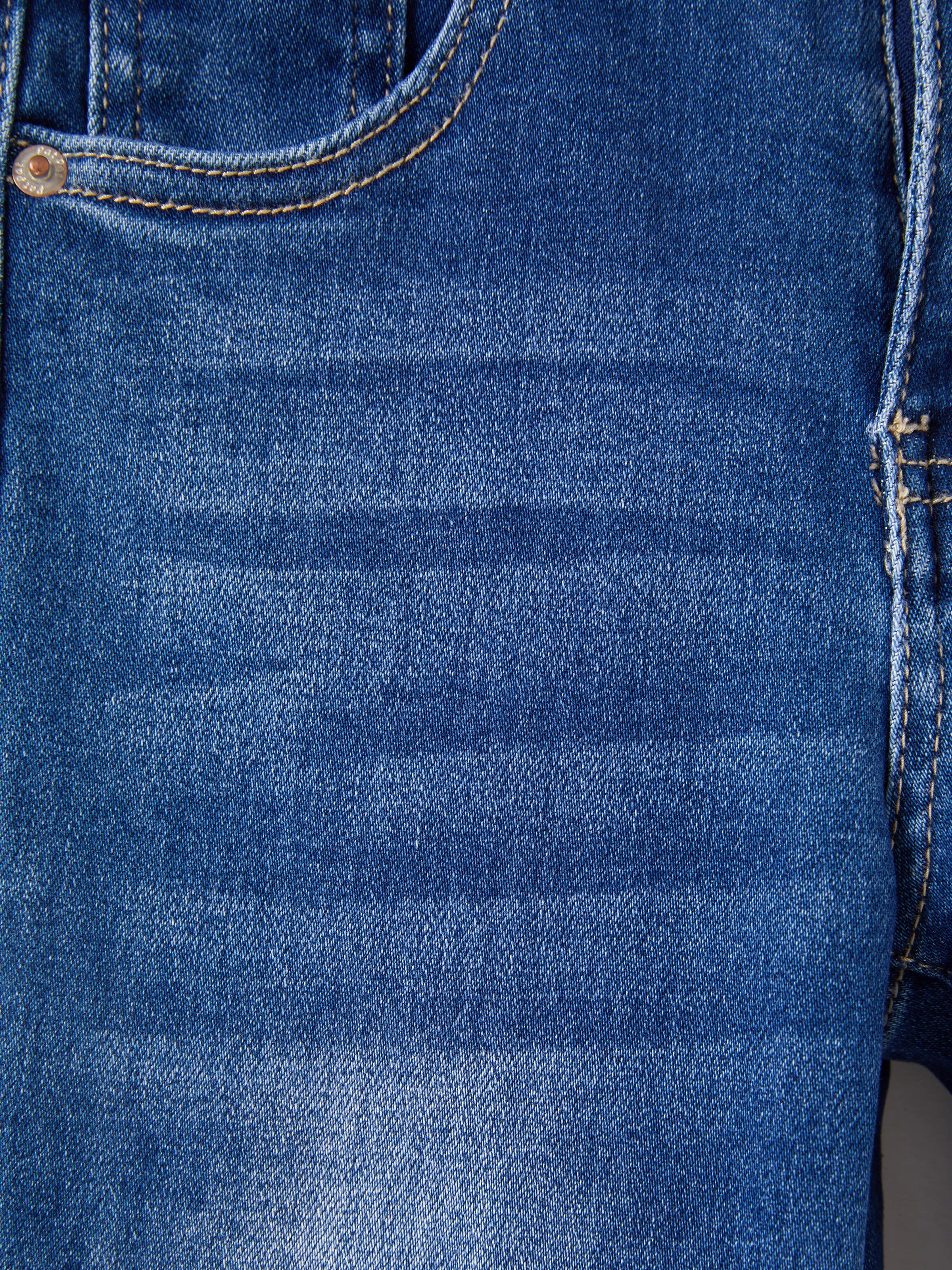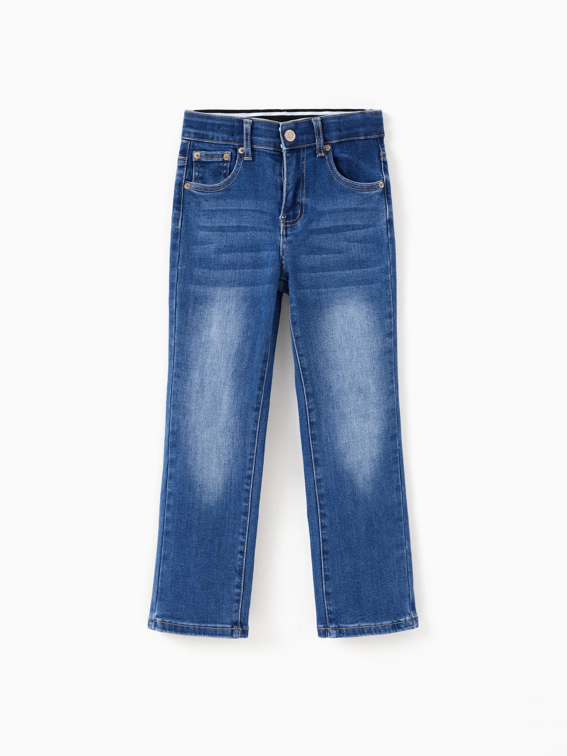 Jean décontracté en coton avec taille élastique, couleur unie, doux, extensible et confortable, avec poches, bleu