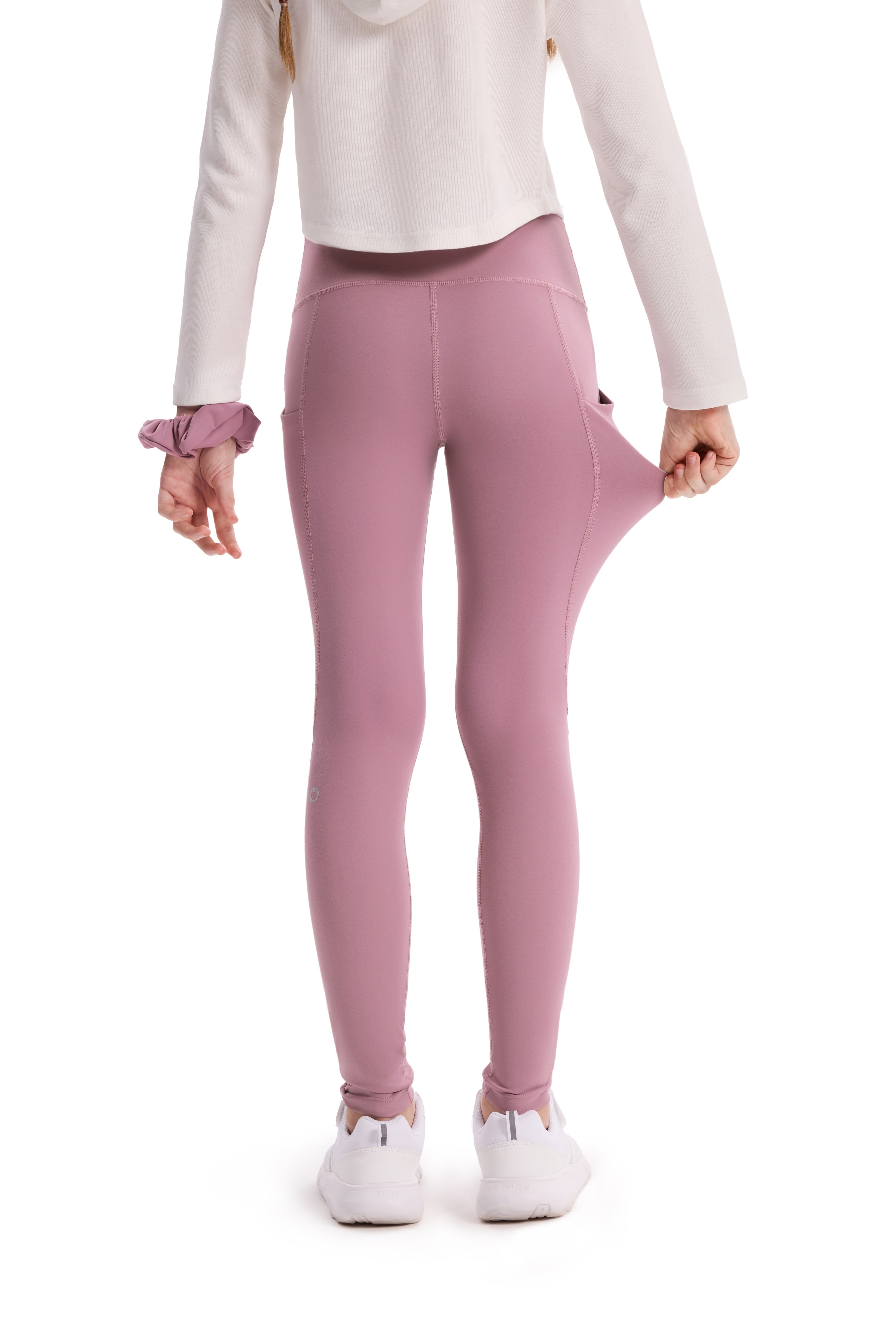 Leggings de yoga taille haute pour fille, couleur unie, avec chouchou assorti offert, violet