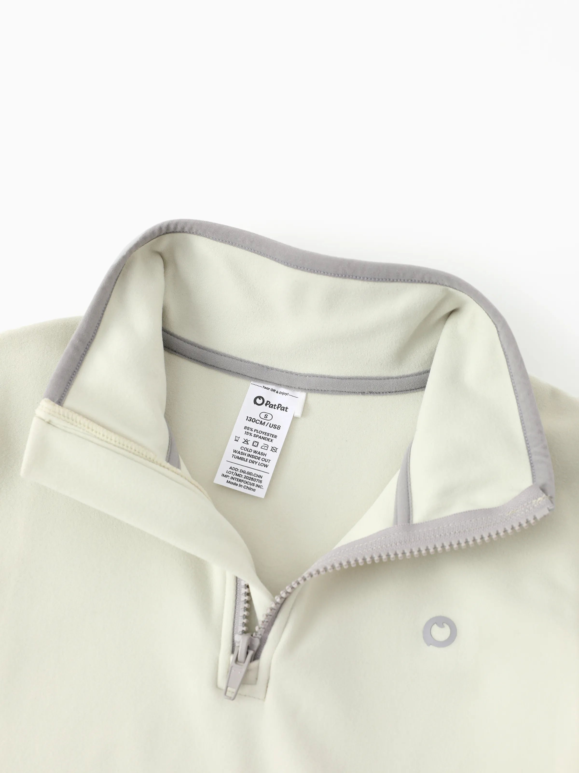Sweat à capuche et demi-zip unisexe pour enfants, col montant, couleur unie, vert clair