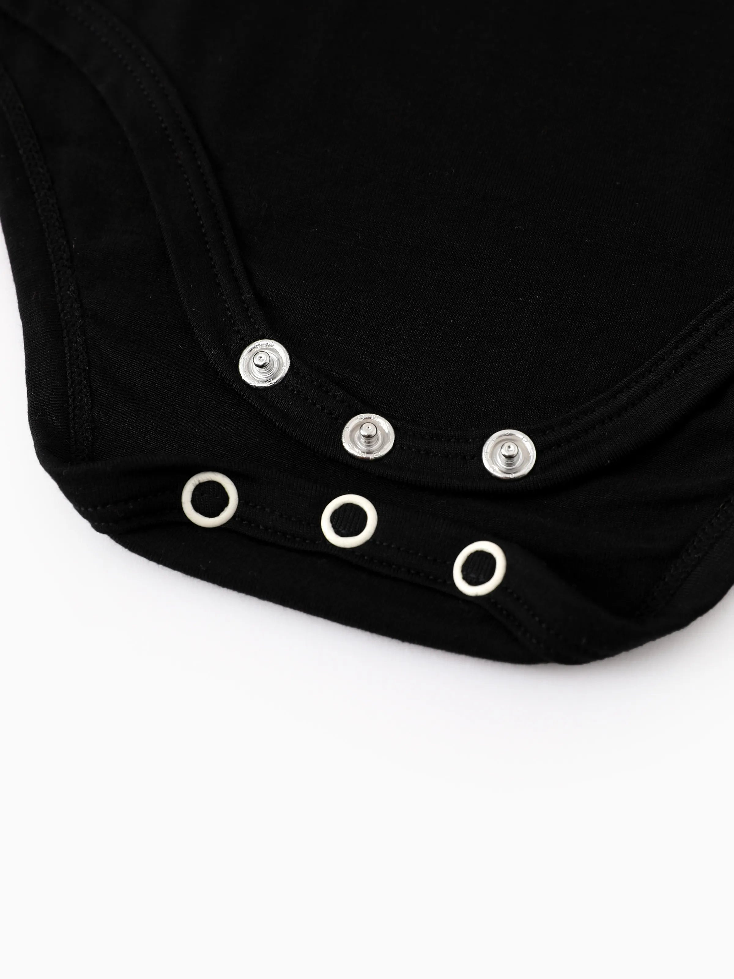 Barboteuse pour bébé en fibre de bambou douce et respirante en noir, rouge et beige, avec des thèmes Star Wars uniques pour un look science-fiction et ludique.