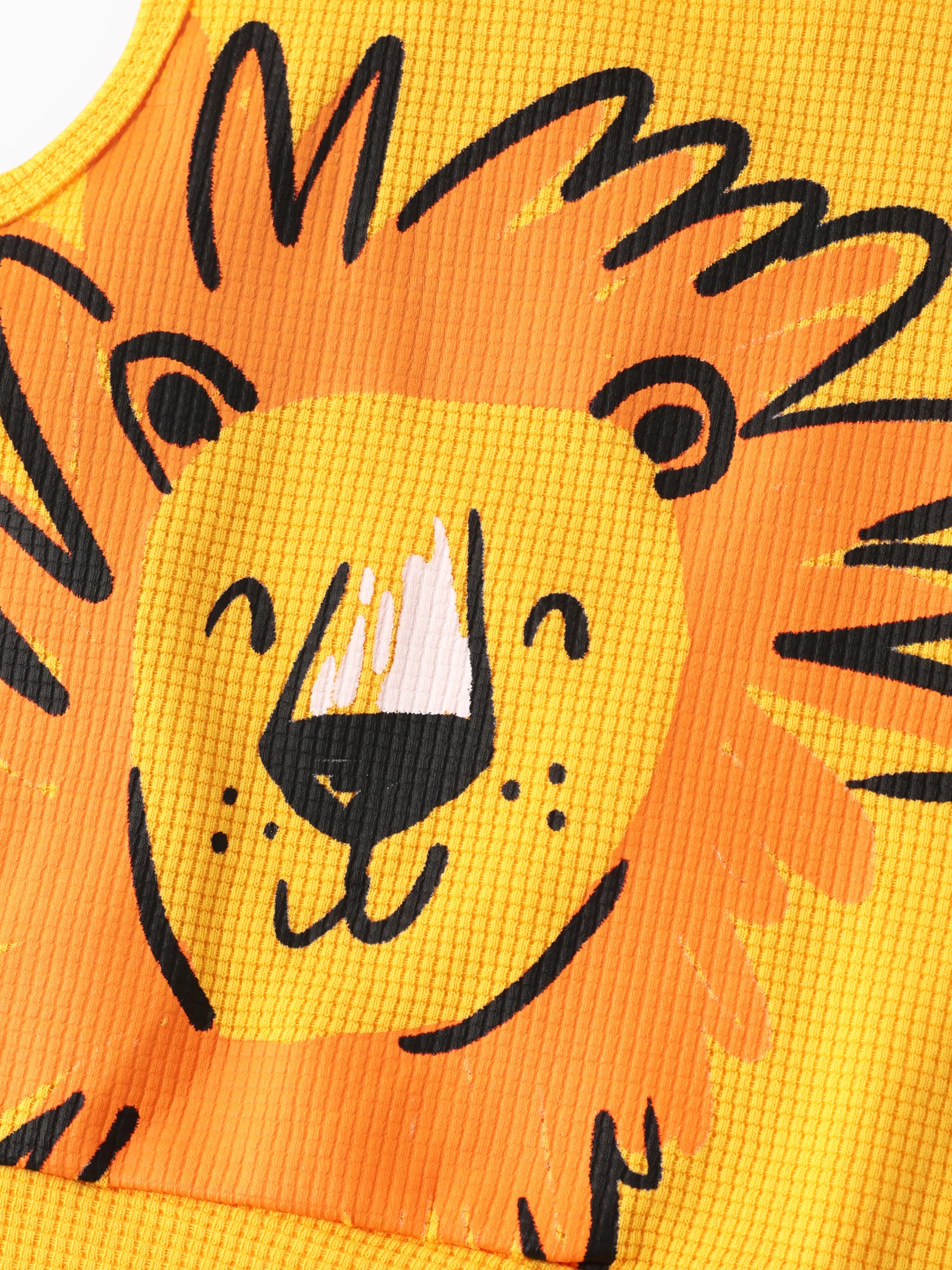 Mignon et confortable, ce mini-ensemble est parfait pour les tout-petits qui adorent les lions et les dinosaures. Fabriqué en tissu CVD doux et agréable au toucher, cet ensemble 2 pièces comprend un haut à col rond et un short. Idéal pour les sorties estivales.