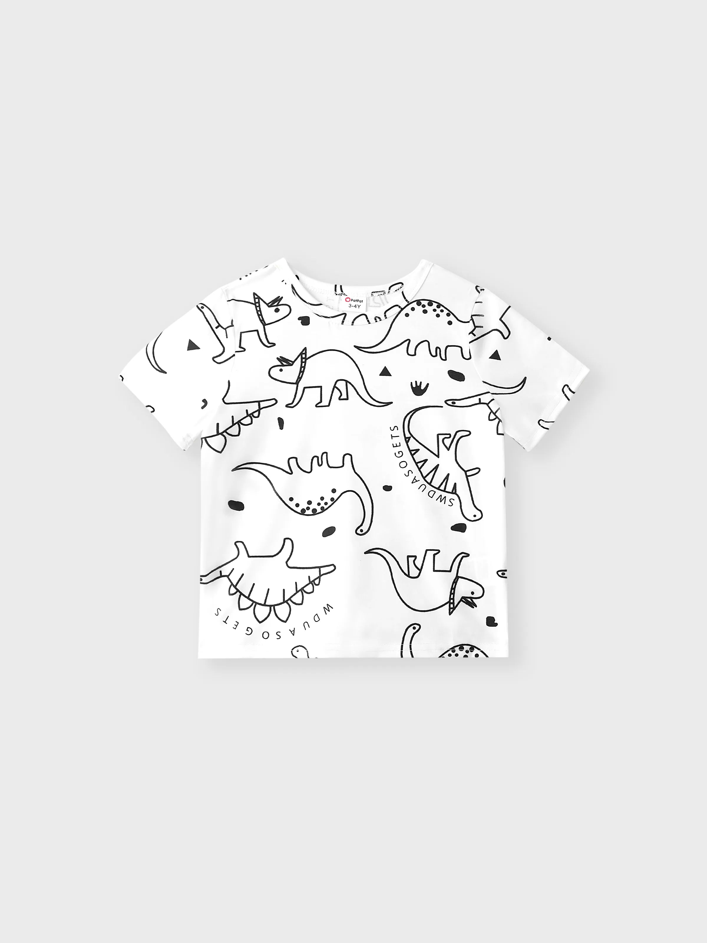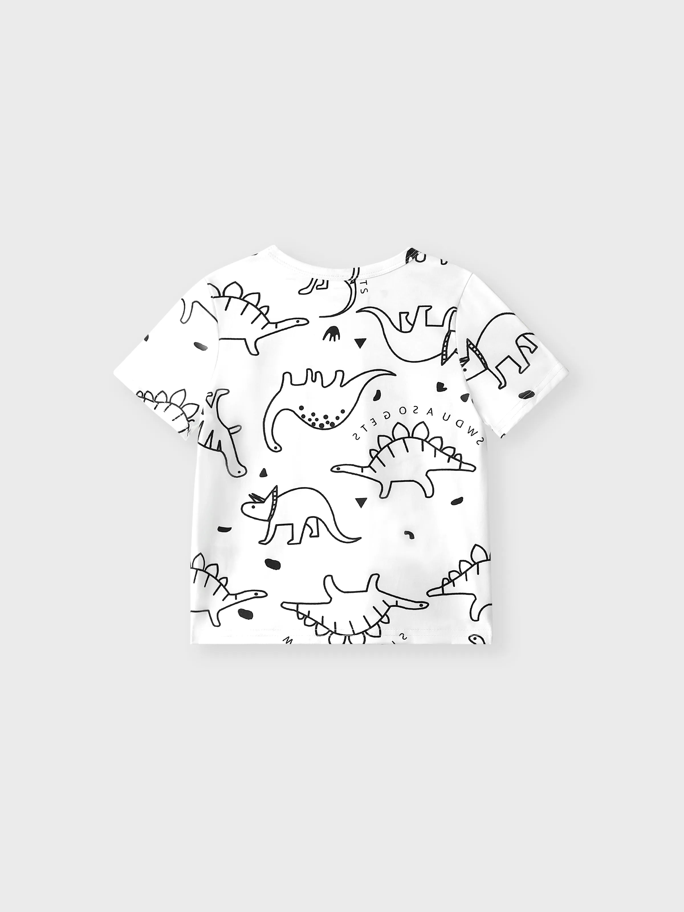 T-shirt à manches courtes imprimé dinosaure pour tout-petit garçon, blanc