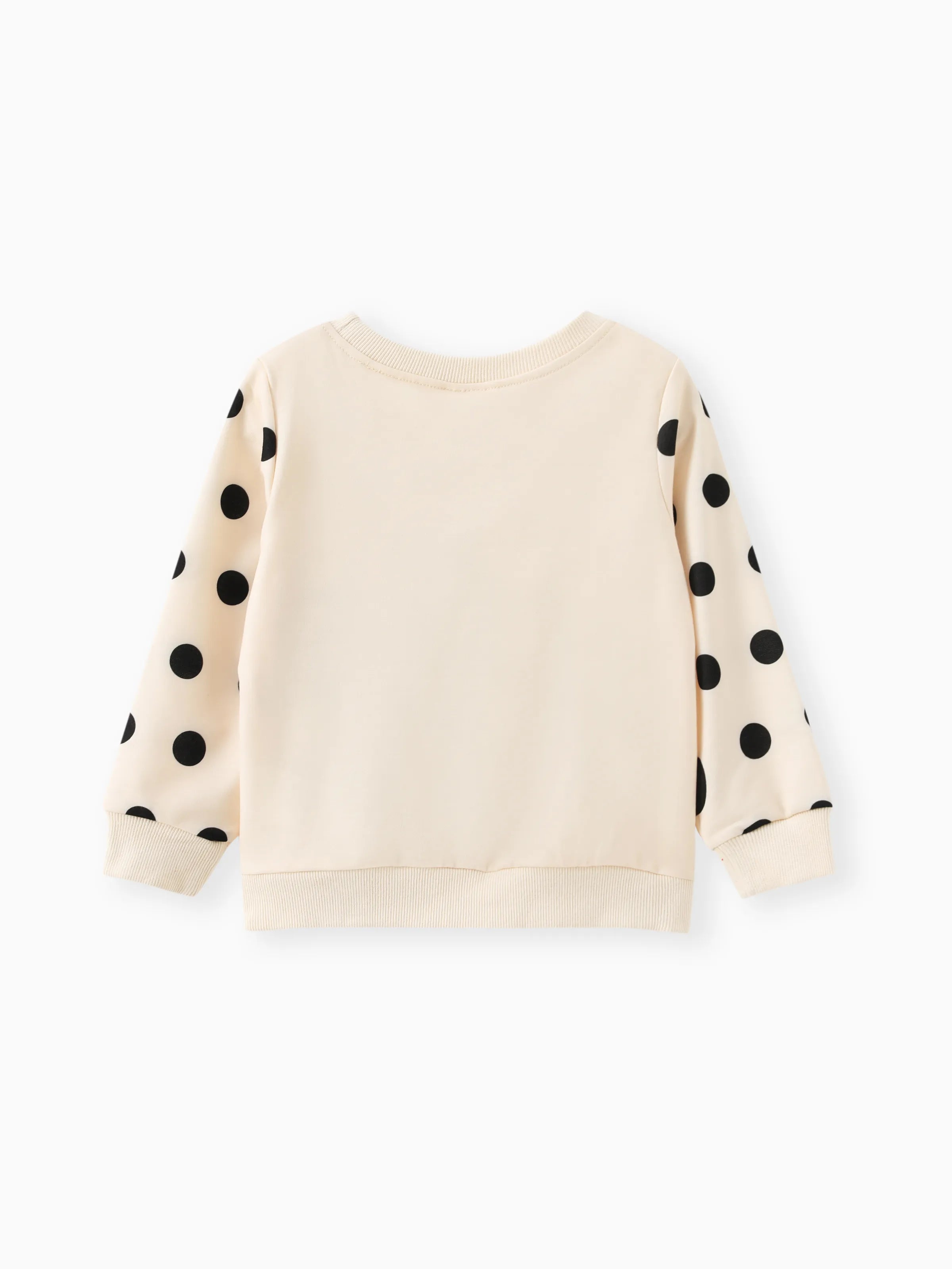 Sweat-shirt à pois imprimé lapin mignon pour petite fille, abricot