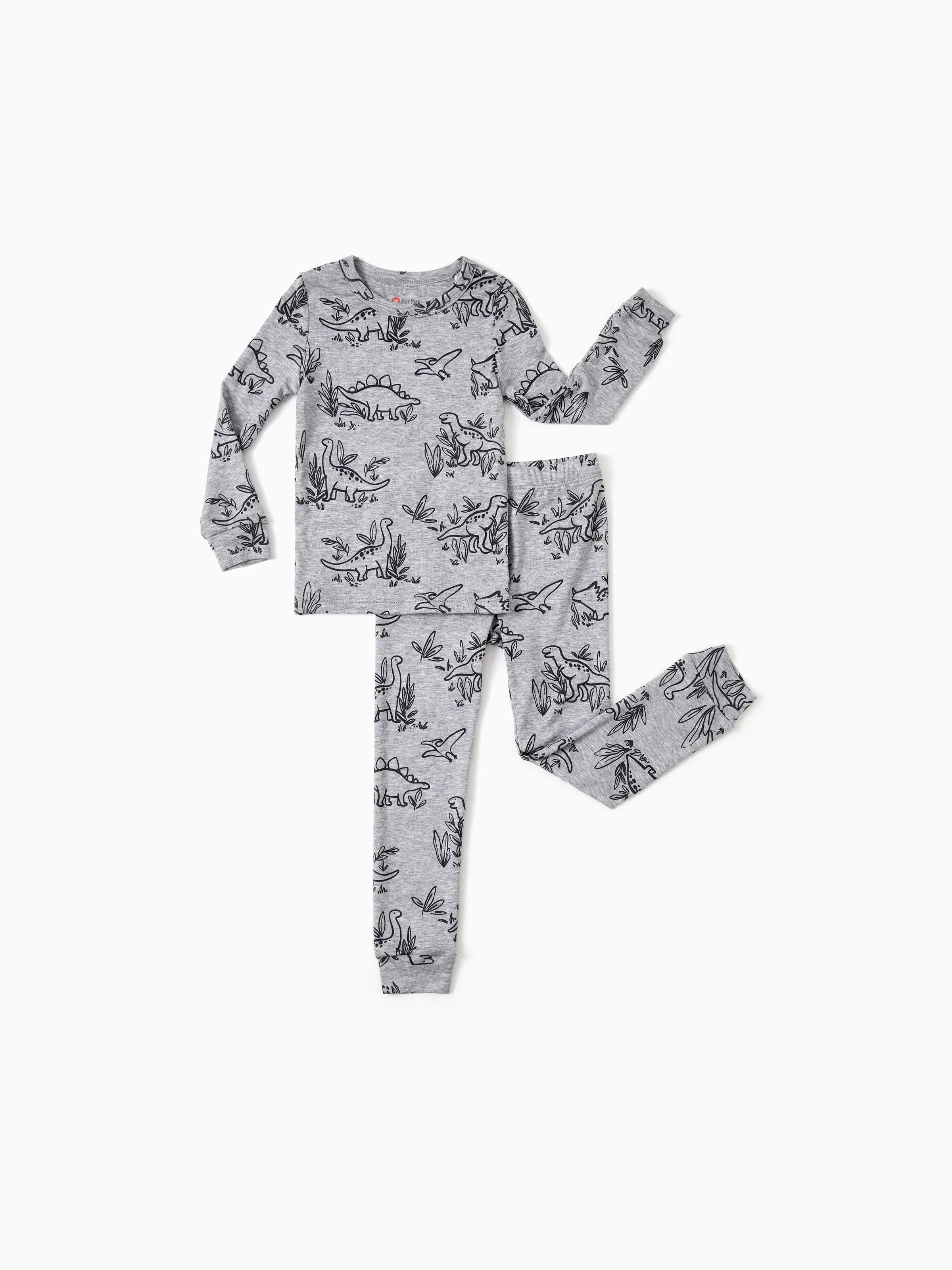 Pyjama 2 pièces pour tout-petits/enfants avec imprimé animal (ajustement serré) gris