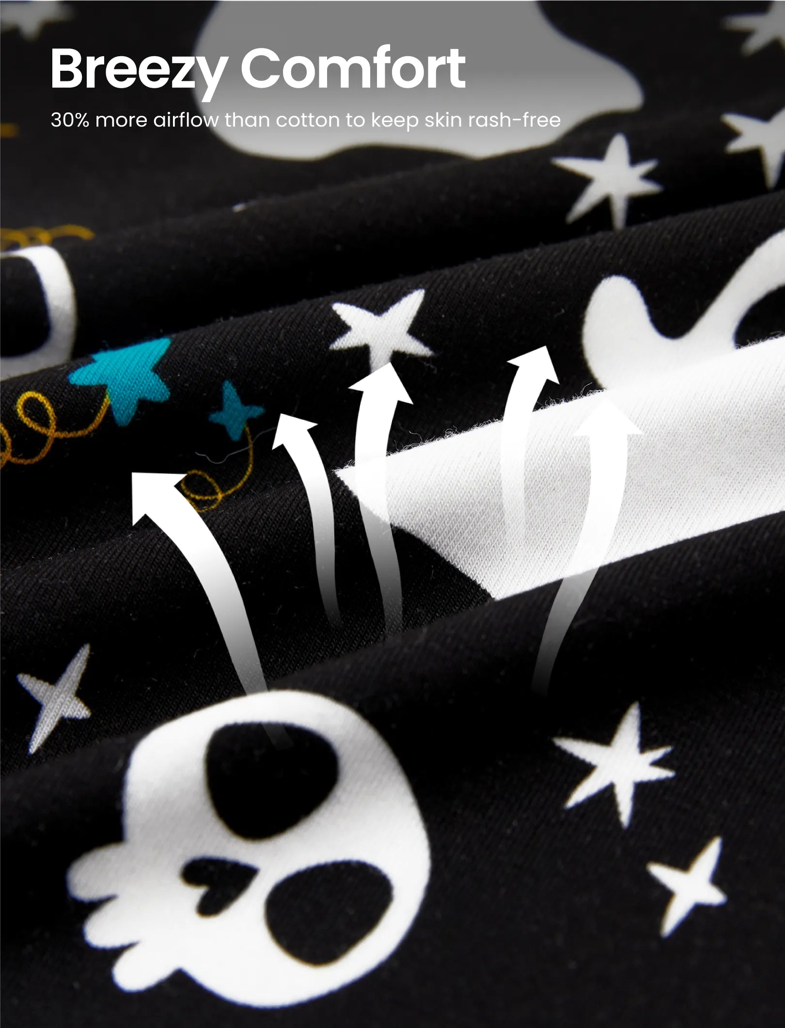 Confectionné en fibre de bambou ultra-douce et respirante, cet ensemble pyjama offre fraîcheur, confort et douceur aux enfants. Simplifiez la garde-robe de nuit de votre enfant : 1 acheté, 2 offerts. Prêt pour toutes les saisons.