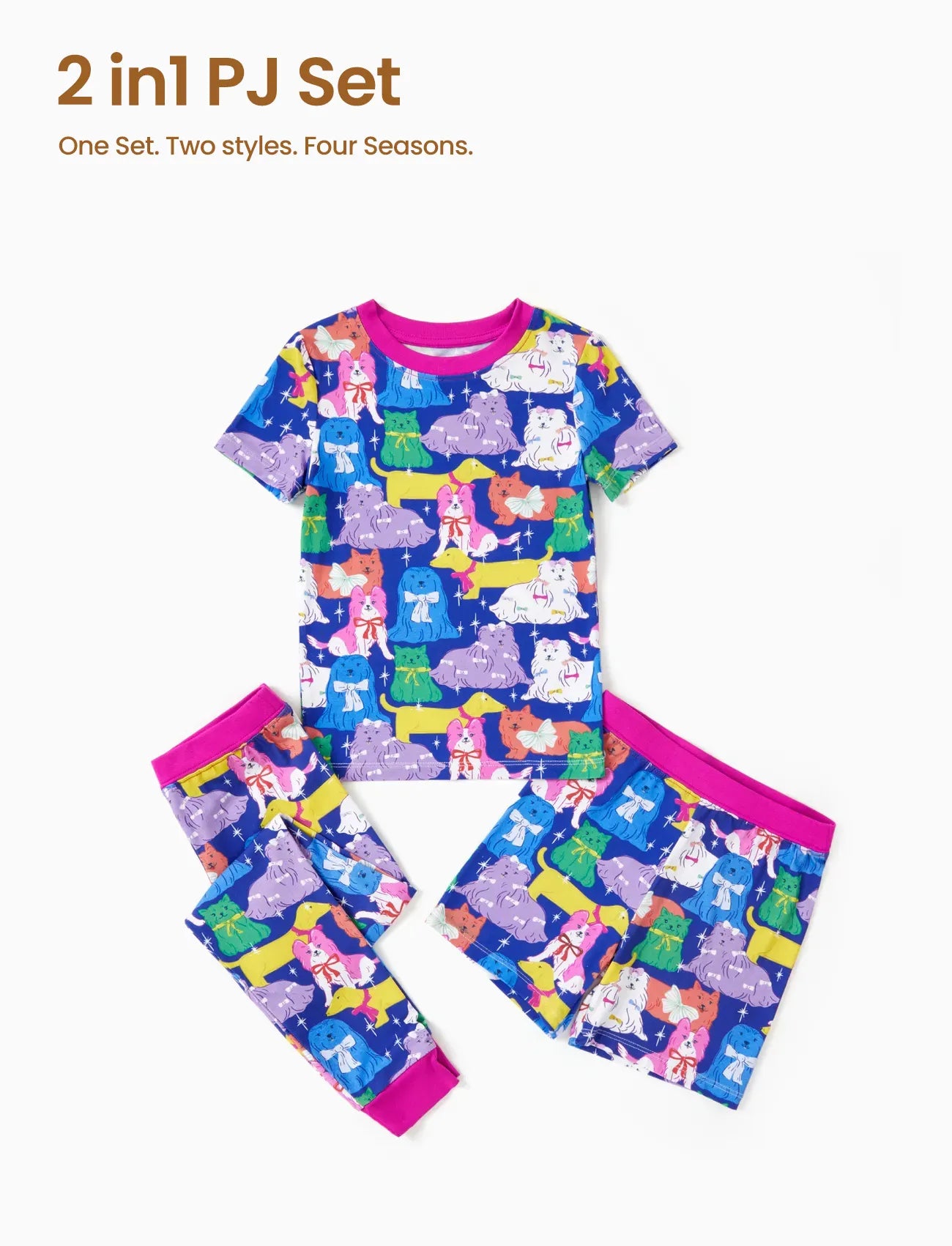 Pyjama de Noël/Halloween pour tout-petits/enfants Ensemble de pyjama 3 pièces en bambou Look 2 en 1 pour 4 saisons (ajustement parfait) Bloc de couleurs