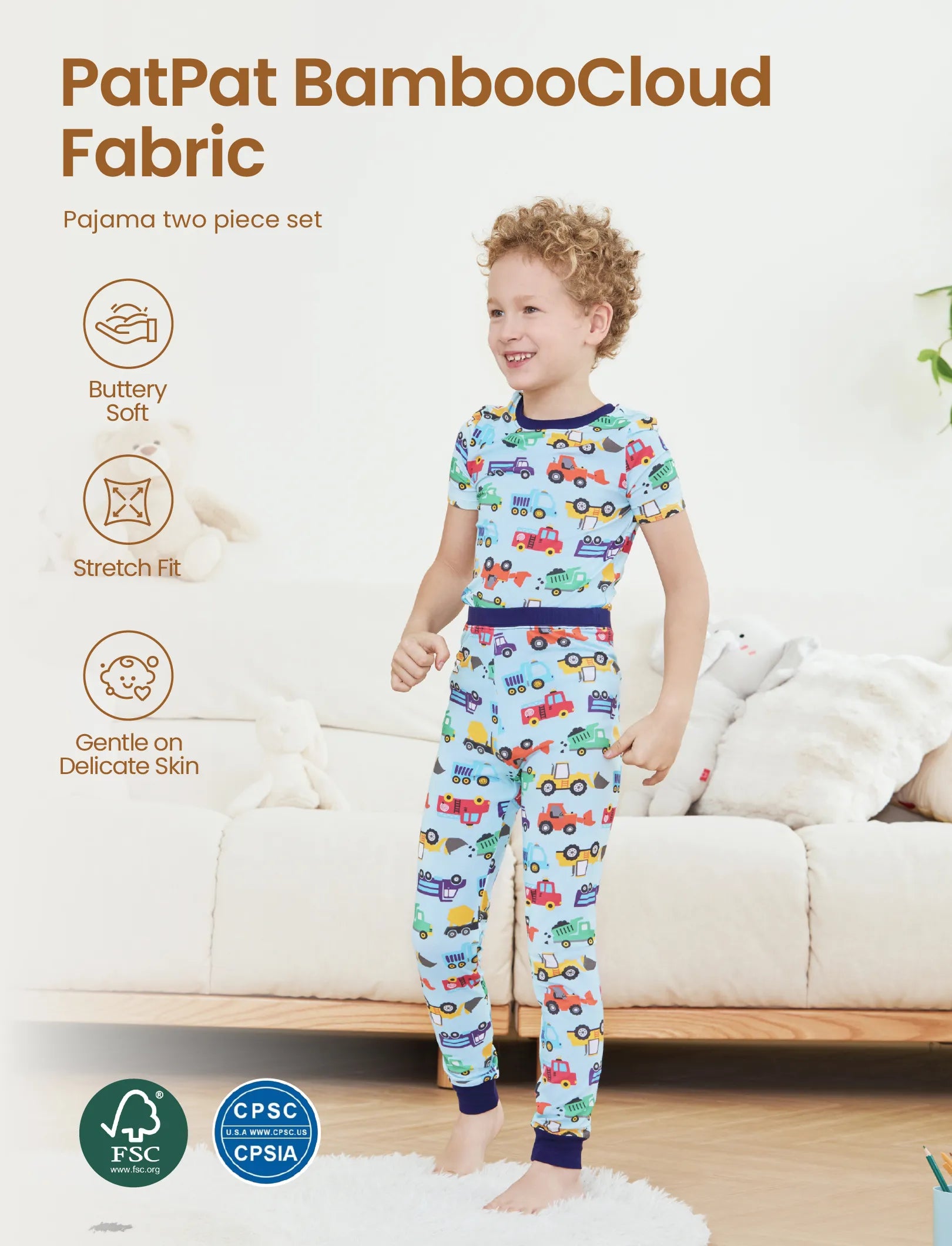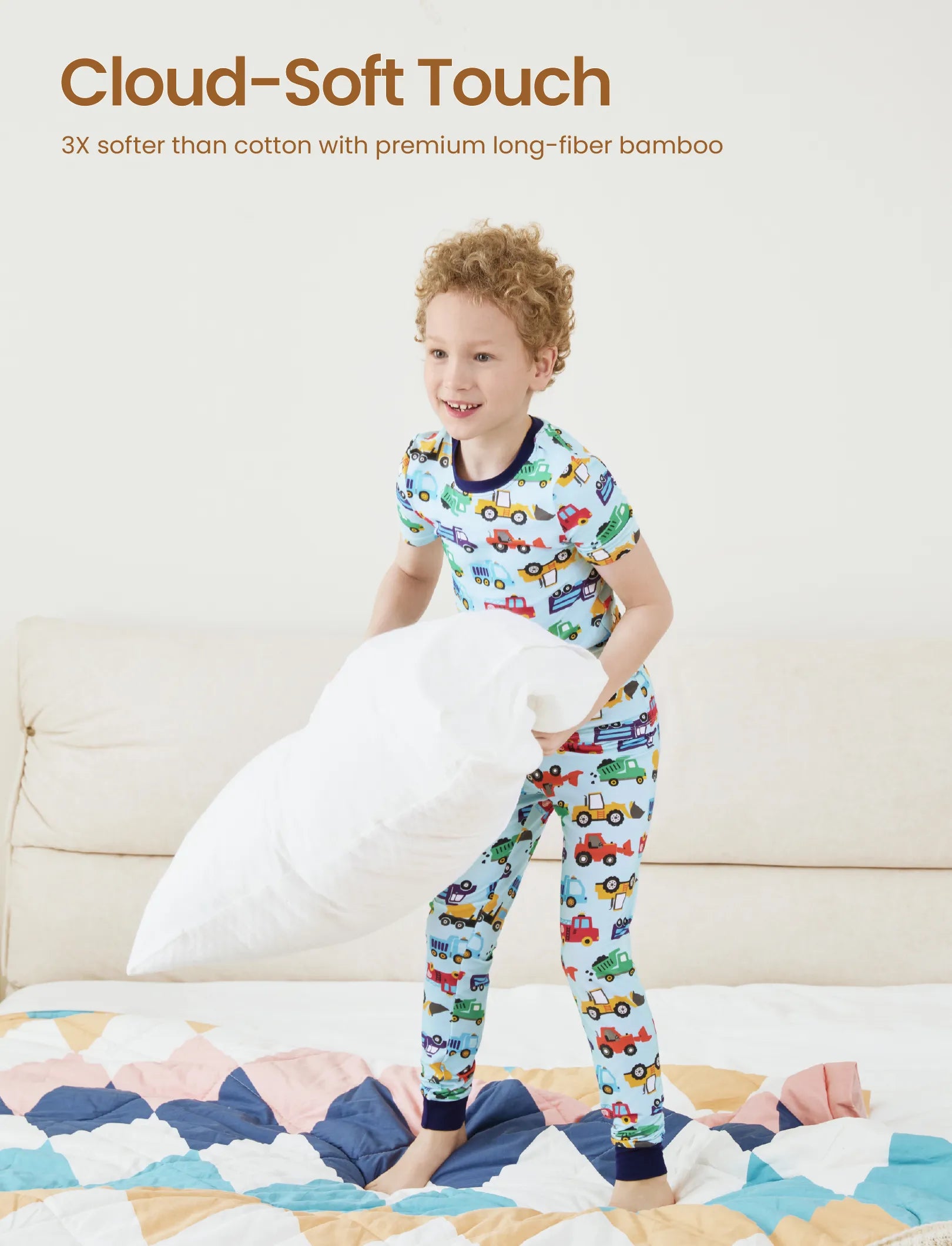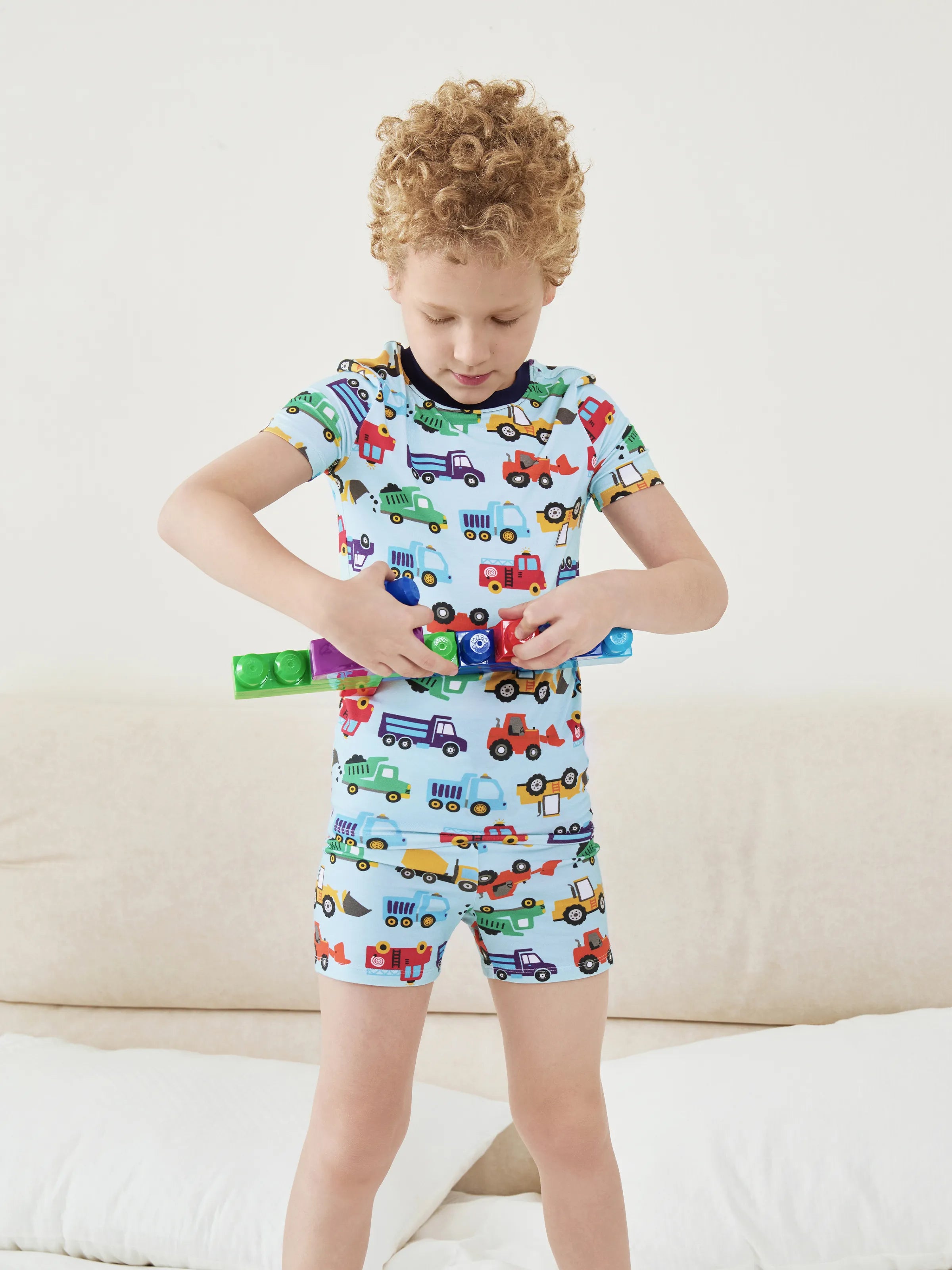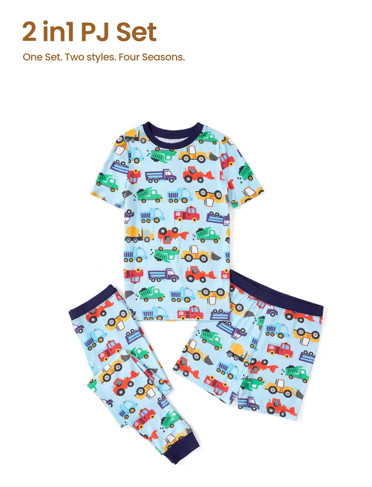 Pyjama de Noël/Halloween pour tout-petits/enfants Ensemble de pyjama 3 pièces en bambou Look 2 en 1 pour 4 saisons (coupe ajustée) Bleu clair