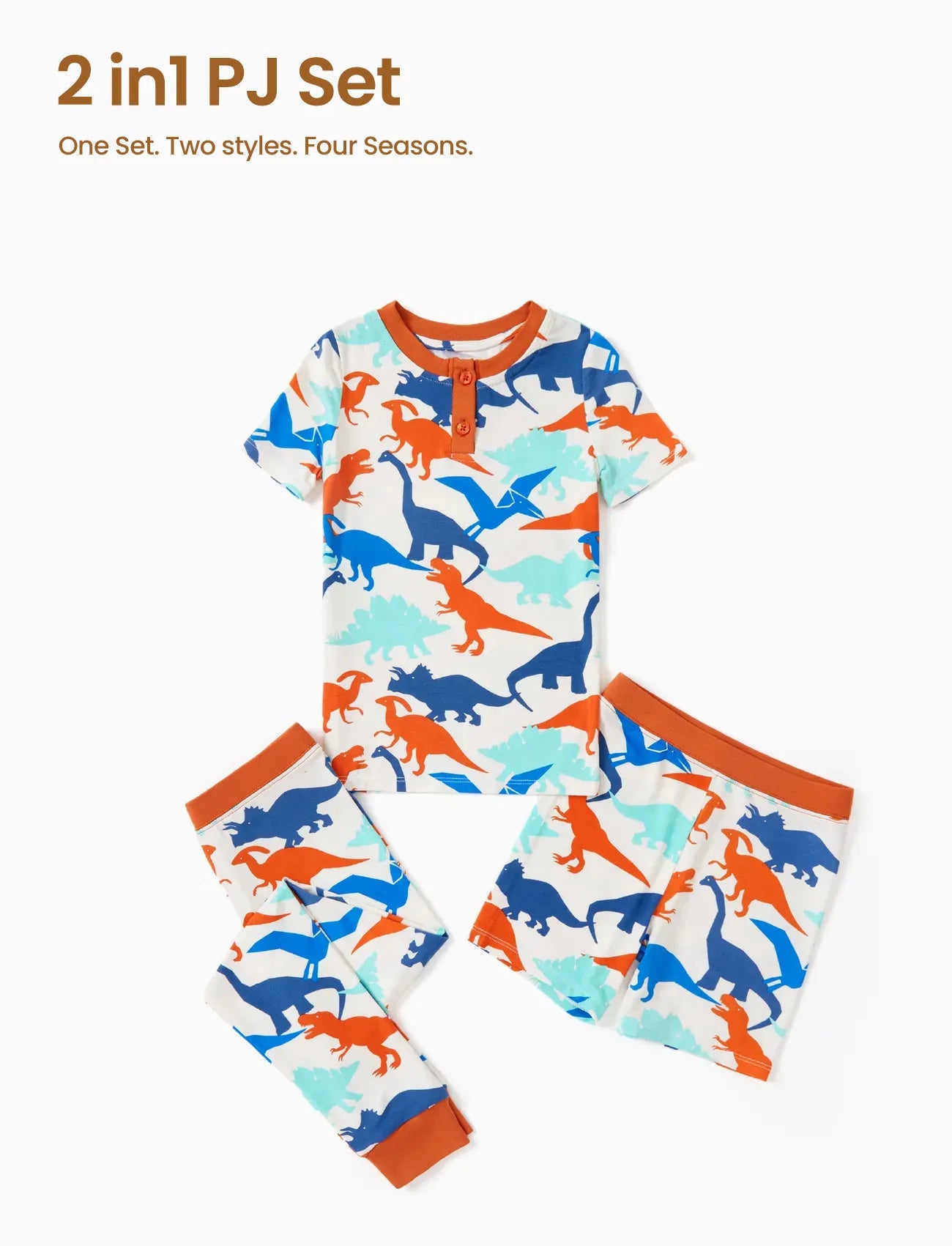 Cet ensemble pyjama 3 pièces en bambou pour enfant comprend un haut confortable à manches courtes, un pantalon long douillet et un short léger, vous offrant deux looks à assortir pour toutes les saisons. Qu'il fasse chaud ou froid, votre enfant sera parfaitement habillé. Confectionné en fibre de bambou ultra-douce et respirante, cet ensemble pyjama offre fraîcheur, confort et douceur aux enfants. Simplifiez la garde-robe de nuit de votre enfant : 1 acheté, 2 offerts. Prêt pour toutes les saisons.