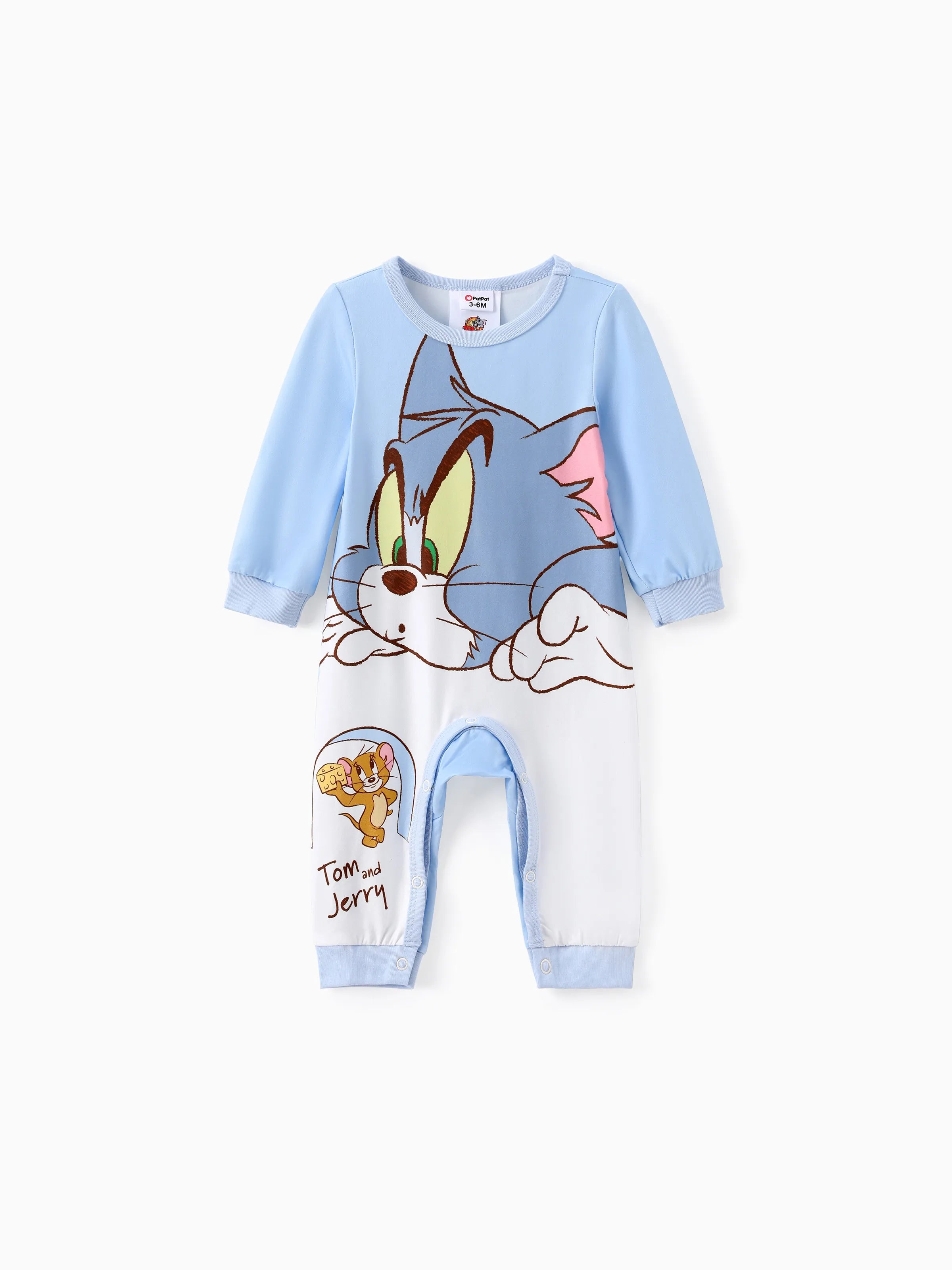 Combinaison imprimée mignonne Tom et Jerry pour bébé garçon/fille, bleue