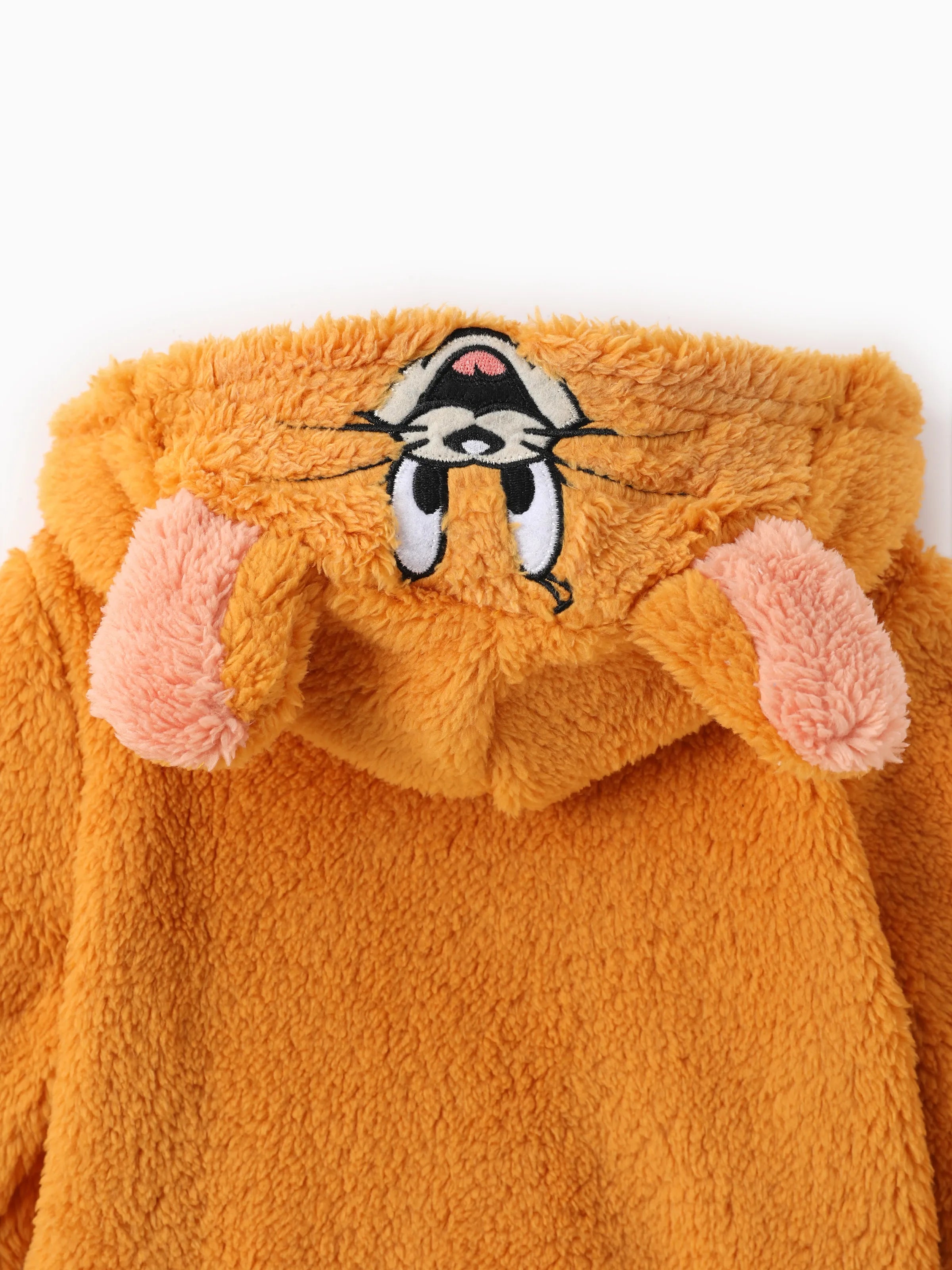 Manteau à capuche en peluche brodé Tom et Jerry pour bébé/enfant avec oreilles 3D Jaune/Brun