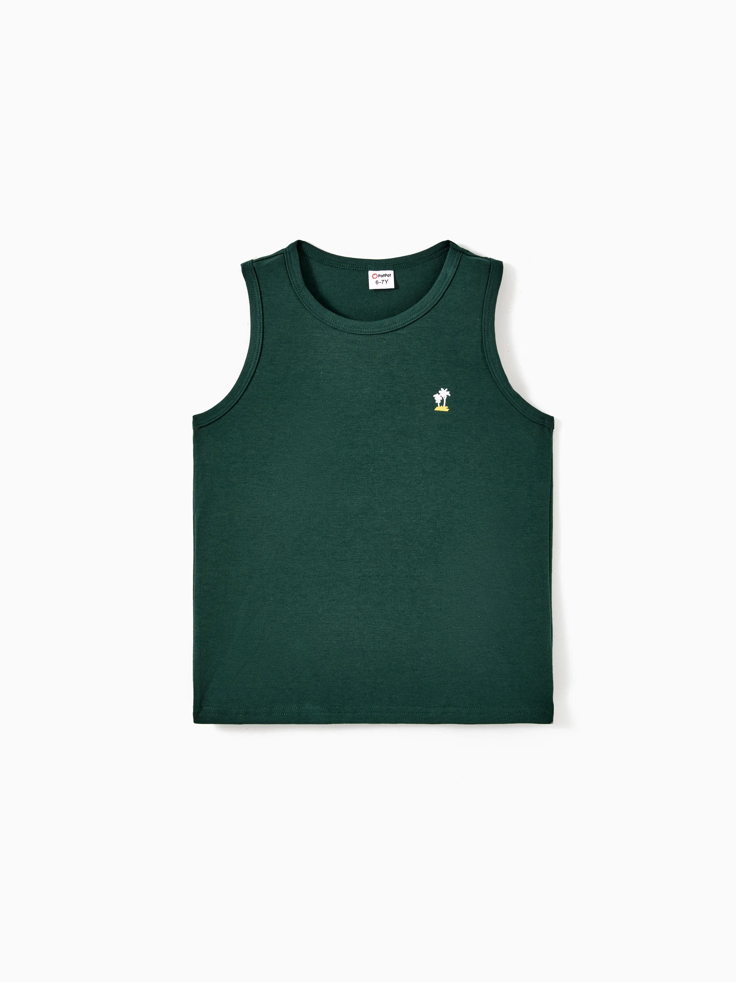 Démarquez-vous en été avec cet ensemble de vacances deux pièces à imprimé tropical, composé d'un gilet vert et d'un short assorti.