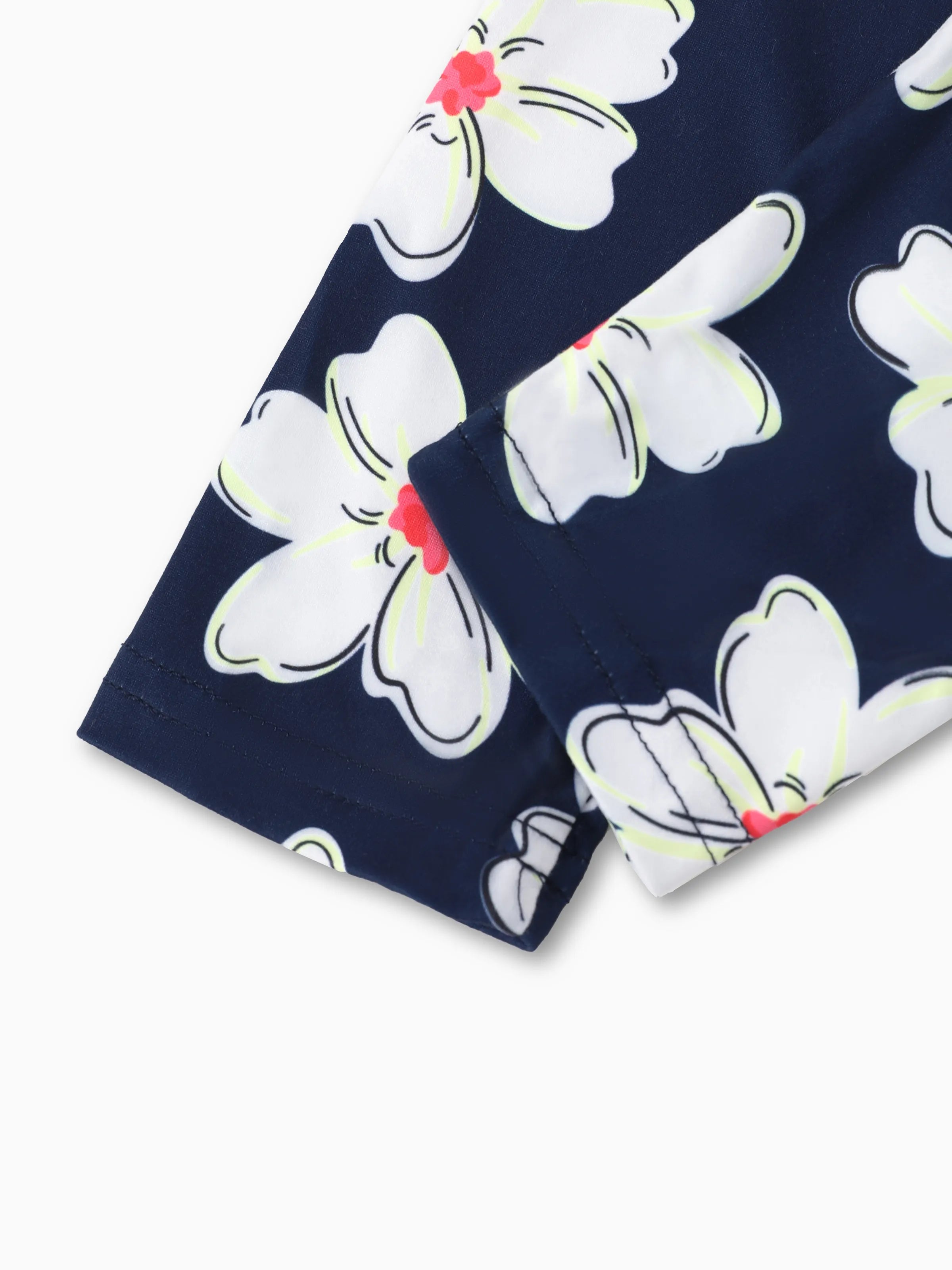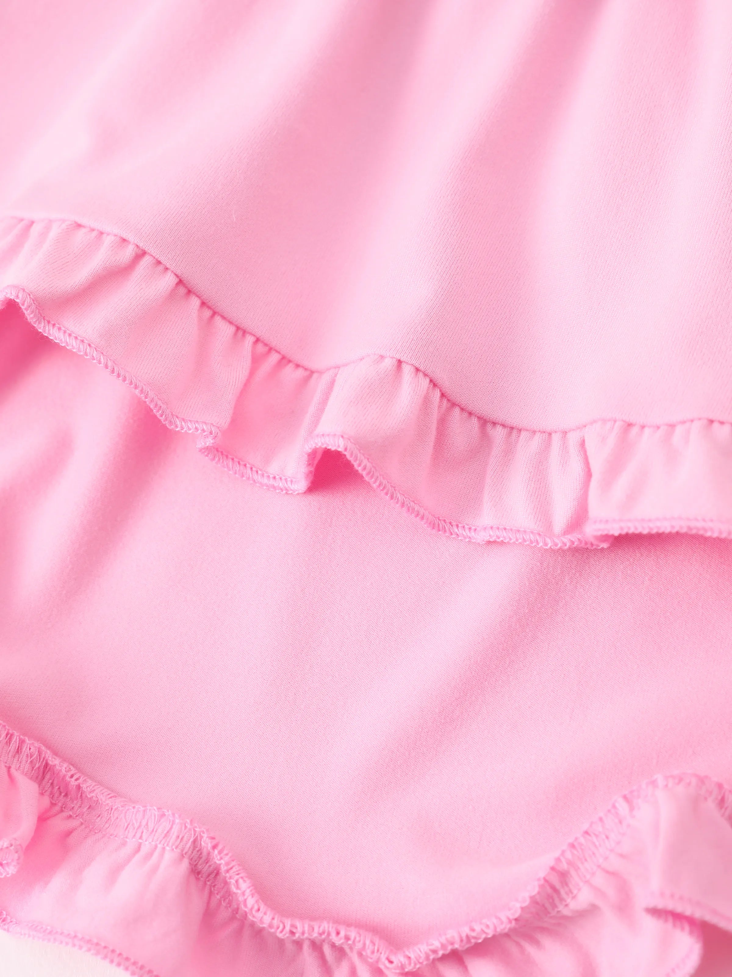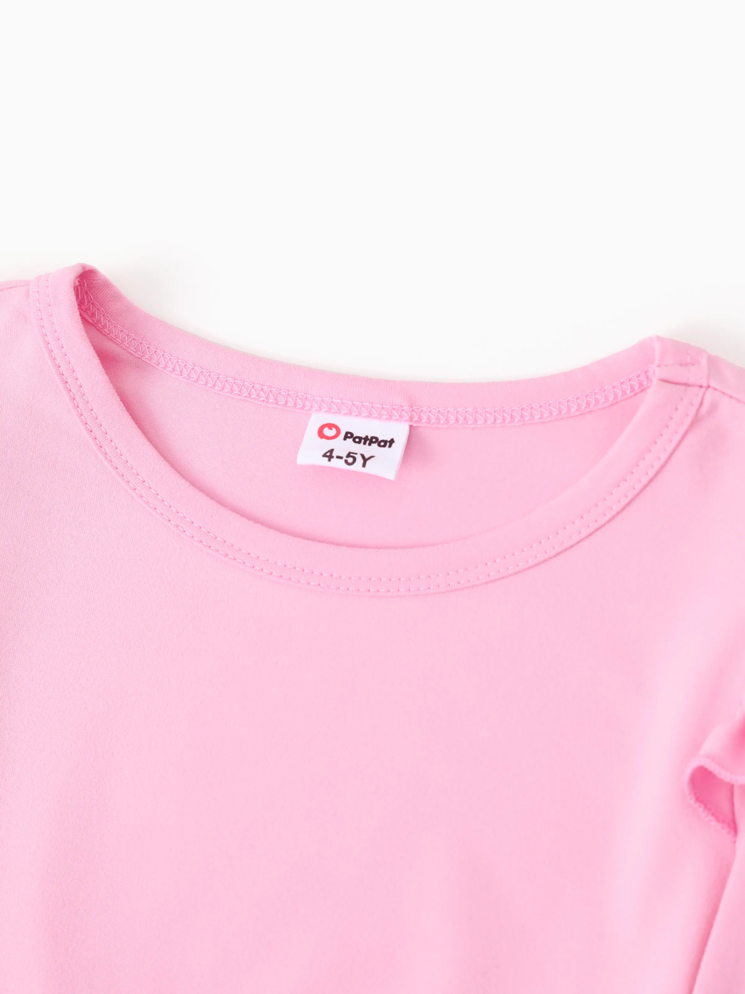 2-piece Kid Girl Bowknot Ruffled Long-sleeves Tee and Flower Allover Print Pants Pink