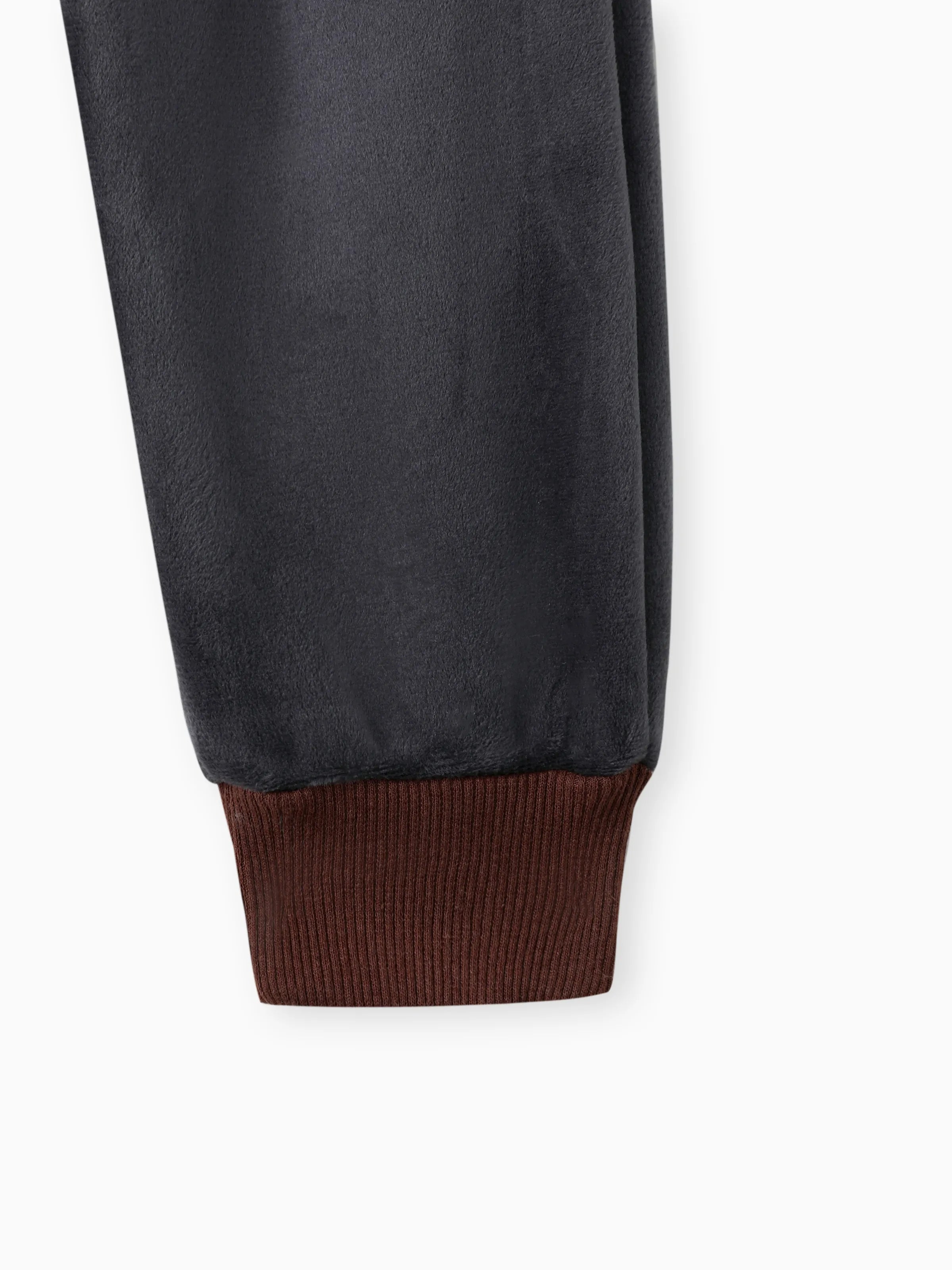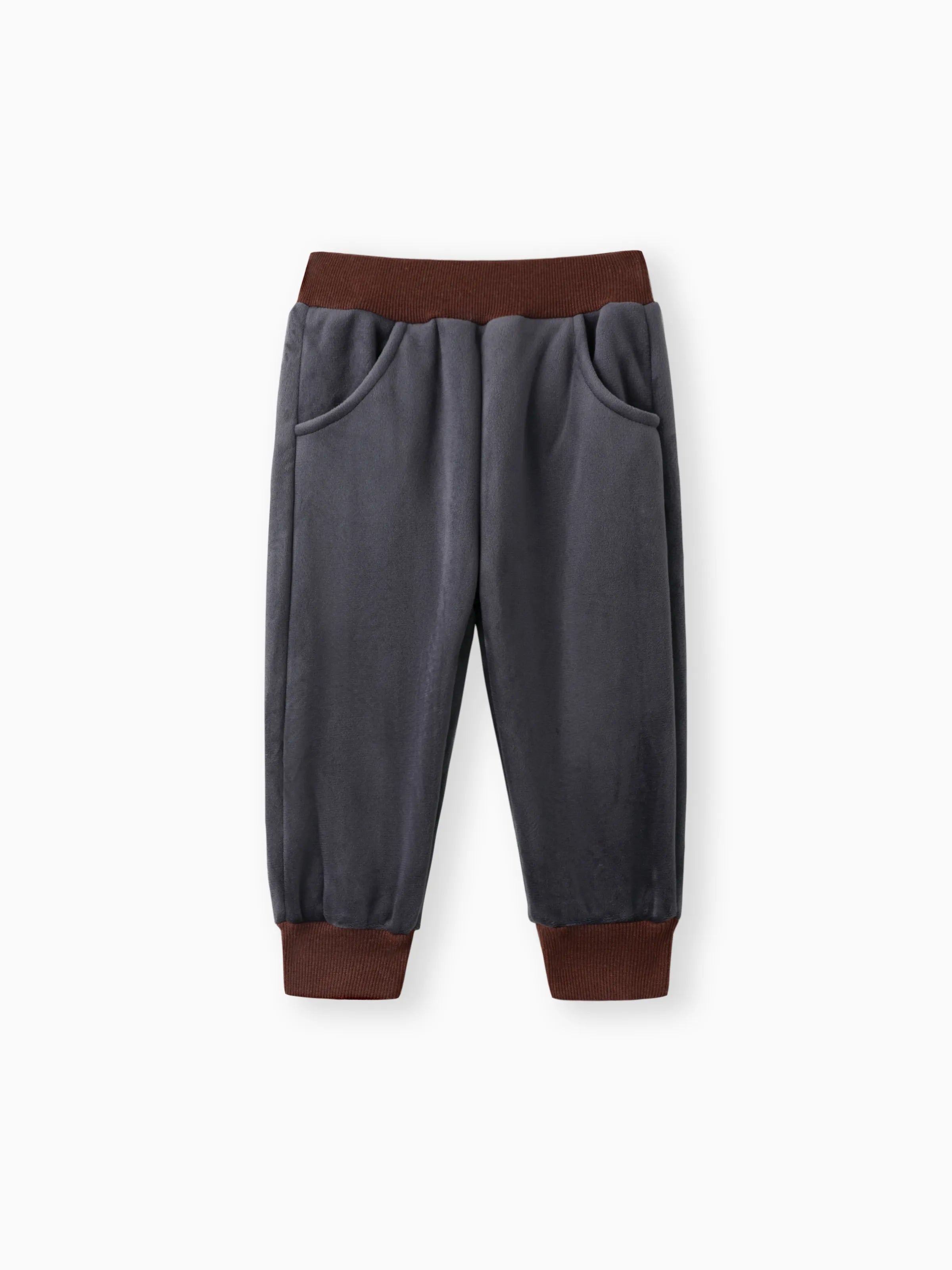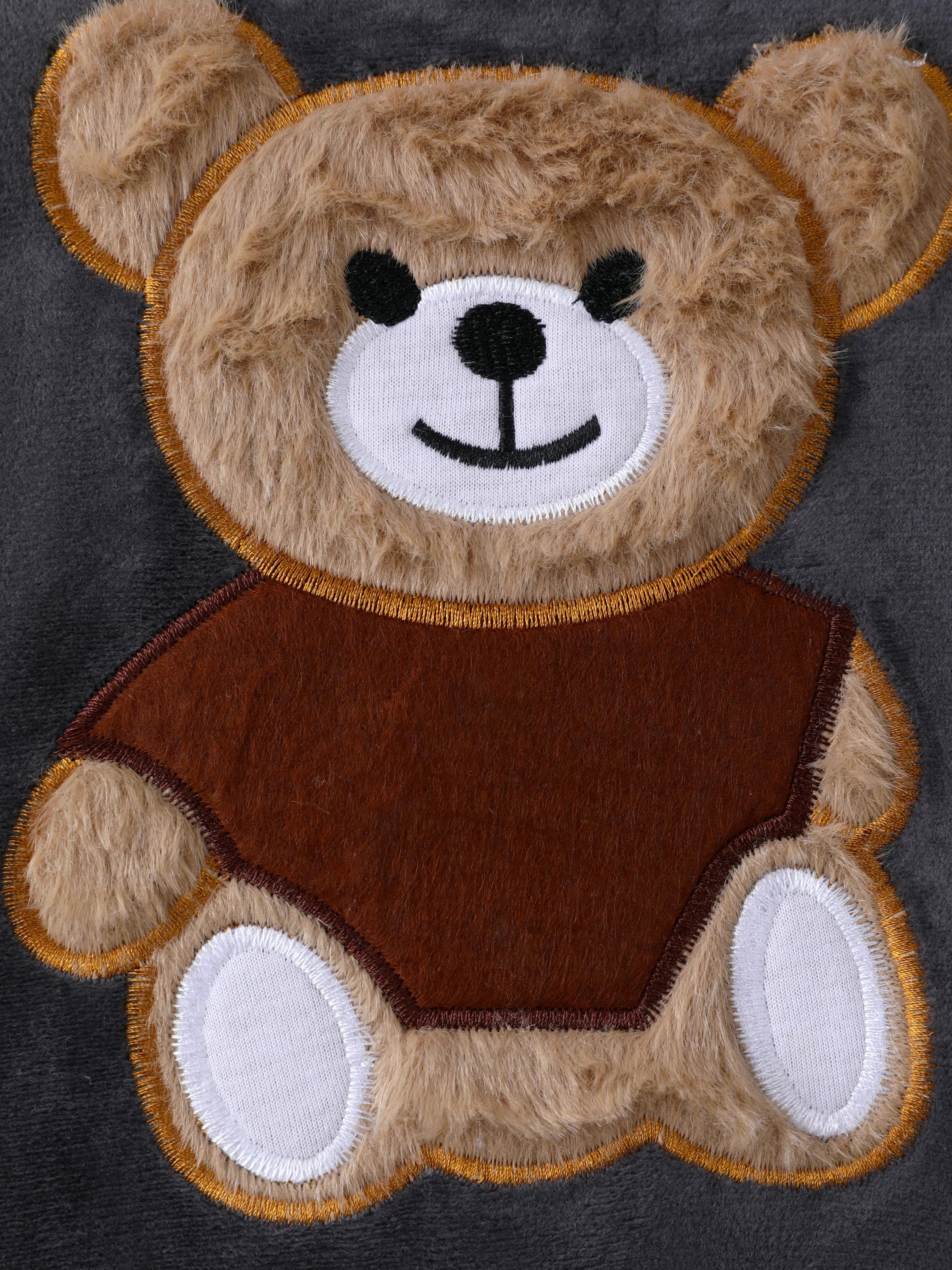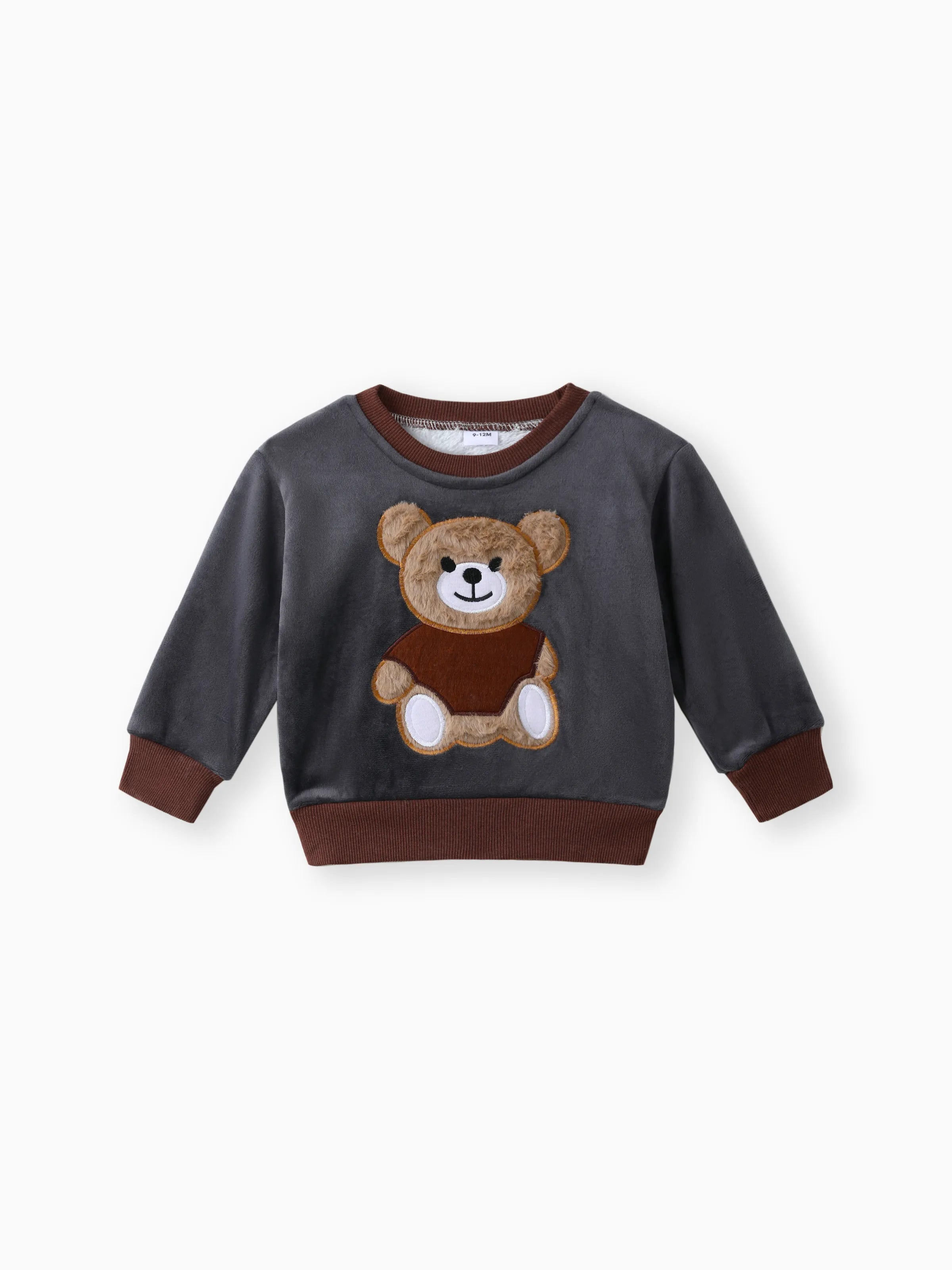 2pcs Baby Boy 95% Cotton Long-sleeve Cartoon Bear Pattern Thickened Fleece Lined Pullover and Trousers Set Grey