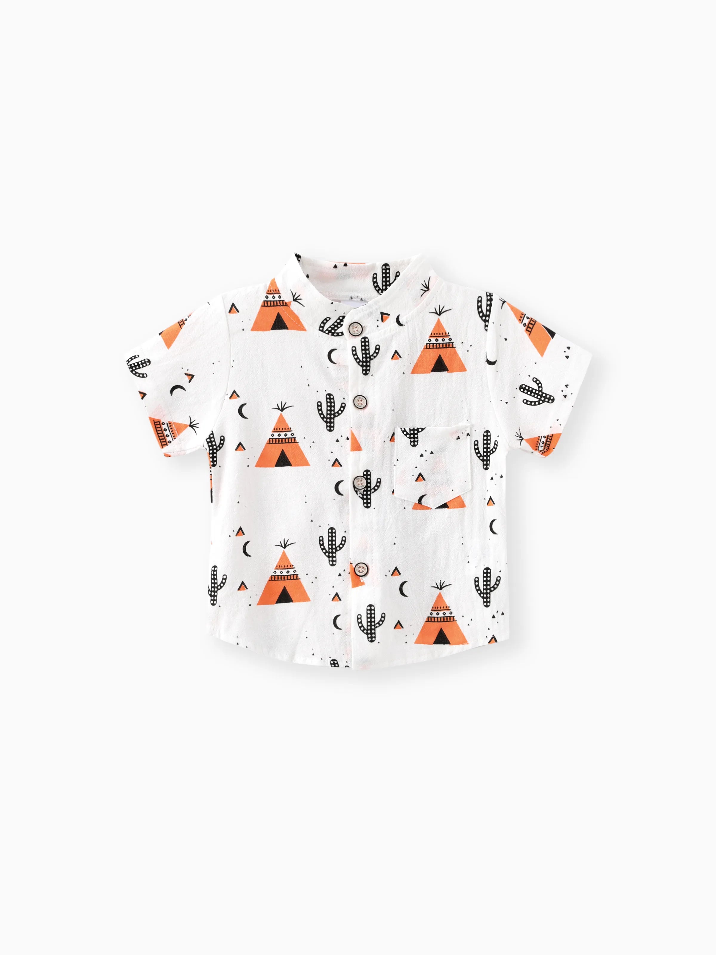 2pcs Baby Boy 95% Cotton Short-sleeve All Over Cactus Print Button Up Shirt and Solid Shorts Set Orange
