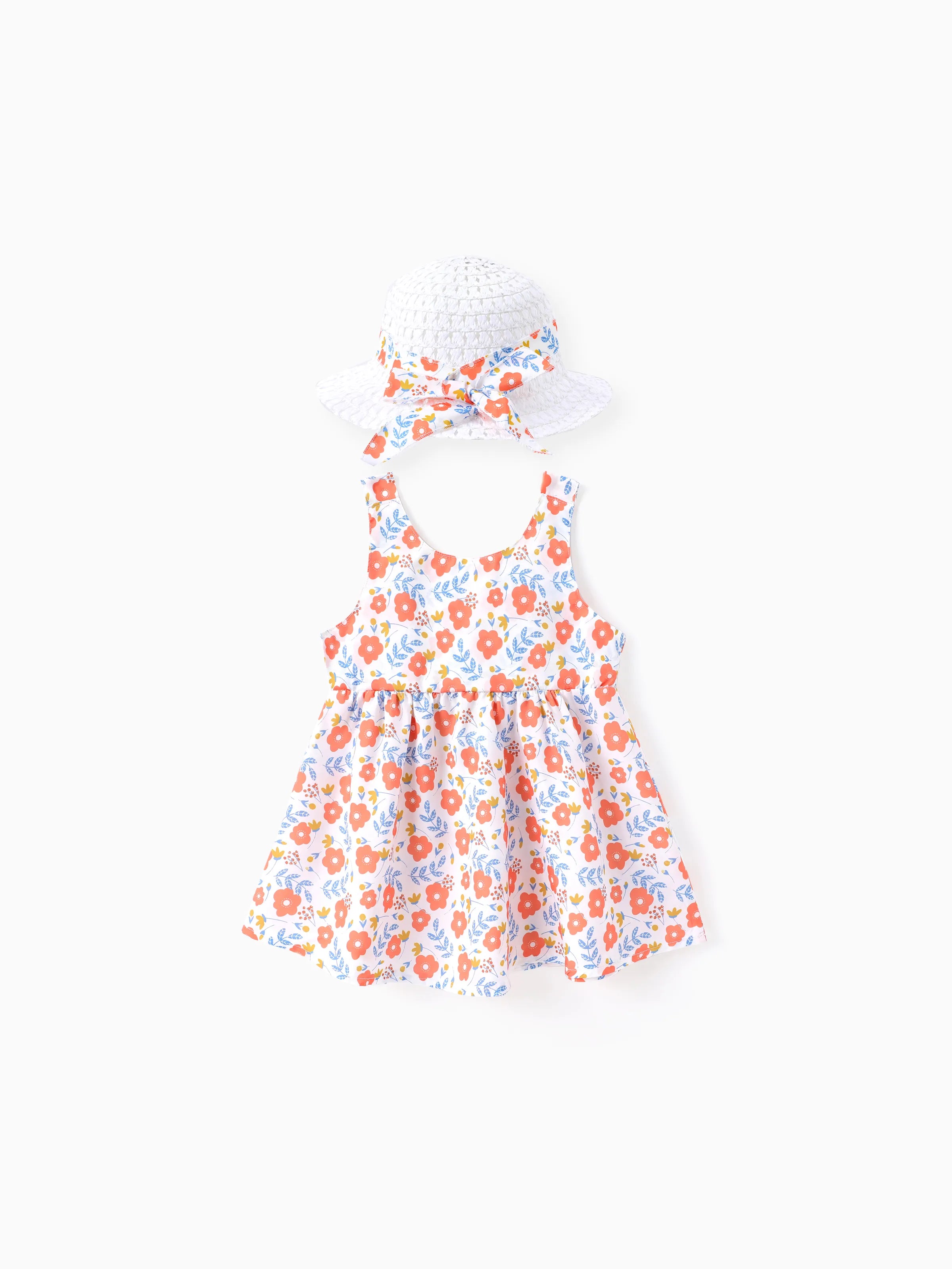 2pcs Baby Girl Little Daisy Bowknot Dress Set Orange