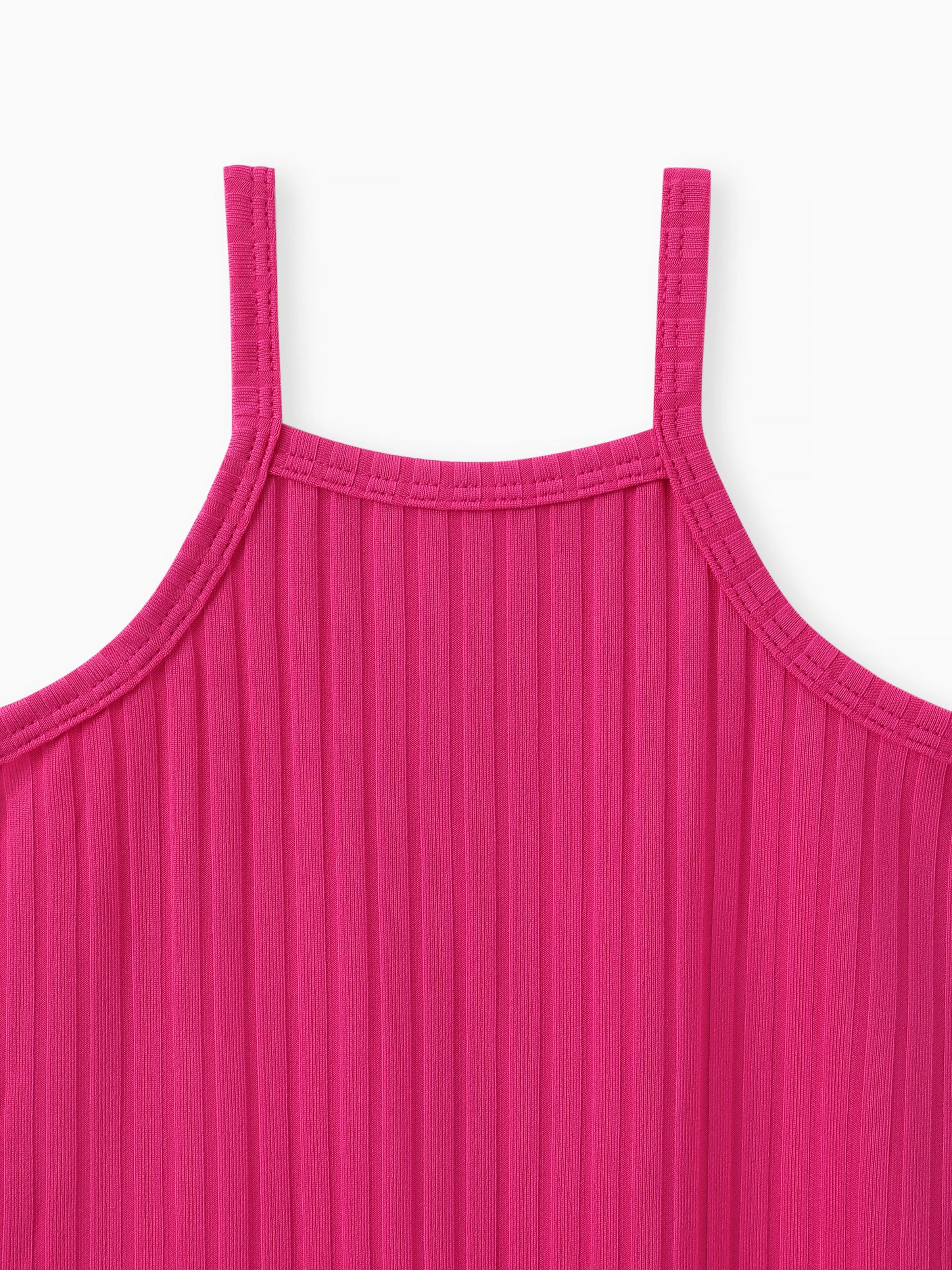 2pcs Baby Girl Solid Rib-knit Romper and Button Up Front Vest Denim Jacket Set Hot Pink