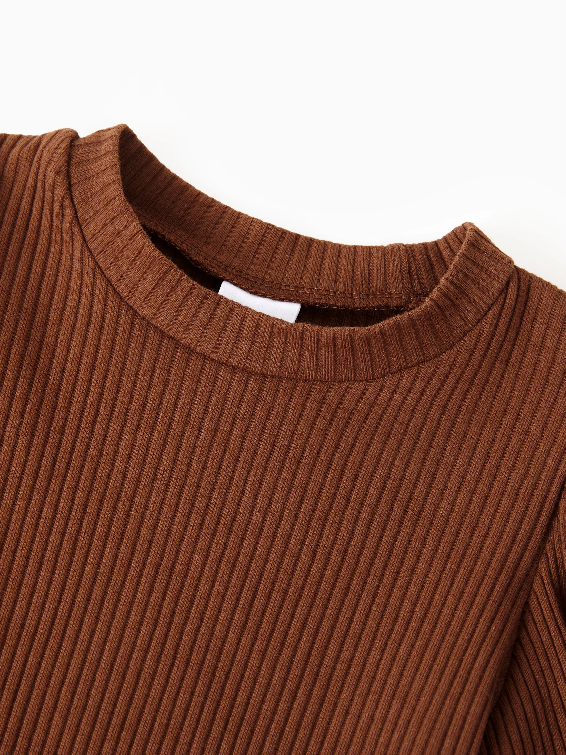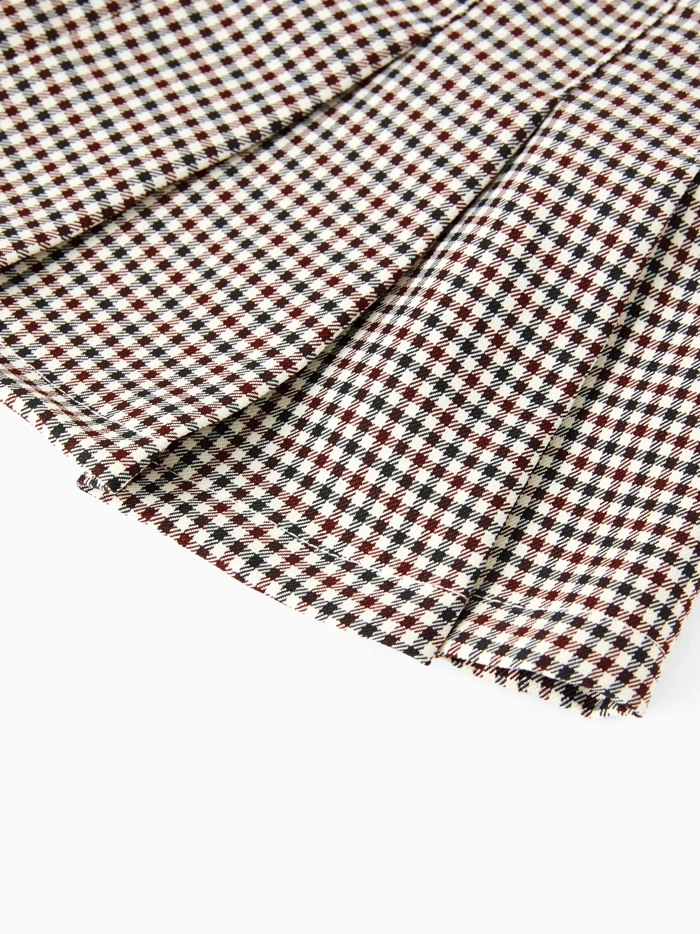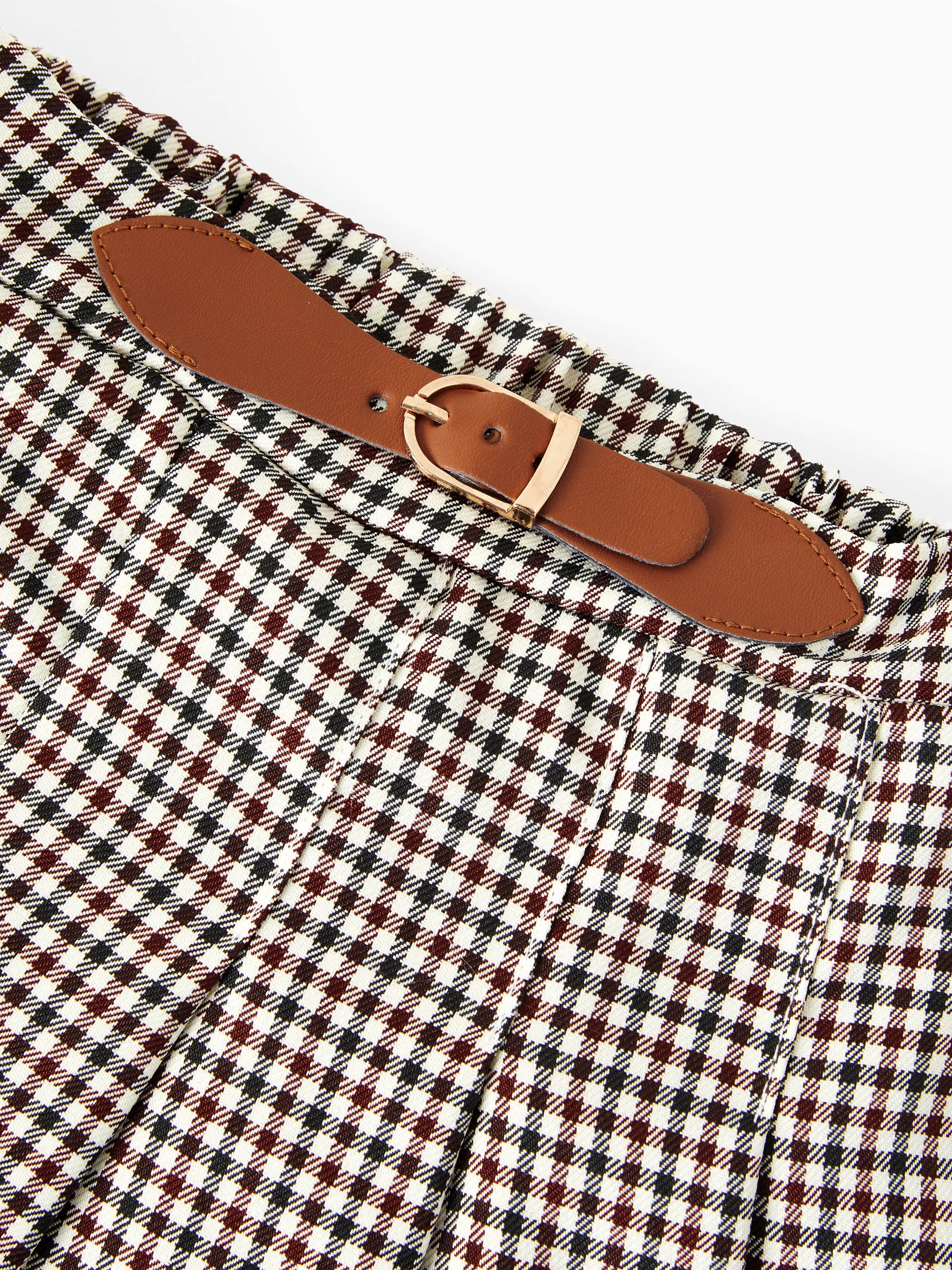 2pcs Toddler Girl Classic Puff-sleeve Tee and Houndstooth Pleated Skirt Set Brown