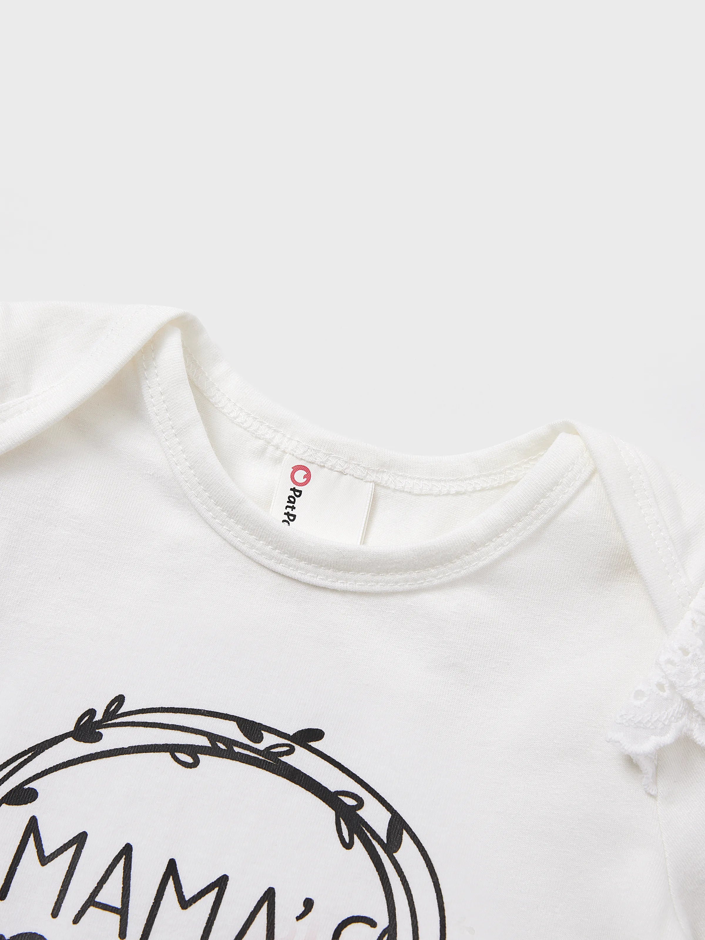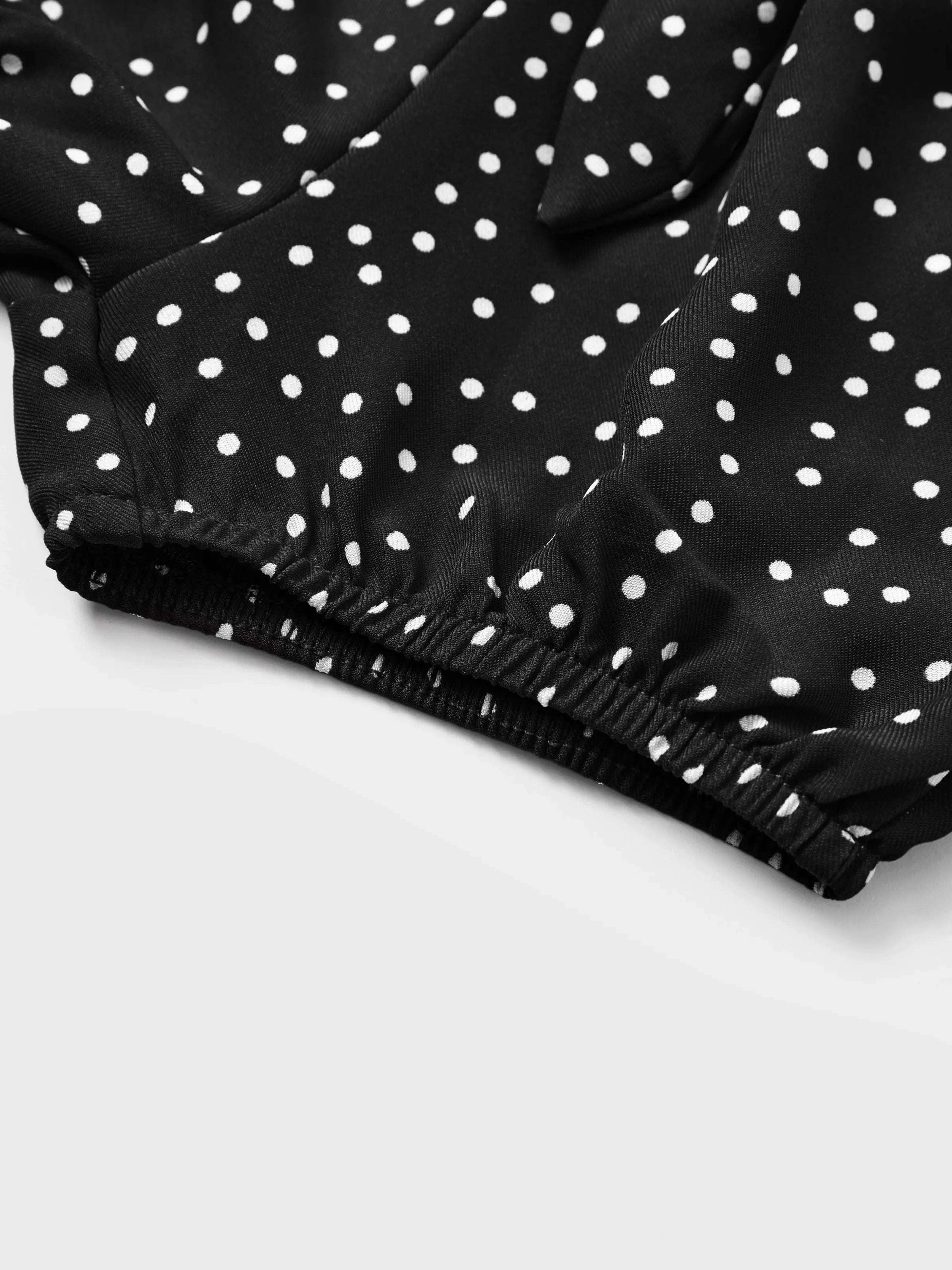 3-Piece Baby Girl Letter Print Romper and Polka dots Shorts and Headband Set Black
